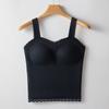 Chaleco cálido de cuello redondo para mujer, sujetador con almohadilla para el pecho integrada, ropa exterior de otoño e invierno, top deportivo sin mangas con parte inferior ajustada