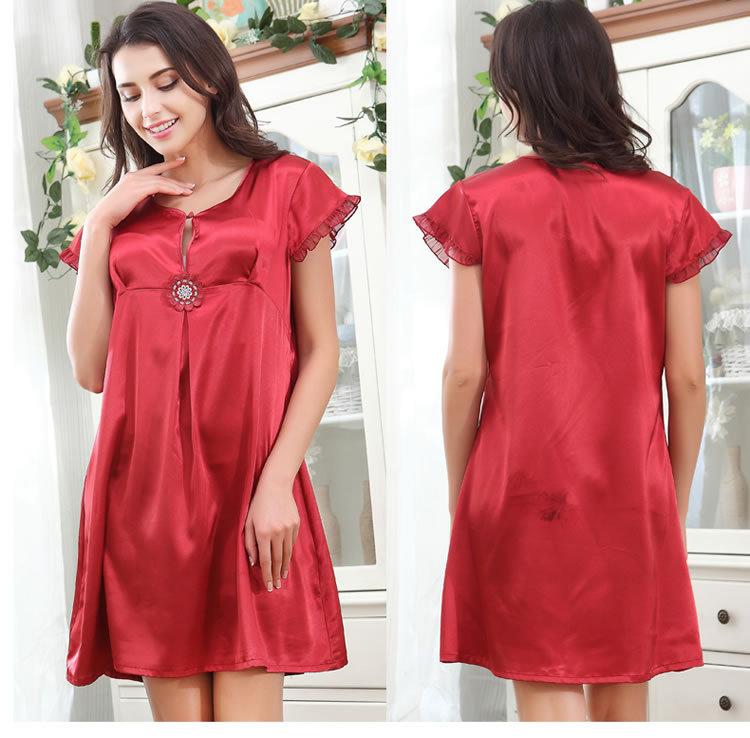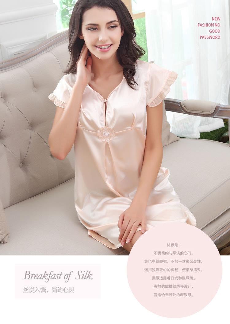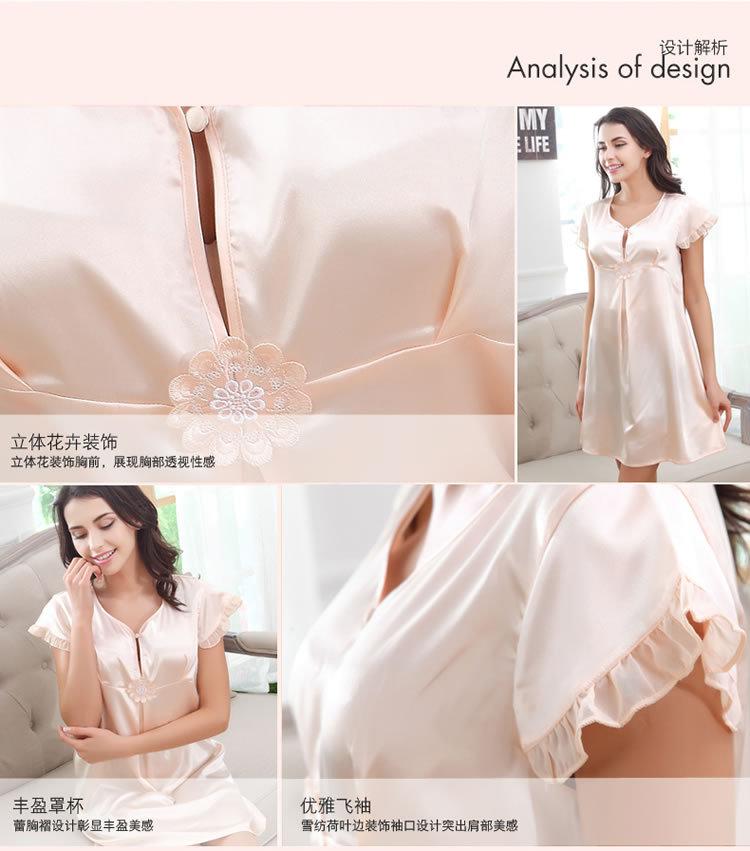 Pijamas de Primavera y Verano para Mujer Jersey Cómodo Camisón Hogar Encaje Seda Venta al por Mayor