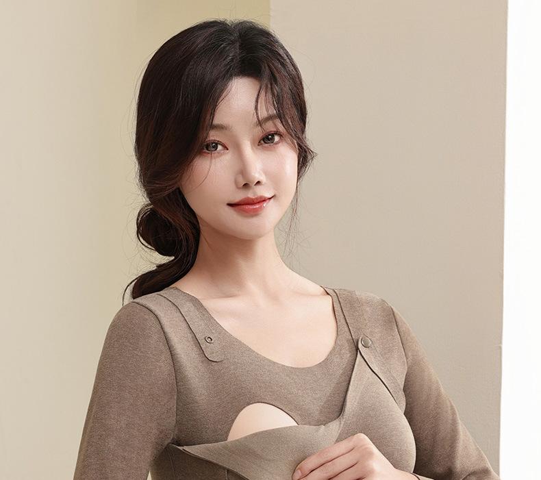 Ropa de otoño para mujeres embarazadas durante el embarazo, base de lactancia posparto, otoño e invierno, traje cálido de lactancia de grafeno de terciopelo alemán grueso con forro polar