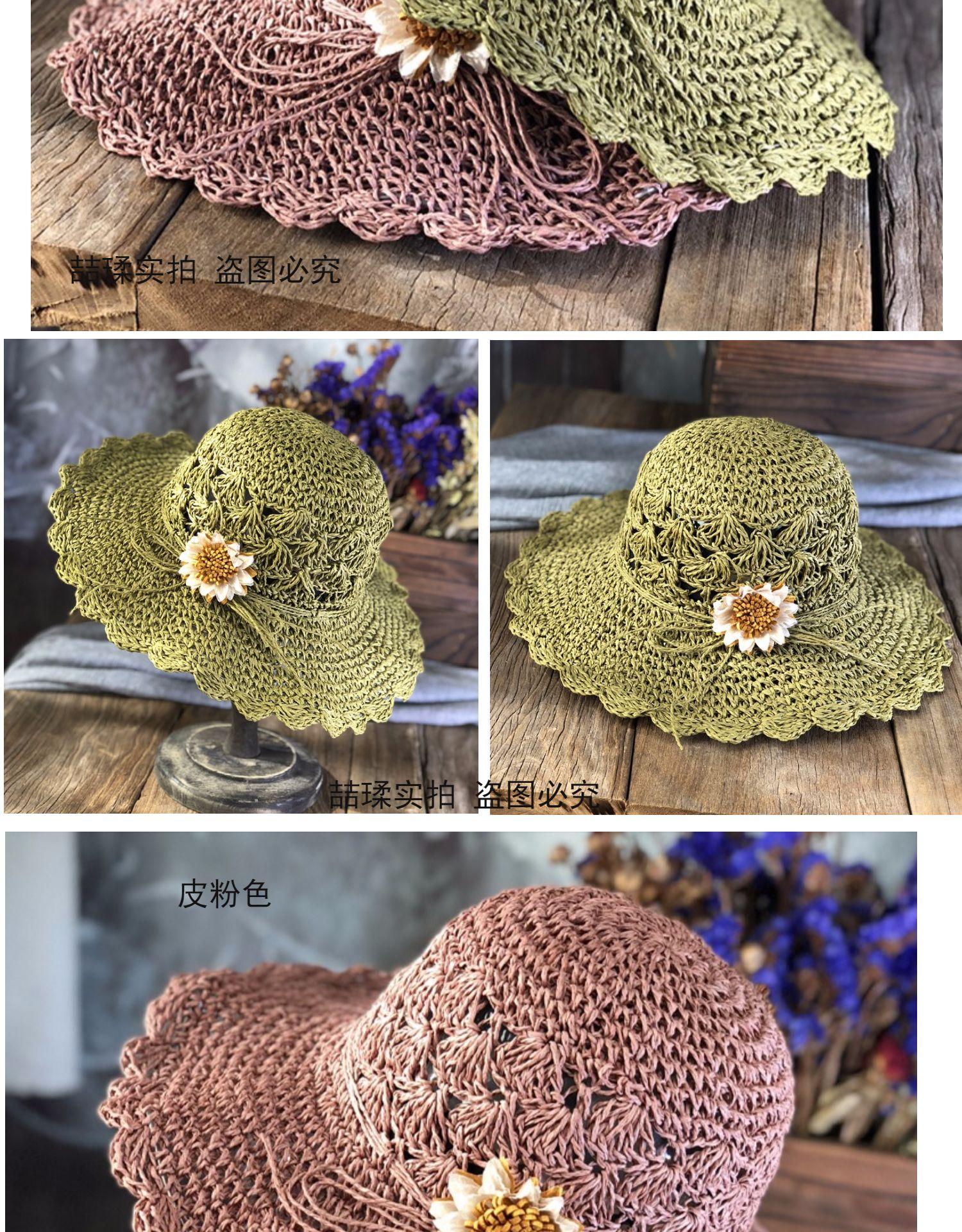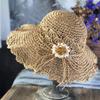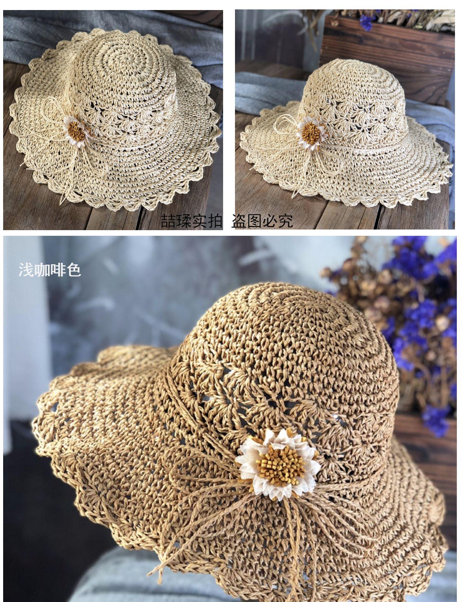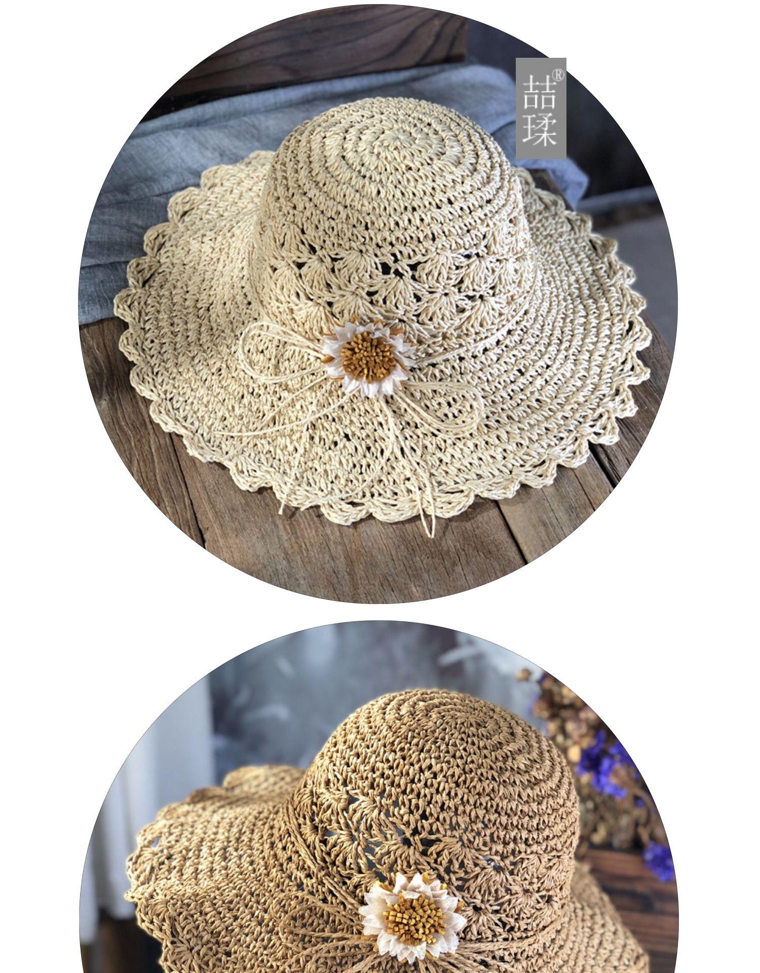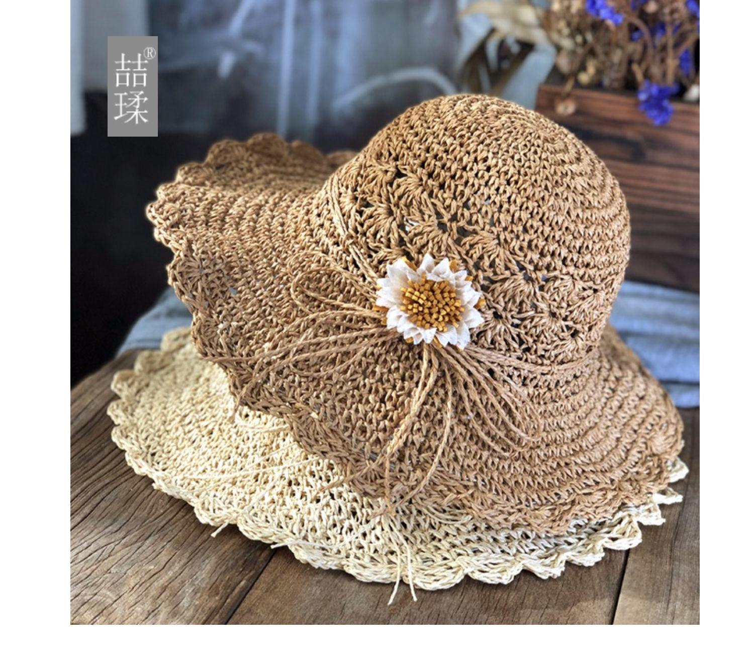 Fan-shaped crocheted yellow heart sunflower edge straw hat light coffee MDCM-001