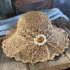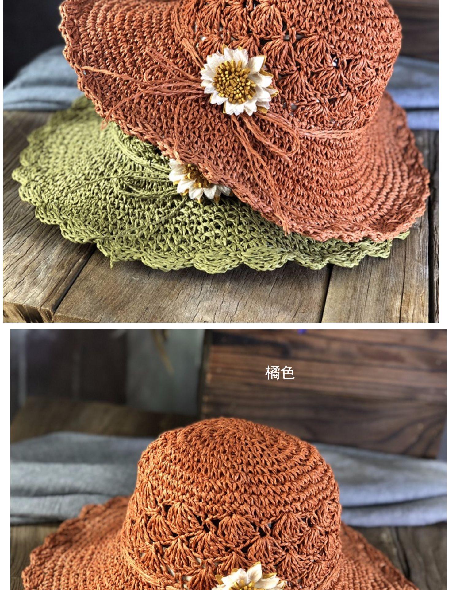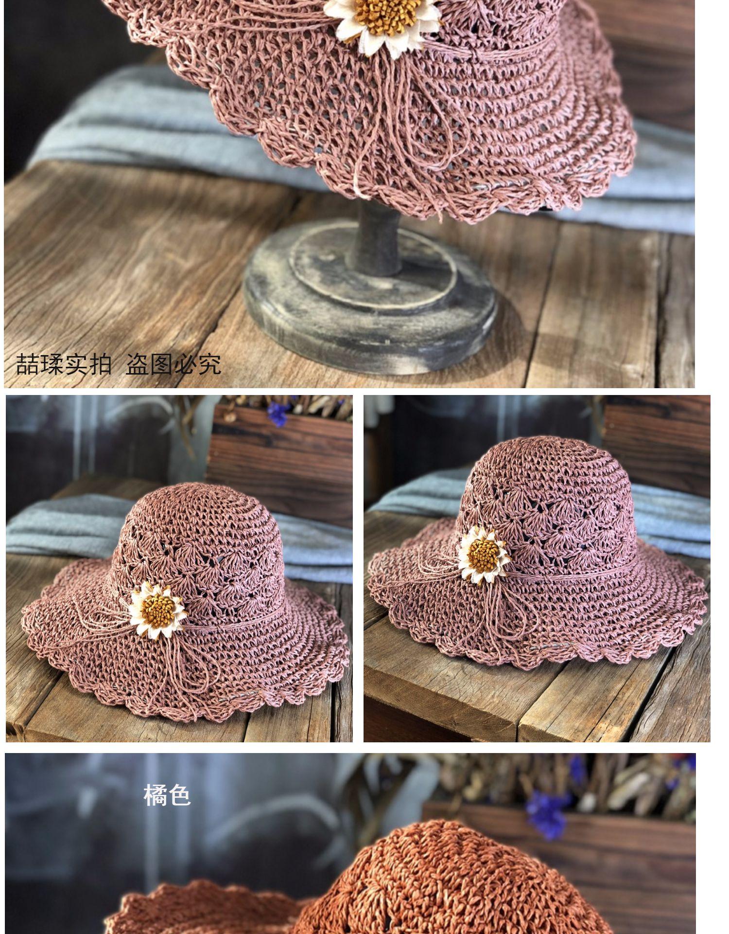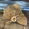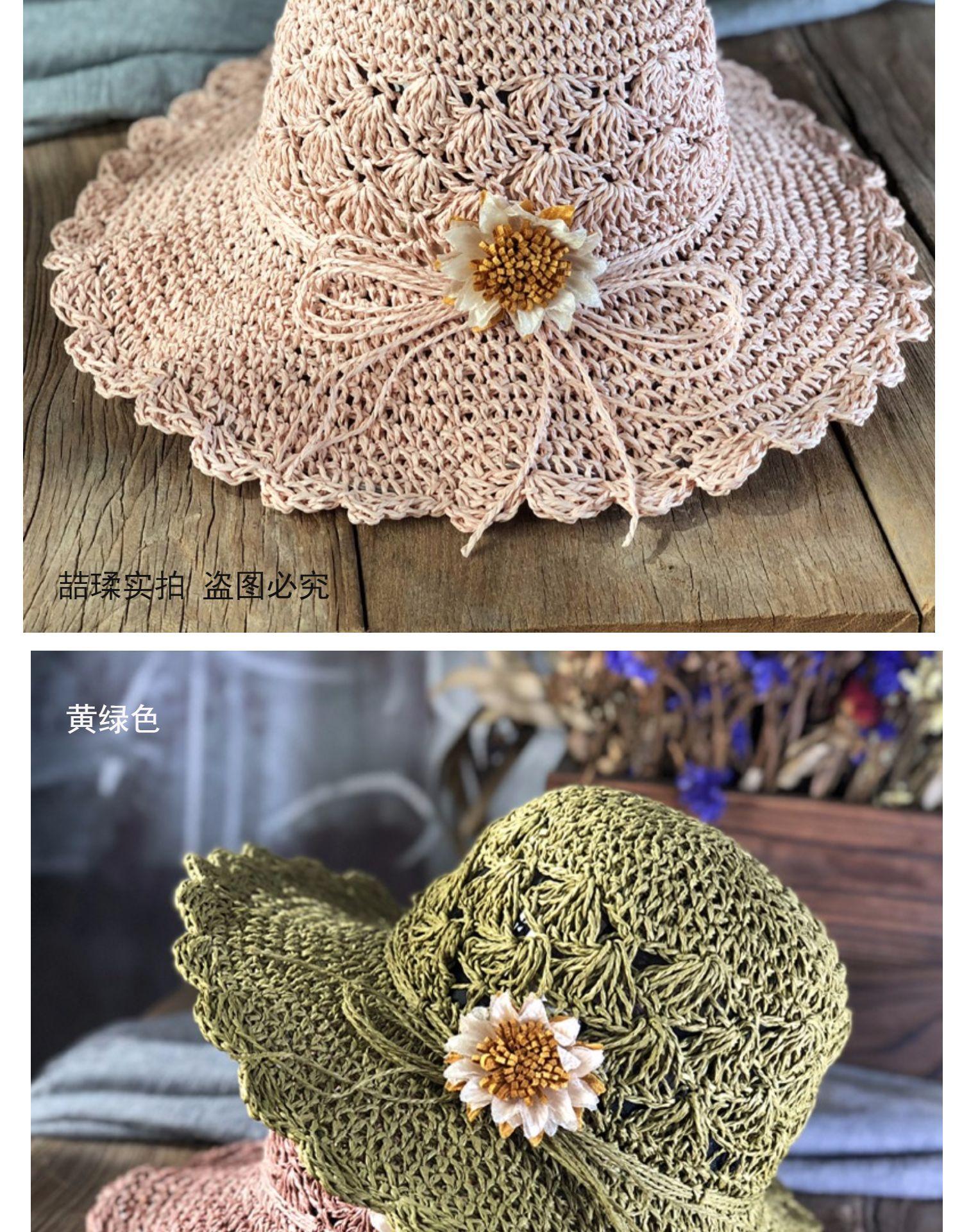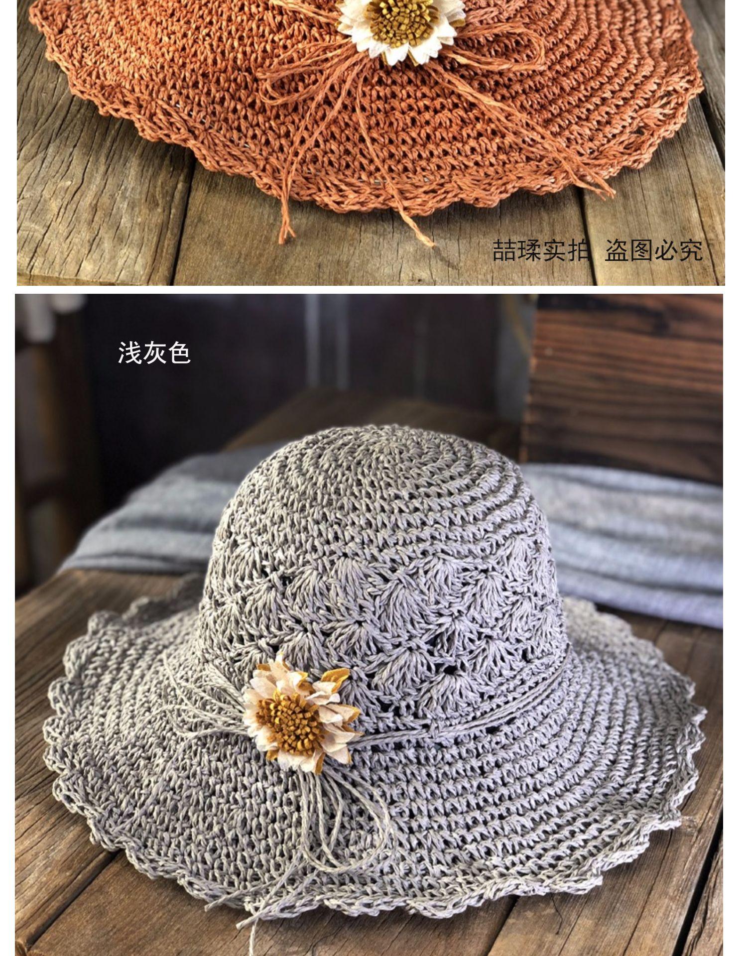 Fan-shaped crocheted yellow heart sunflower edge straw hat light coffee MDCM-001