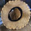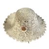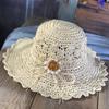 Fan-shaped crocheted yellow heart sunflower edge straw hat beige MDCM-001