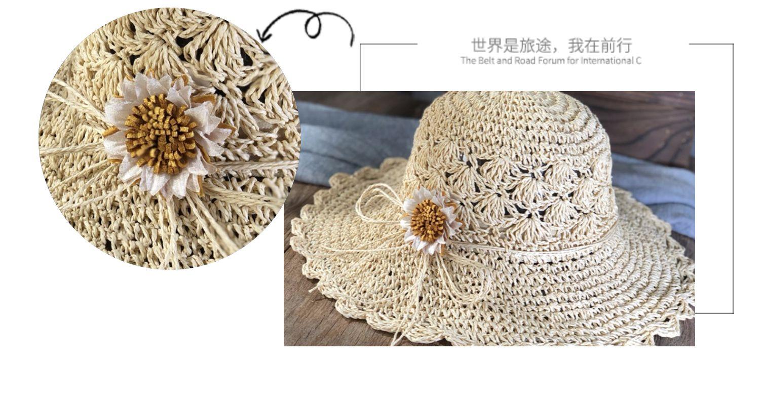 Sombrero de paja tejido a mano para mujer, sombrero de verano fresco para playa, viajes, vacaciones, sombrero para el sol, sombrero de playa plegable versátil con flores