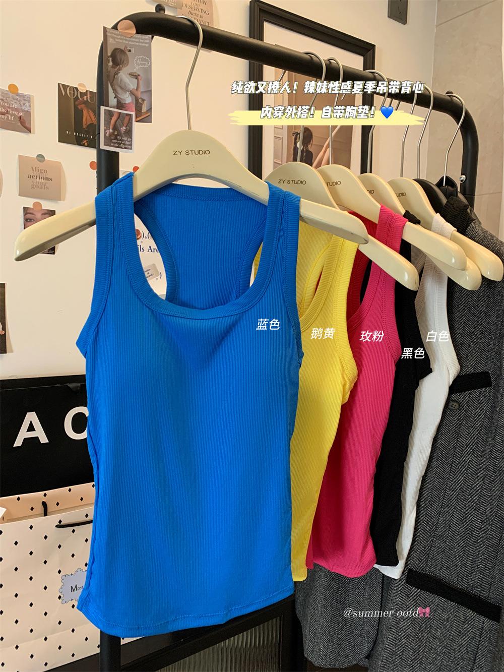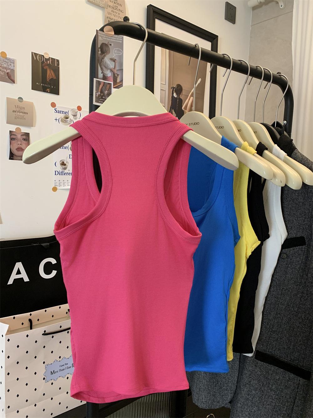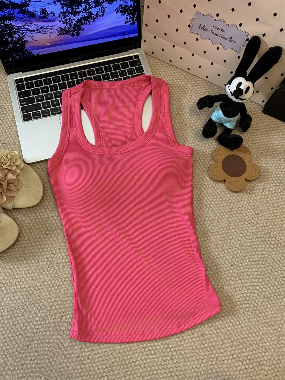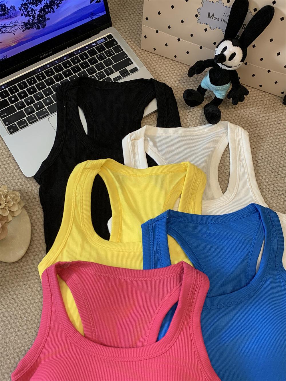 Top de verano de color liso estilo Spice Girl, ajustado, estilo retro americano, sin mangas, con tirantes en forma de I, combina con todo.