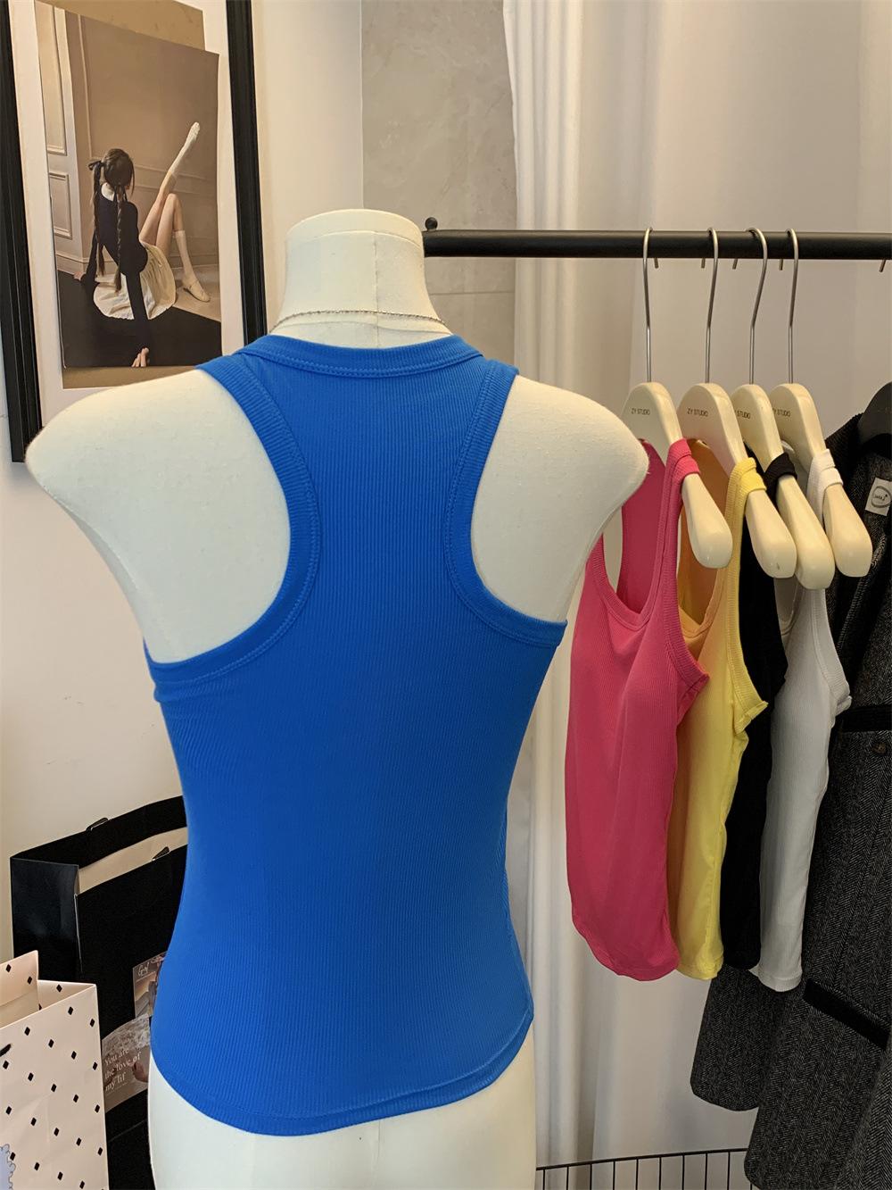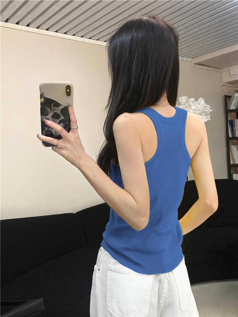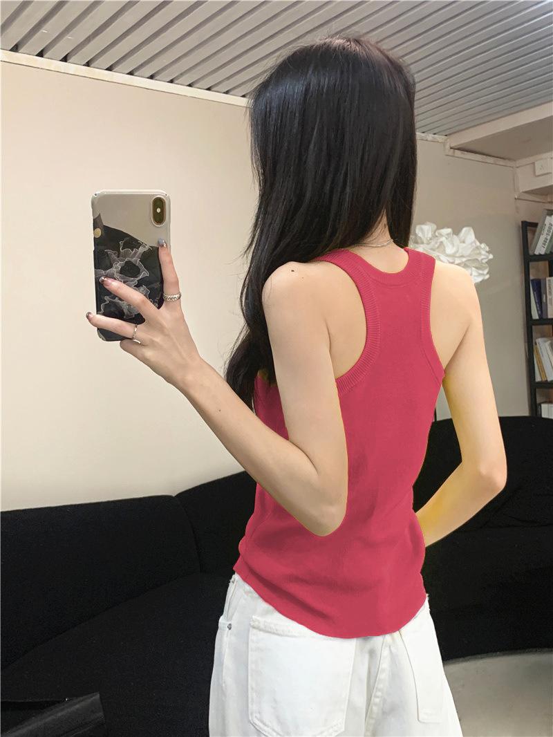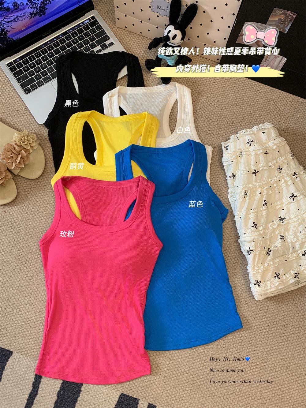 Top de verano de color liso estilo Spice Girl, ajustado, estilo retro americano, sin mangas, con tirantes en forma de I, combina con todo.