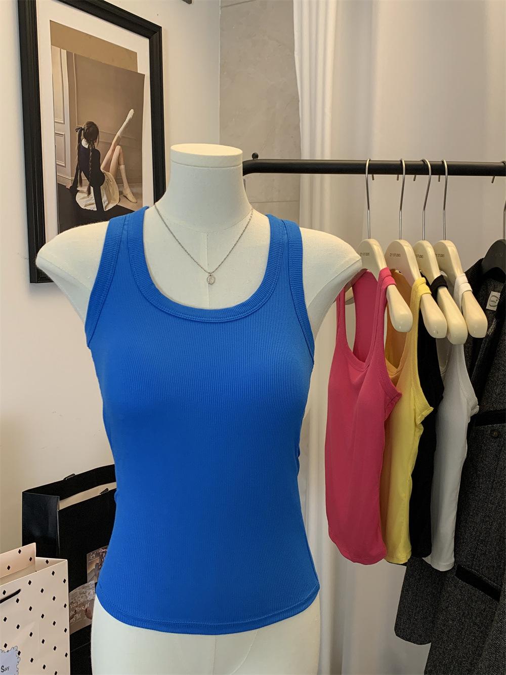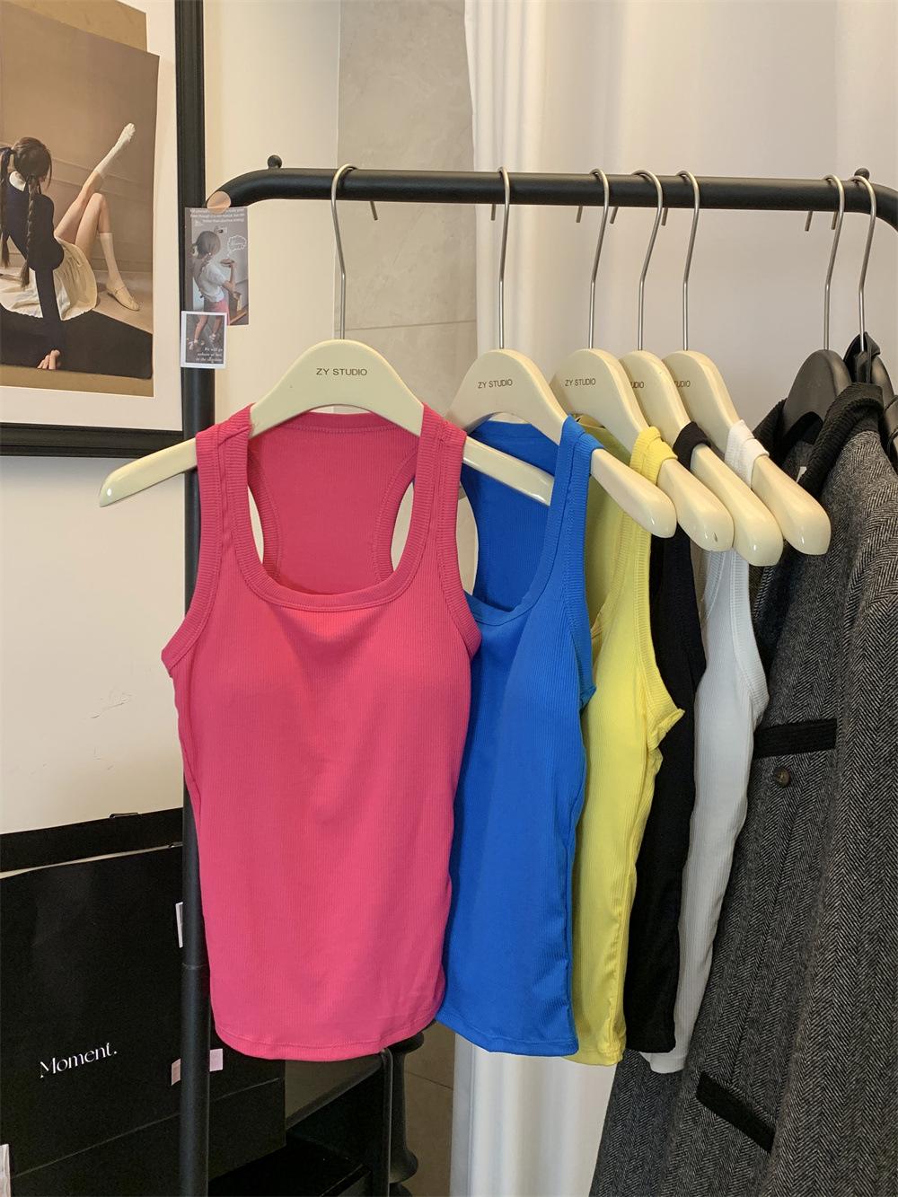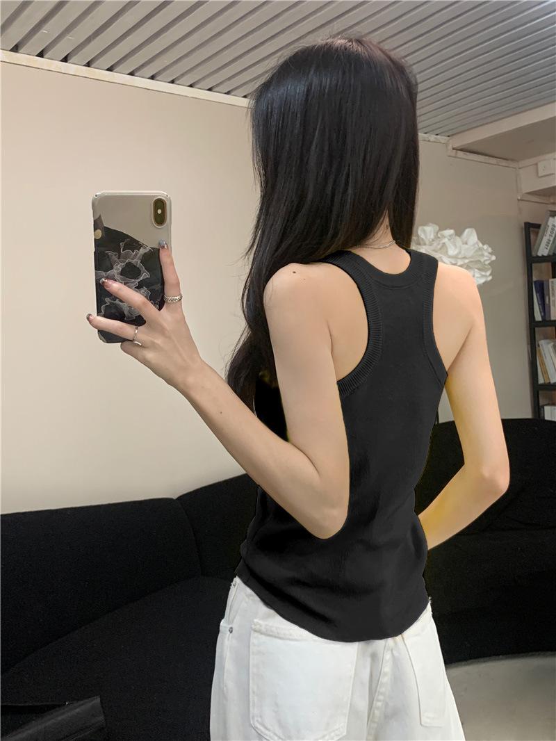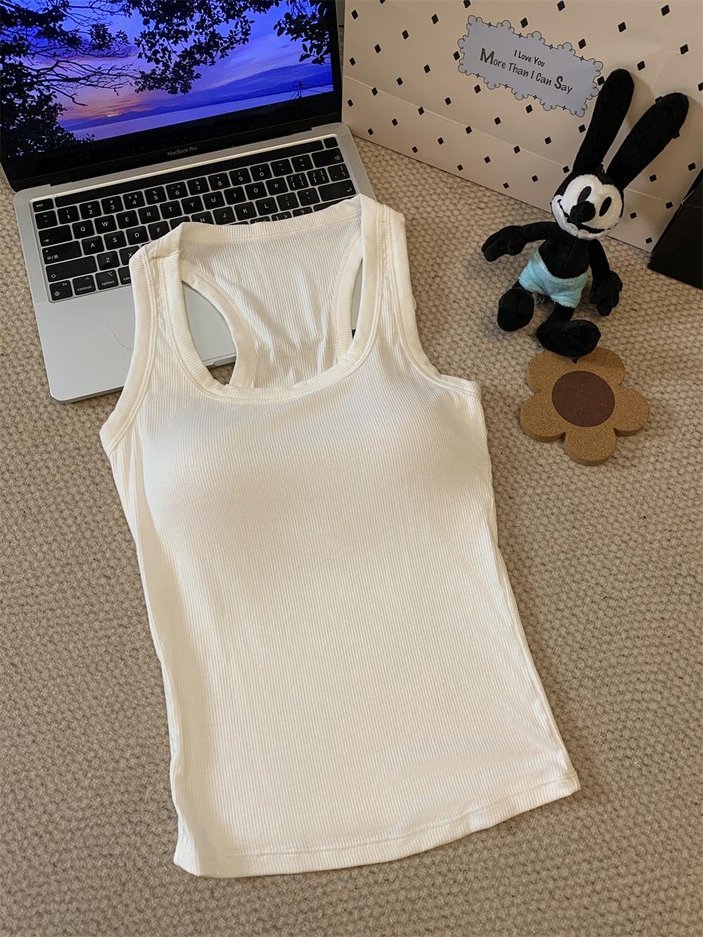 Top de verano de color liso estilo Spice Girl, ajustado, estilo retro americano, sin mangas, con tirantes en forma de I, combina con todo.