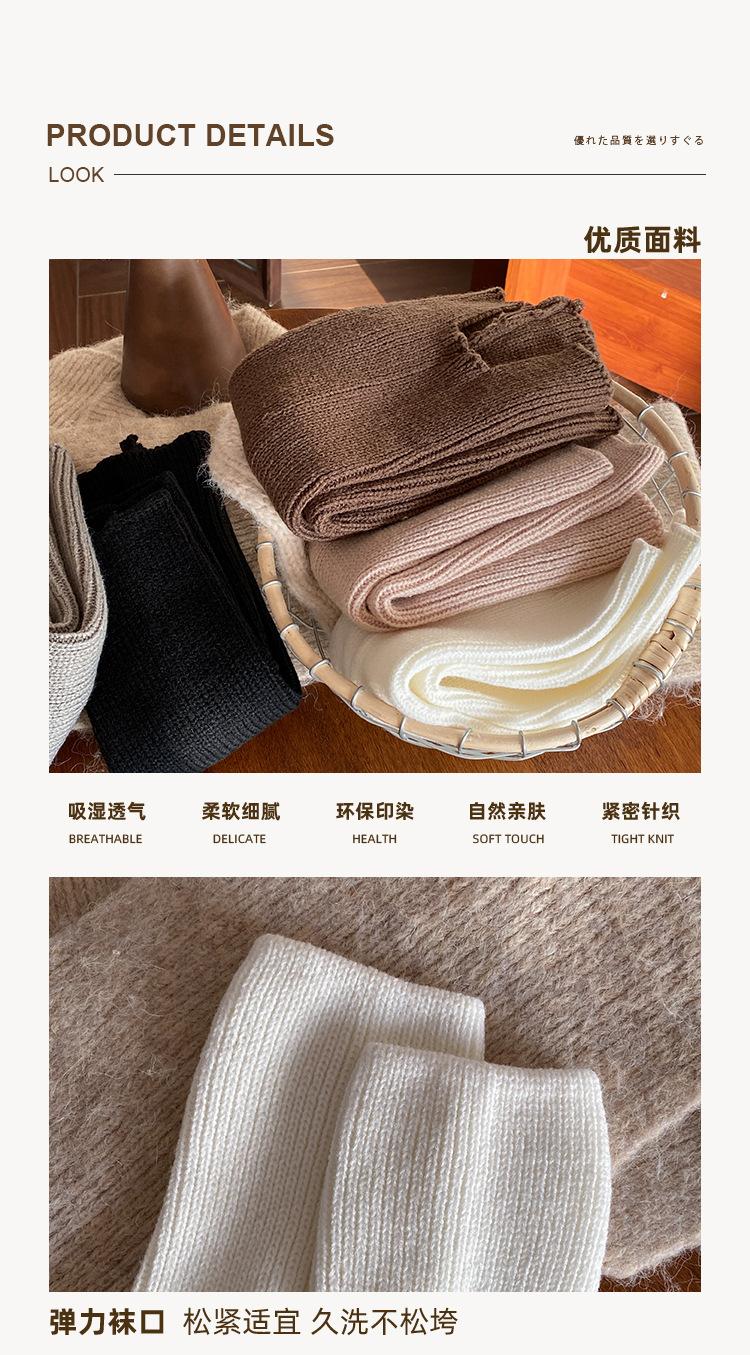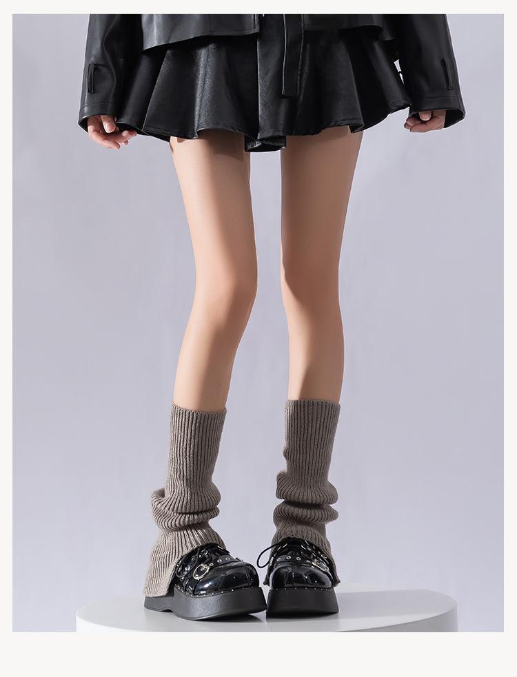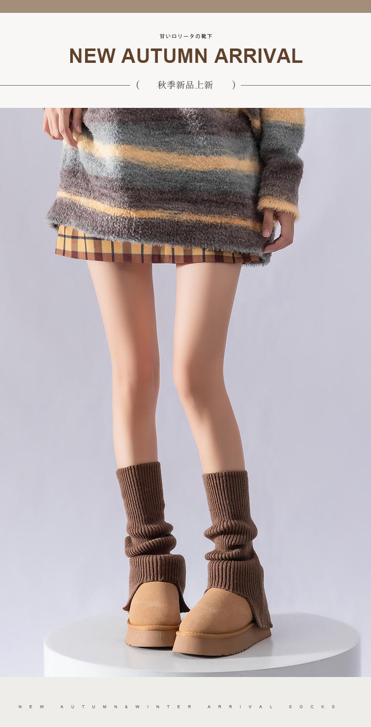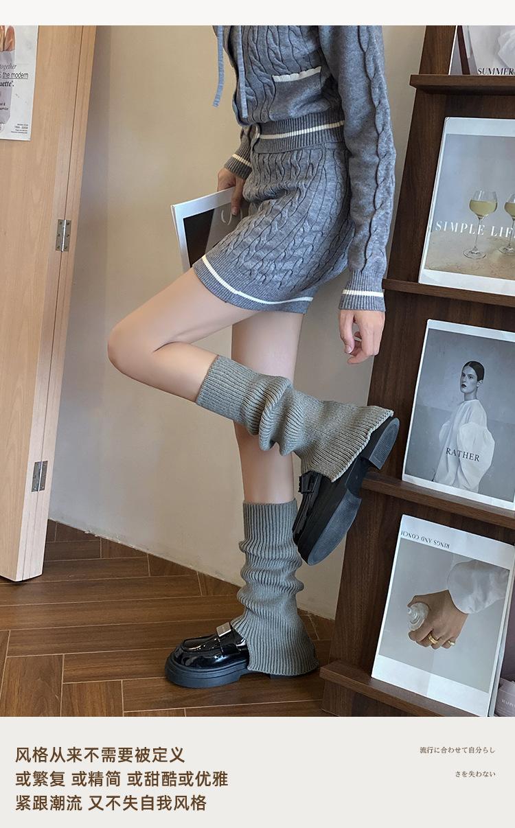 Calcetines de mujer de otoño e invierno de punto gris con cubrepiernas Jk trapezoidales de tubo largo estilo universitario gruesos y cálidos de color sólido con tiras verticales para chicas calientes