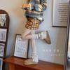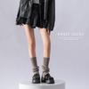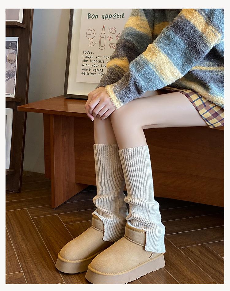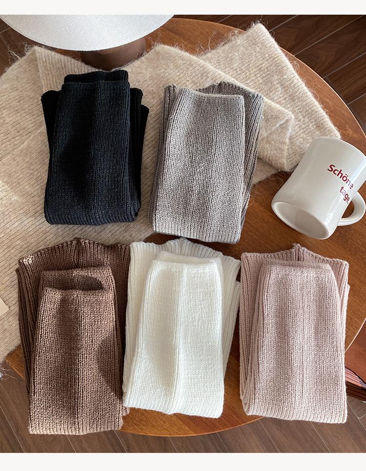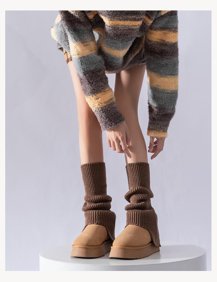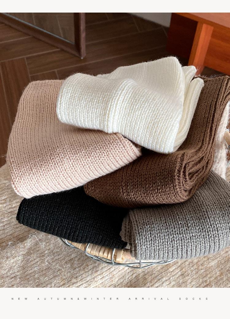 Calcetines de mujer de otoño e invierno de punto gris con cubrepiernas Jk trapezoidales de tubo largo estilo universitario gruesos y cálidos de color sólido con tiras verticales para chicas calientes