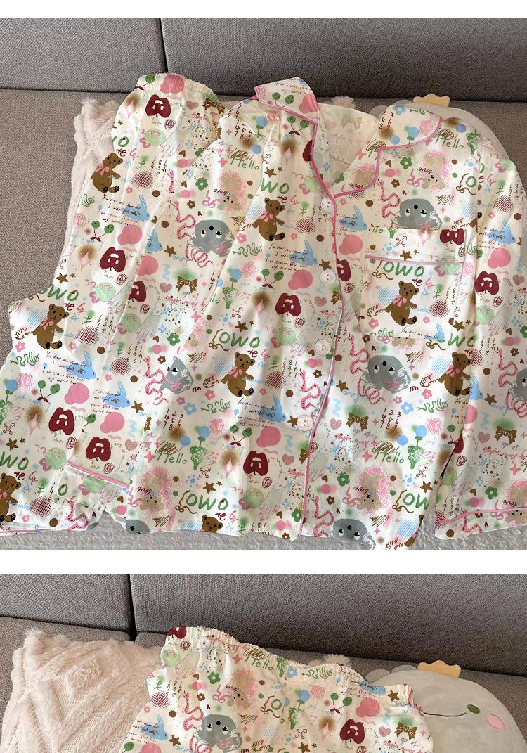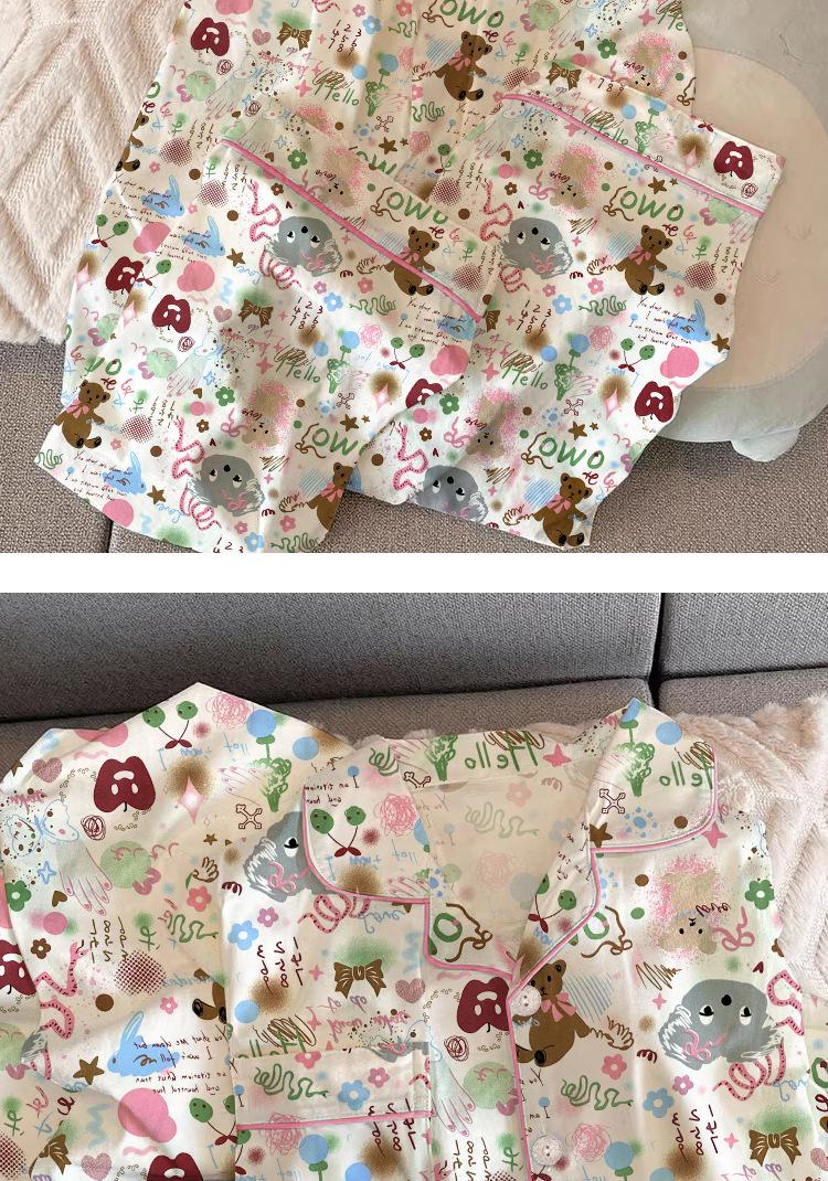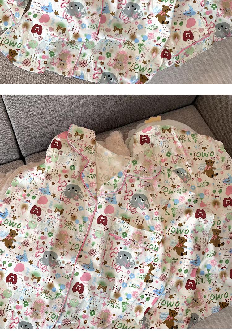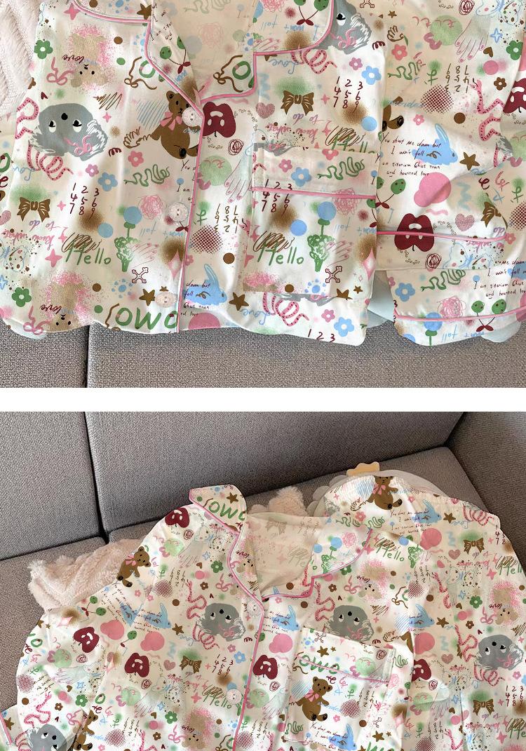 Pijamas de estilo japonés con estampado de grafiti de dibujos animados para mujer, ropa informal de manga larga para el hogar, primavera y otoño, venta al por mayor