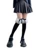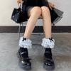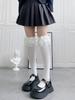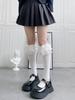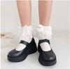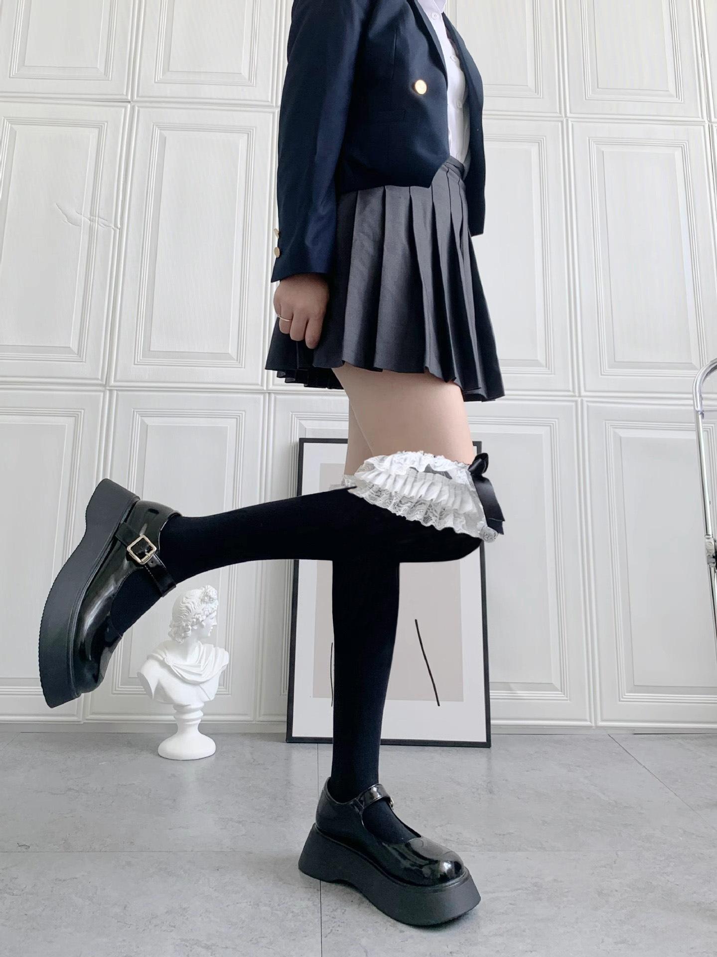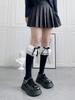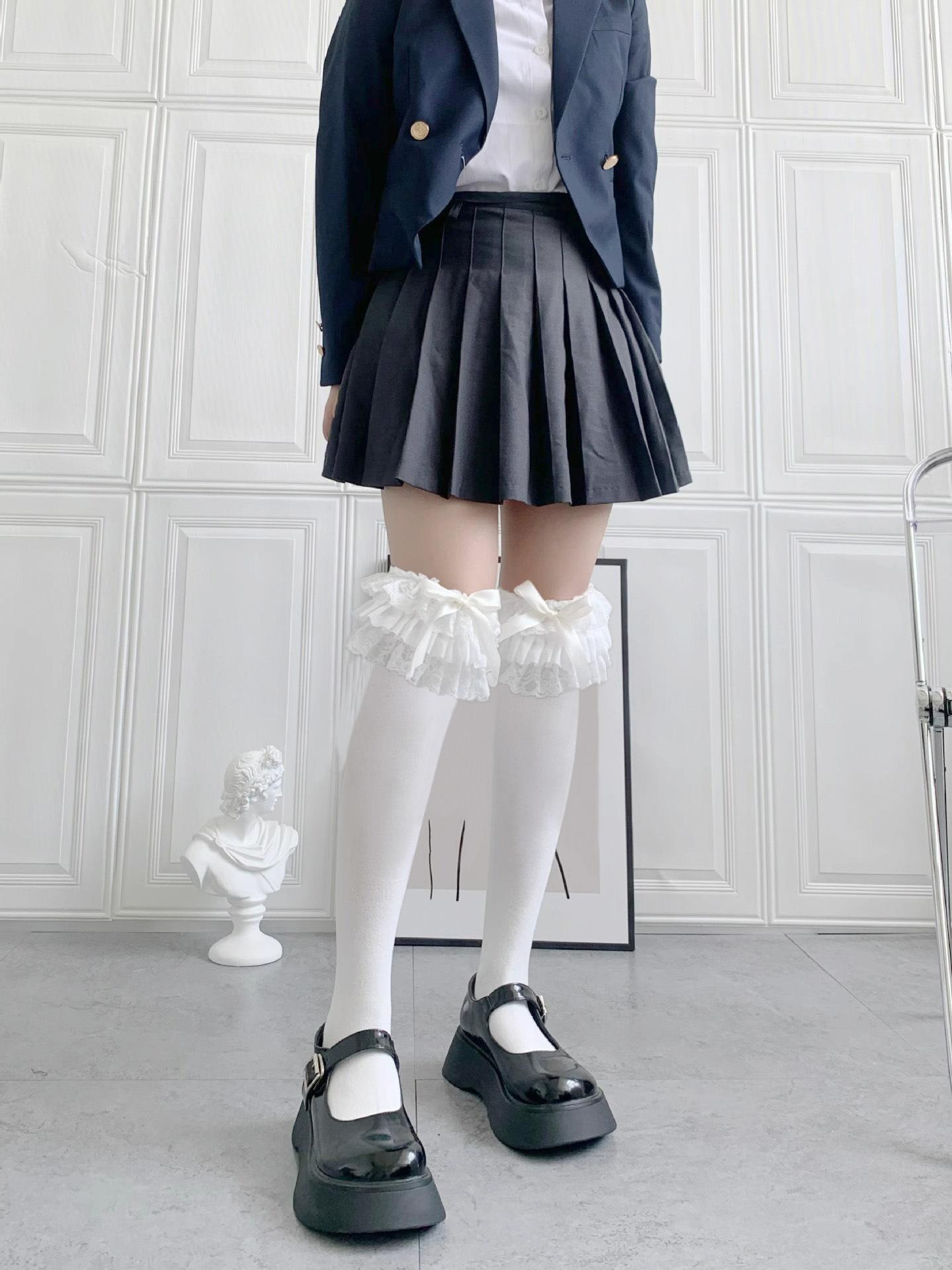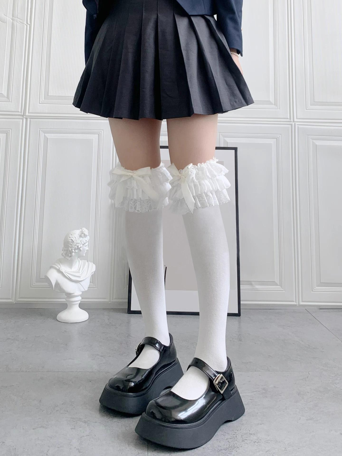 Calcetines de encaje multicapa por encima de la rodilla, calcetines japoneses JK, lindos calcetines de pantorrilla con lazo, calcetines negros de algodón Lolita hasta la mitad de la pantorrilla