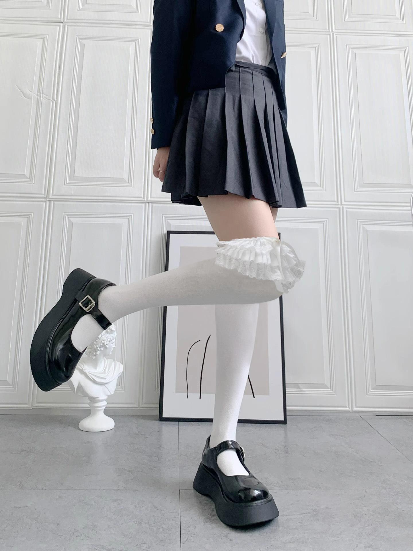 Black lace-knee socks, White lace-over-the-knee socks, Black lace-calf socks, White lace-calf socks, Black lac...