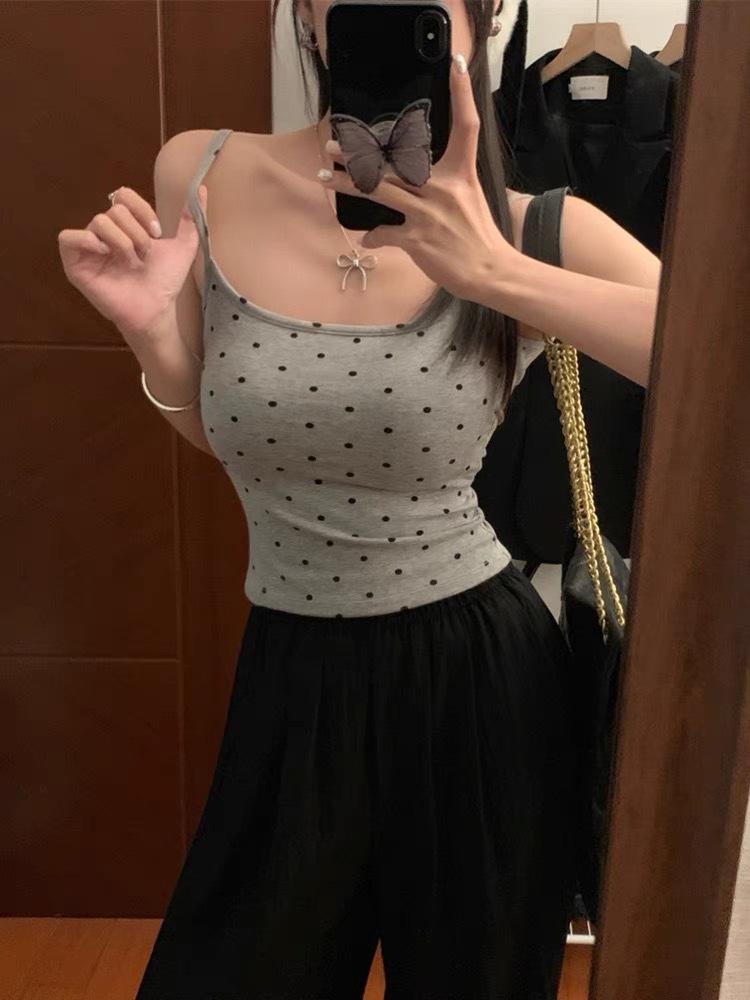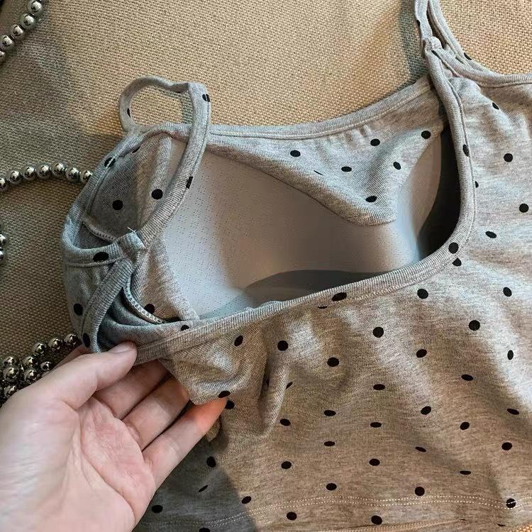 Chaleco pequeño con espalda descubierta y lunares ondulados de color gris estilo Pure Desire para mujer, con almohadilla interior para el pecho, sexy y hermoso top en la espalda.
