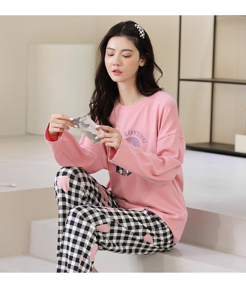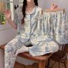 Pijamas para mujer de primavera y otoño, pijamas dulces estampados de manga larga para mujer, pantalones de internet con almohadilla en el pecho 2024, traje para el hogar