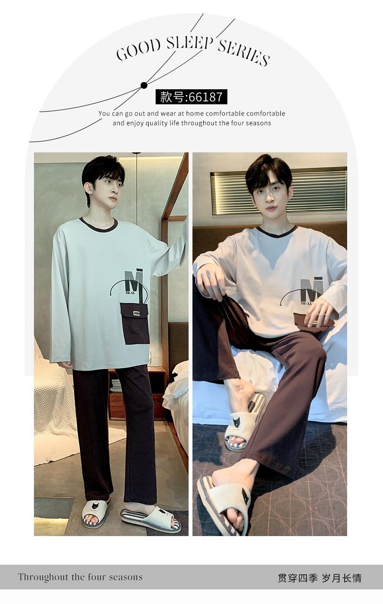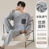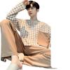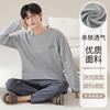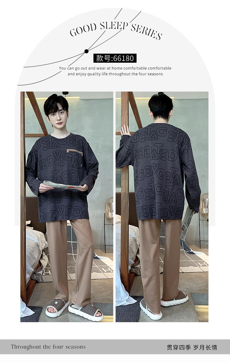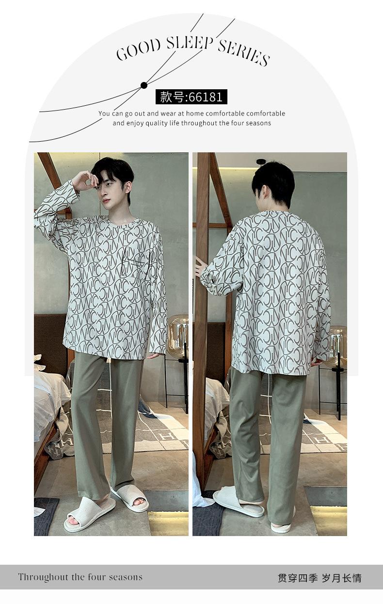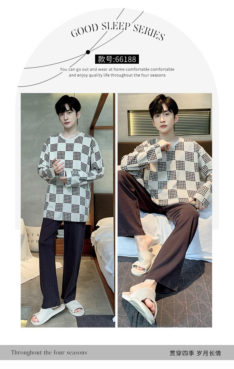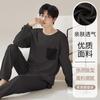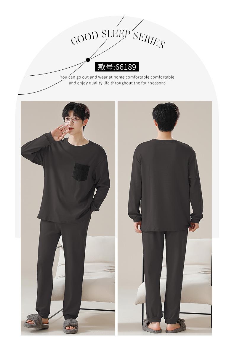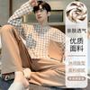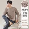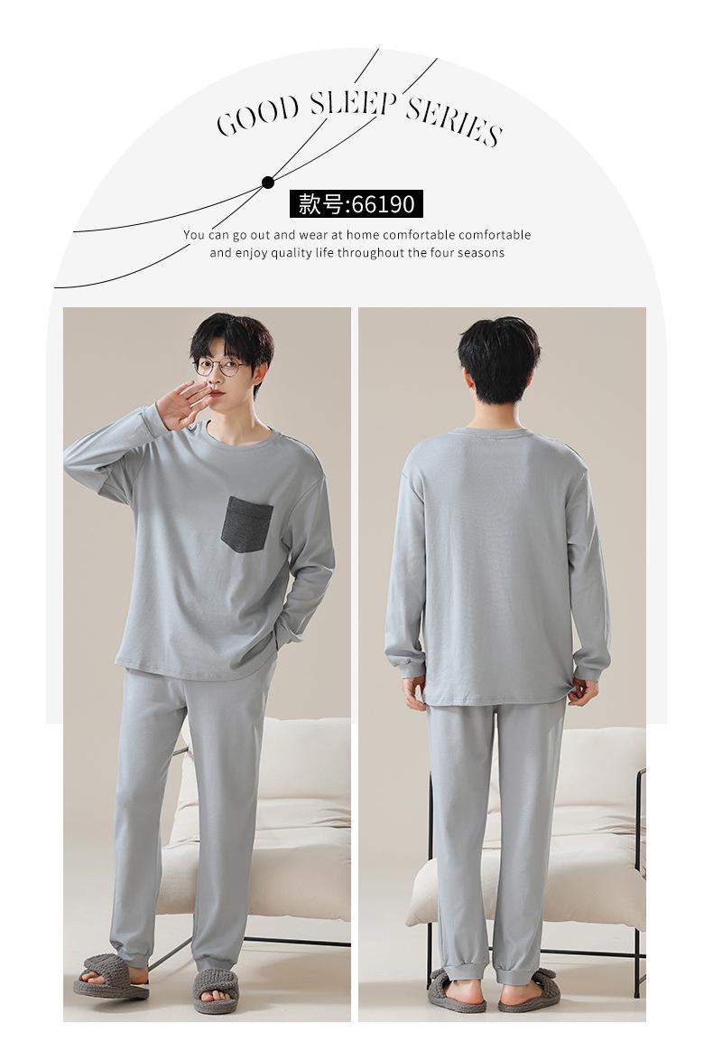 En stock, primavera y otoño, nuevos pijamas para hombre, sencillos, informales, de cuello redondo, de algodón, de manga larga, ropa para el hogar para hombre.