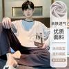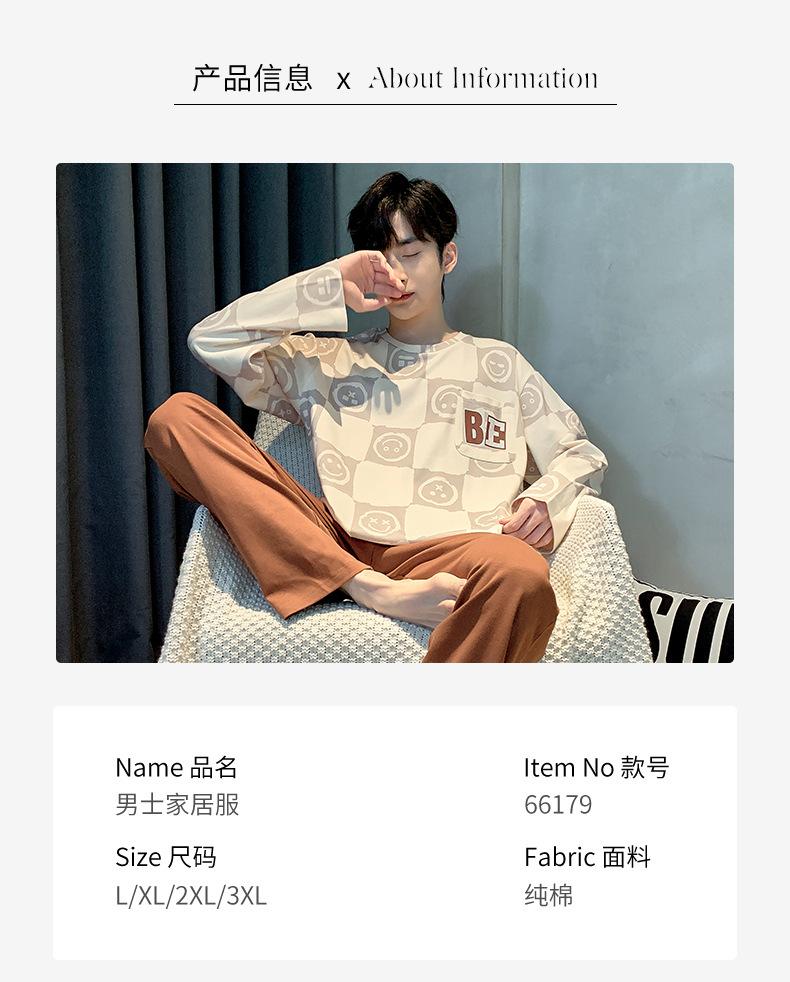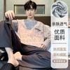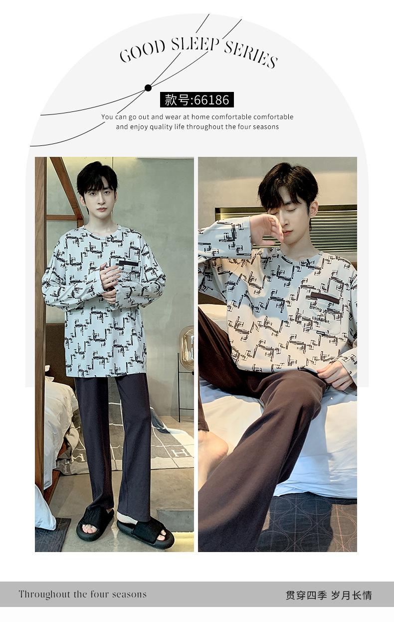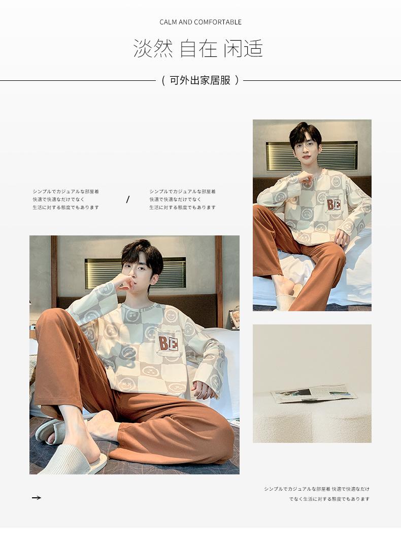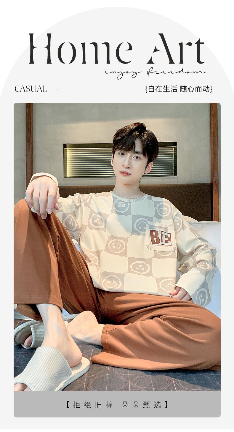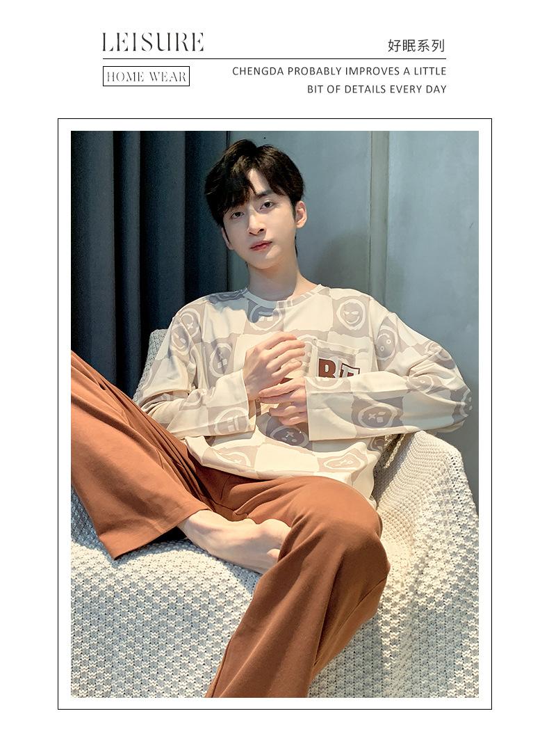 En stock, primavera y otoño, nuevos pijamas para hombre, sencillos, informales, de cuello redondo, de algodón, de manga larga, ropa para el hogar para hombre.