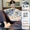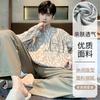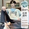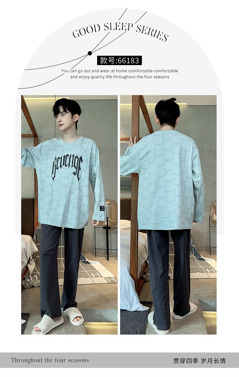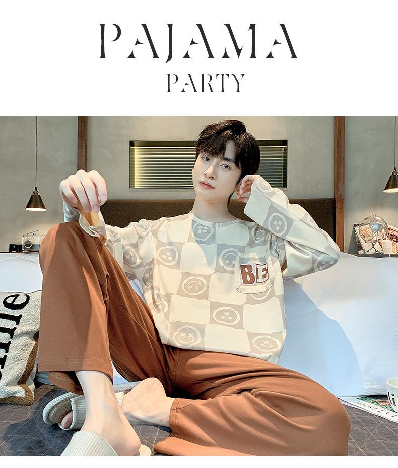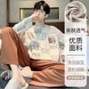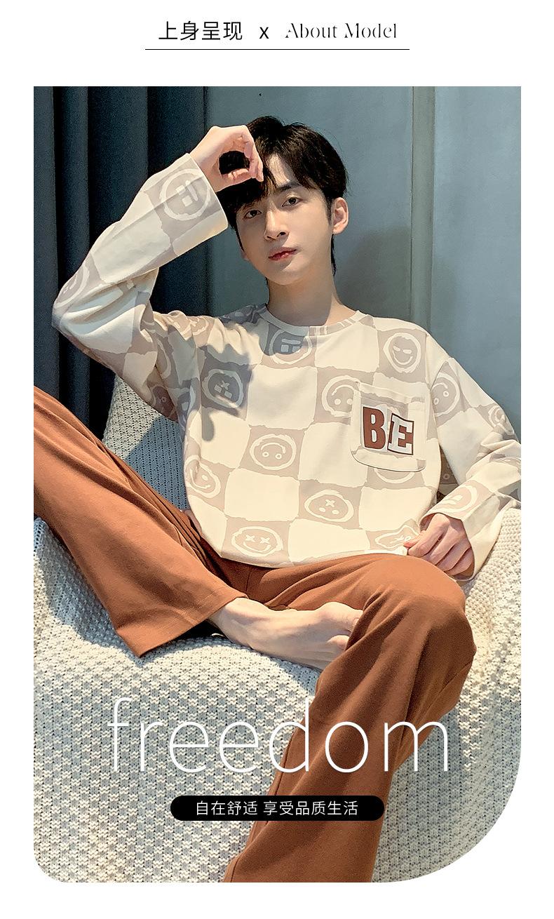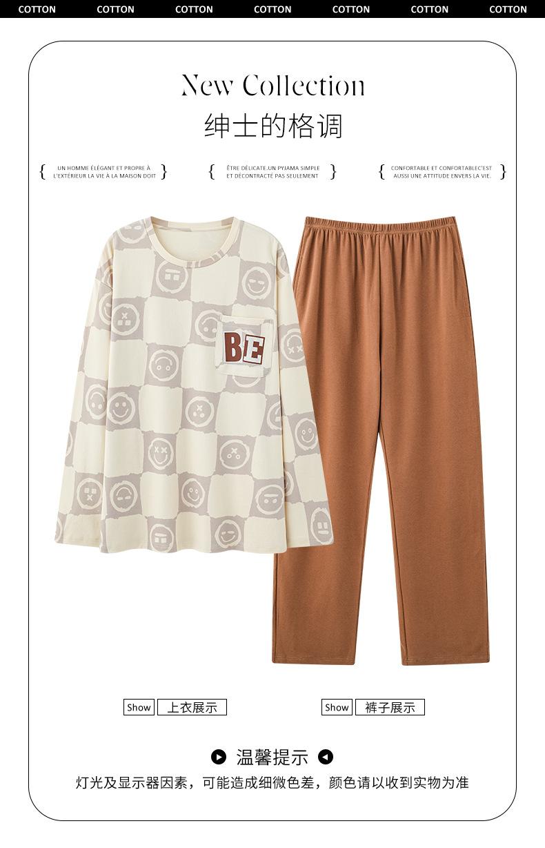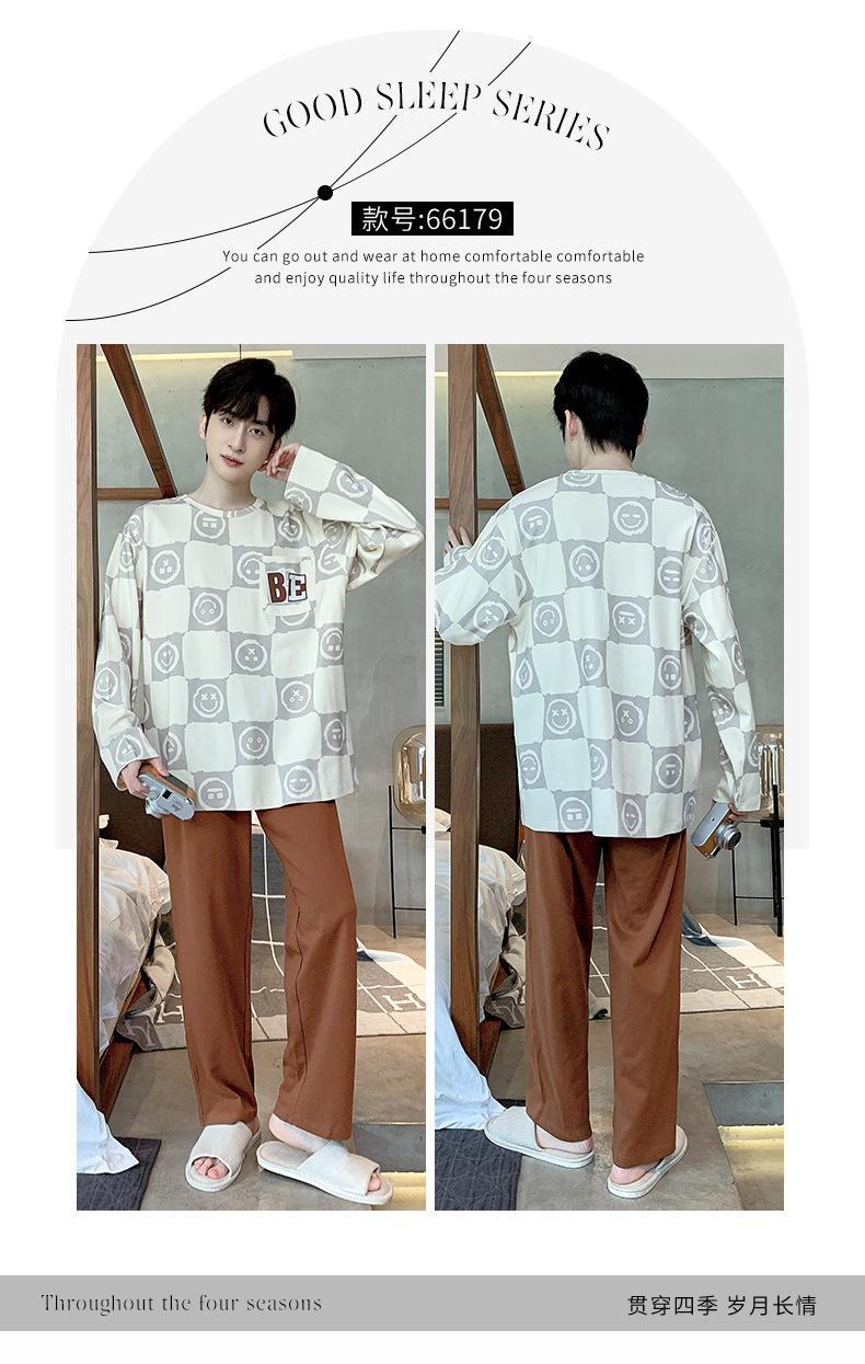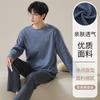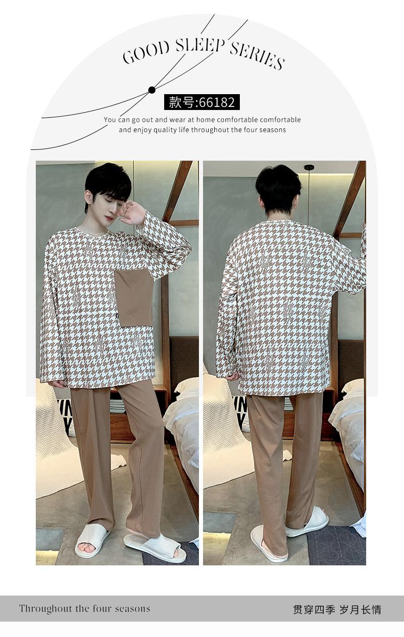 En stock, primavera y otoño, nuevos pijamas para hombre, sencillos, informales, de cuello redondo, de algodón, de manga larga, ropa para el hogar para hombre.