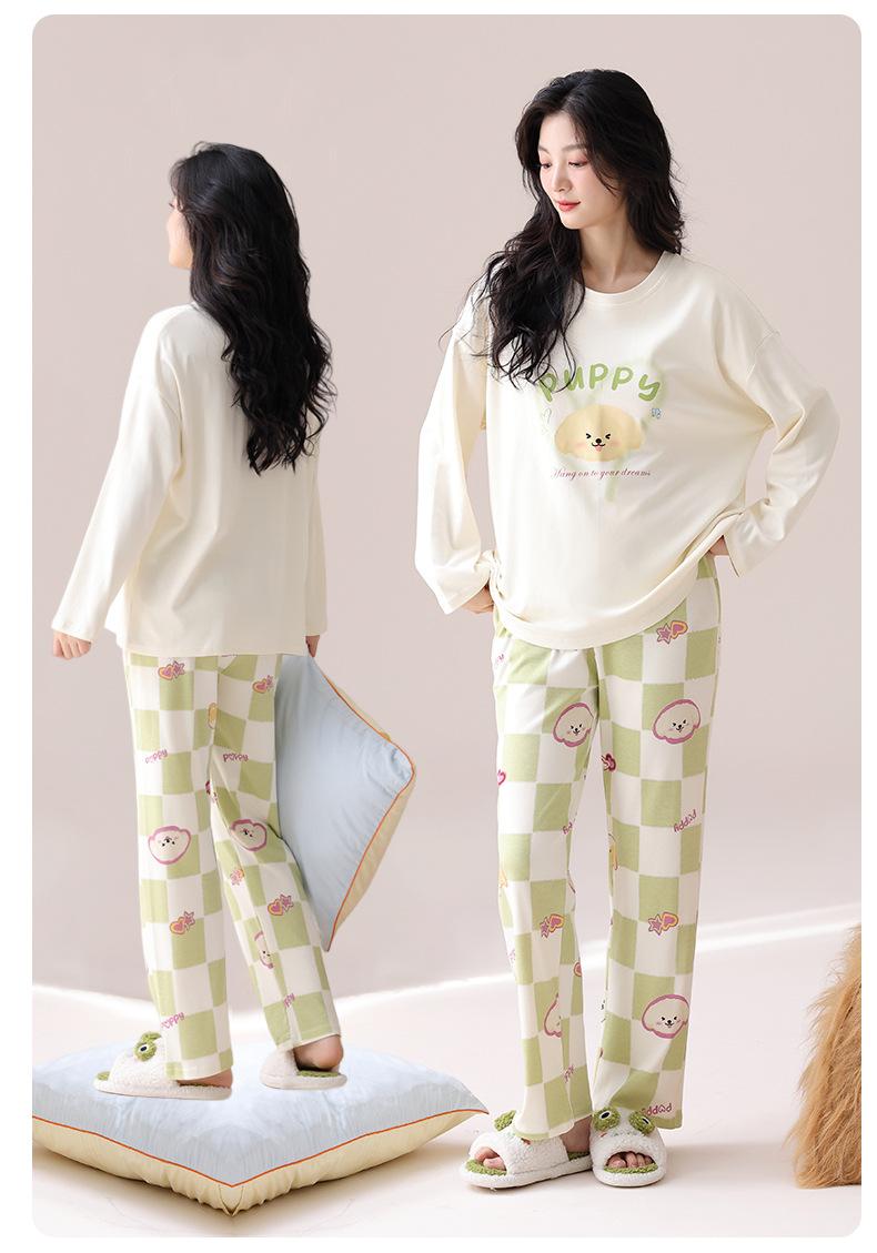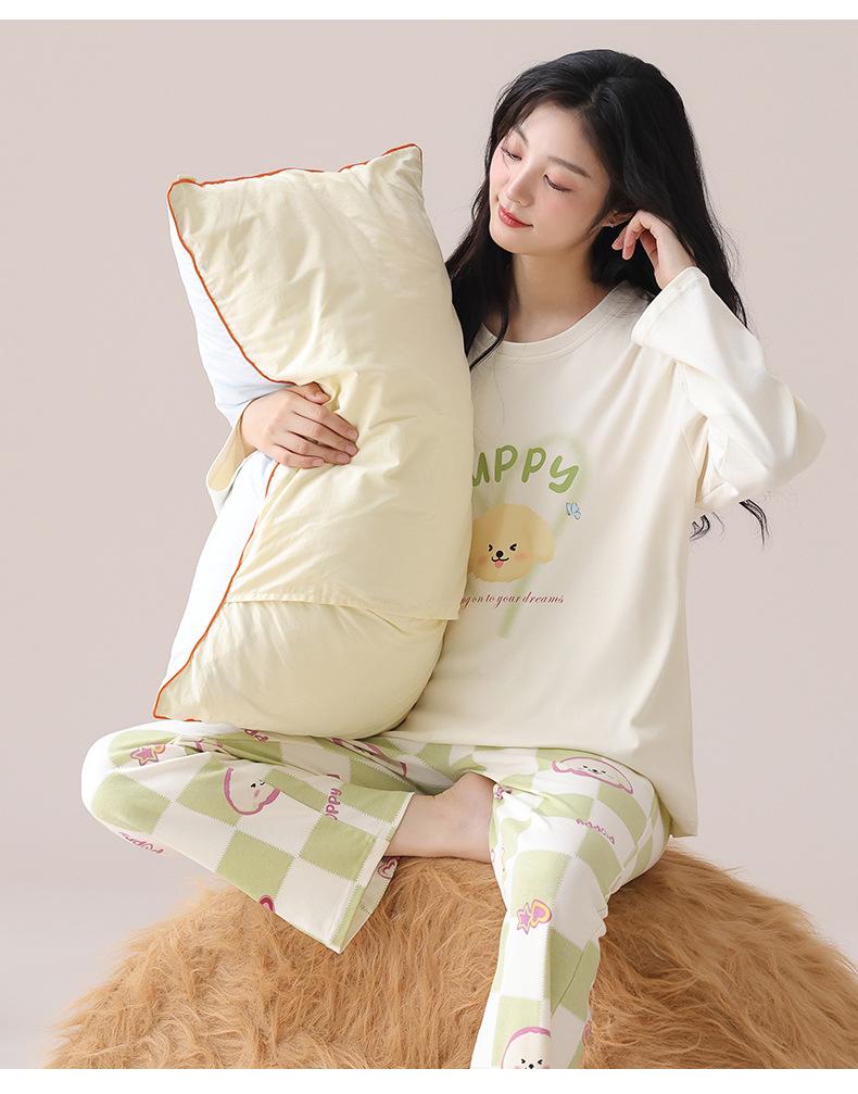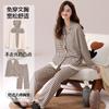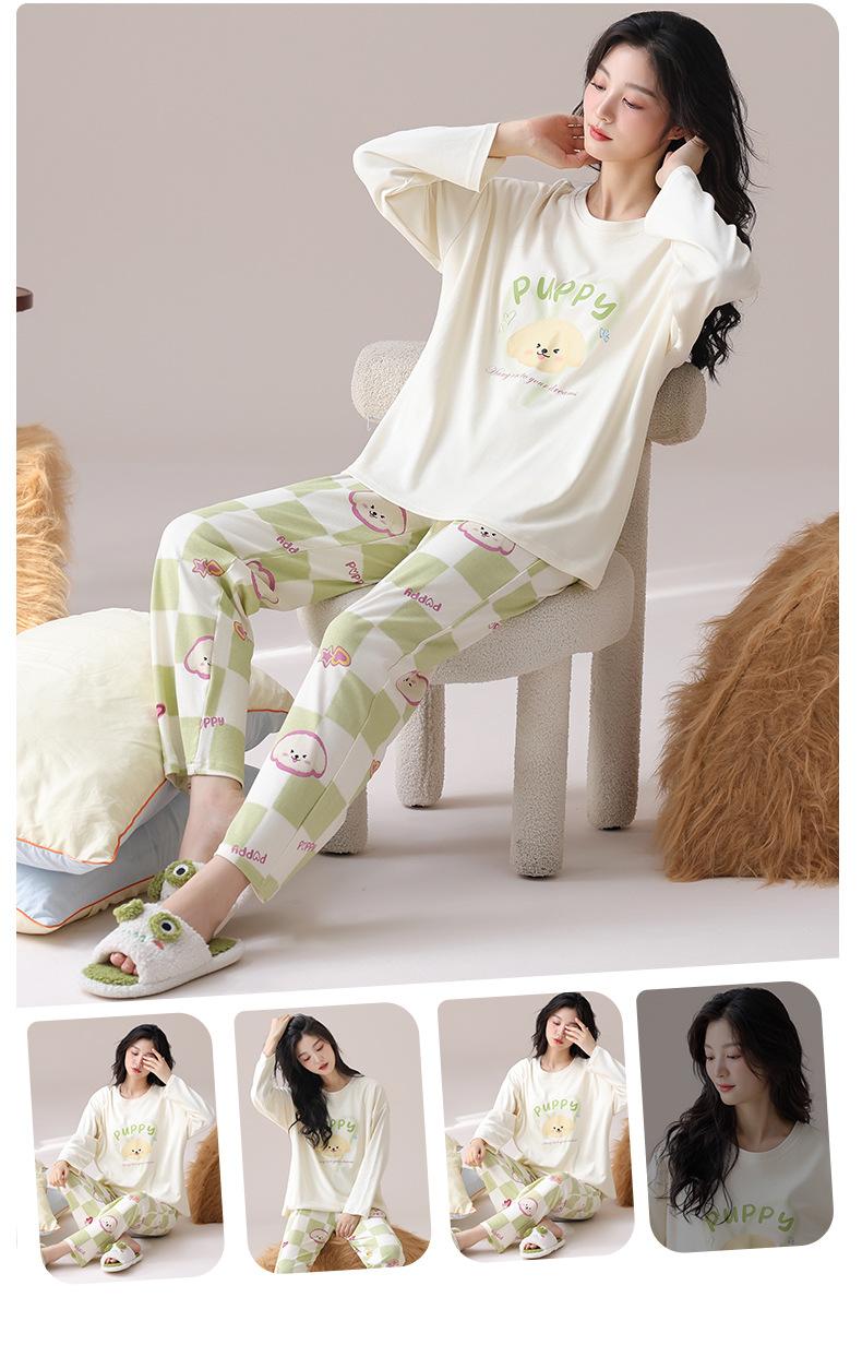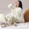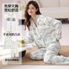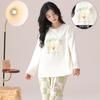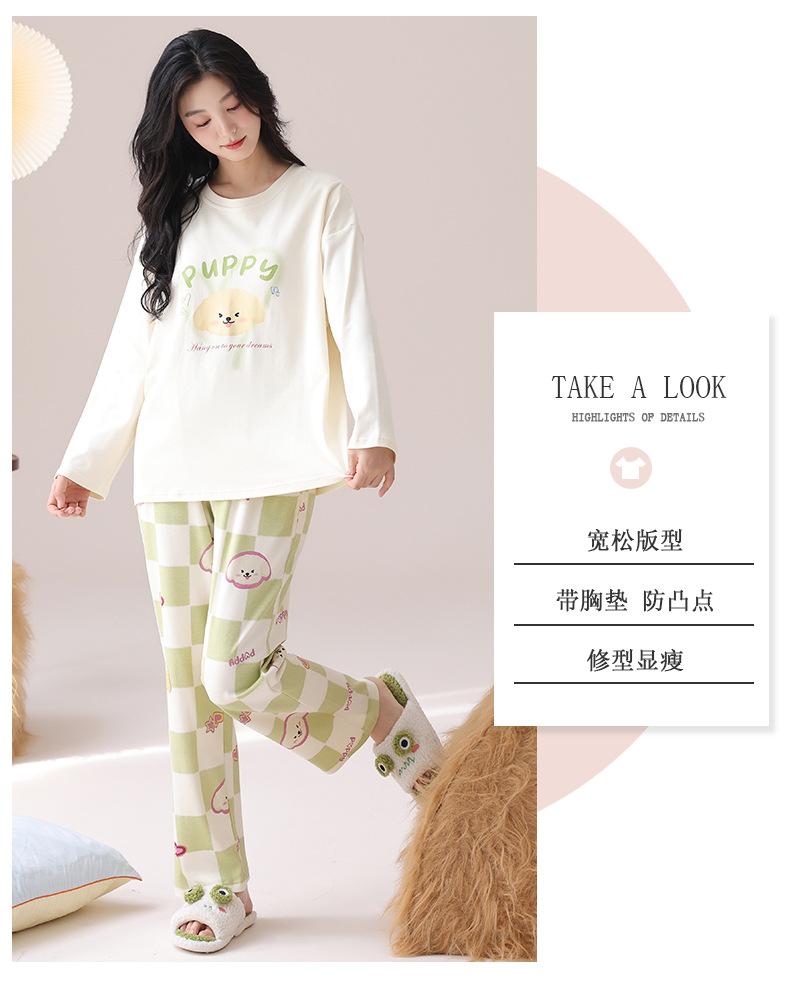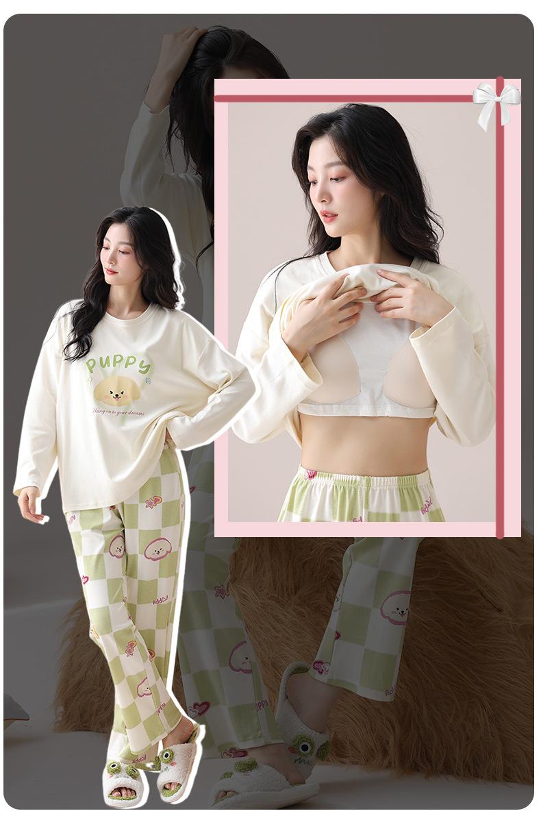 [Algodón puro] 40 pijamas de doble cara para mujer con almohadilla para el pecho, ropa de casa de manga larga de primavera y otoño, traje suave de otoño e invierno