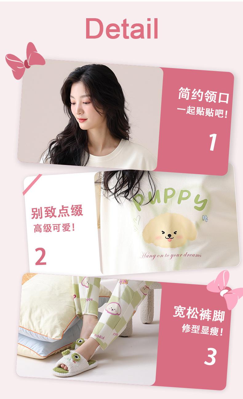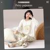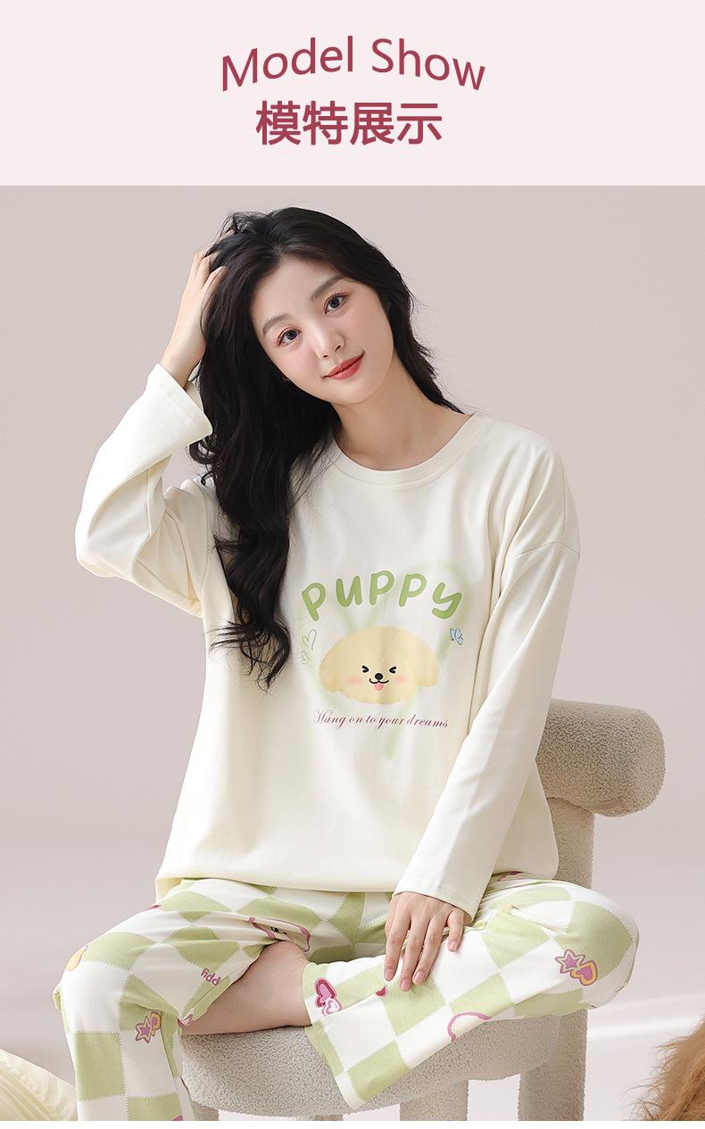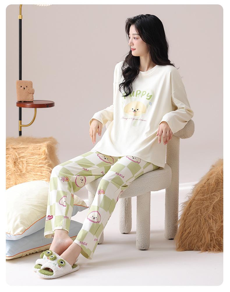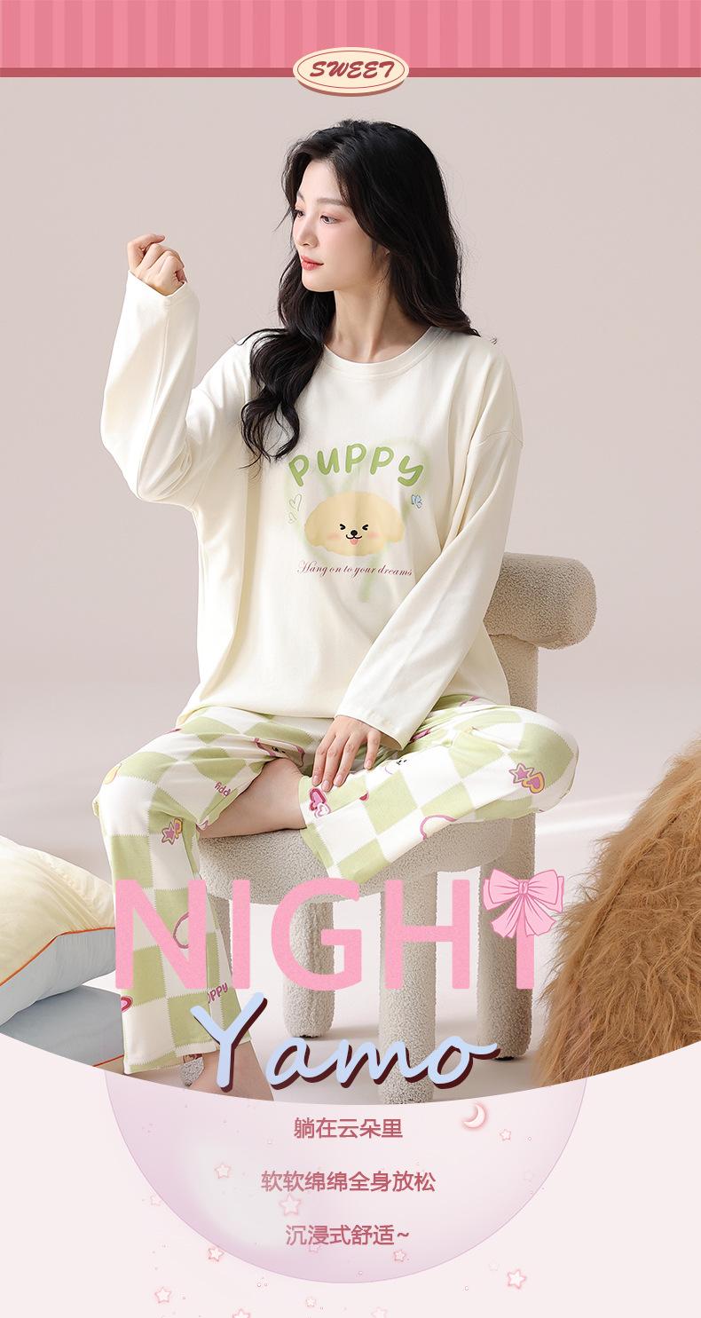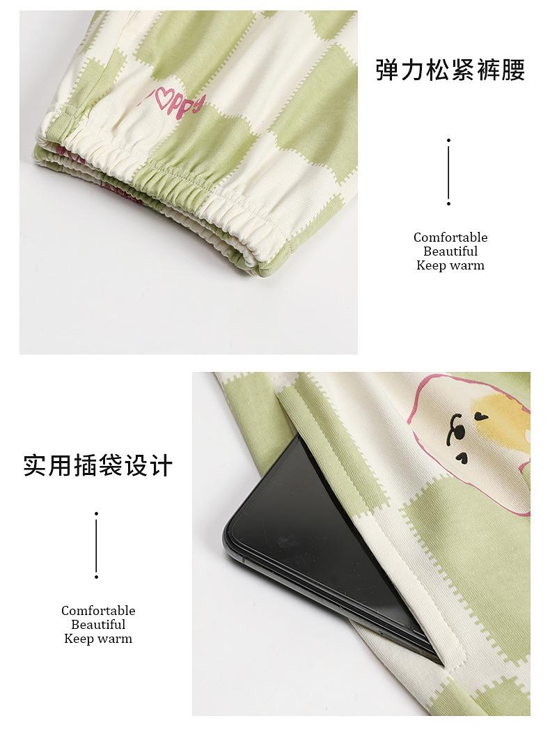 [Algodón puro] 40 pijamas de doble cara para mujer con almohadilla para el pecho, ropa de casa de manga larga de primavera y otoño, traje suave de otoño e invierno