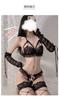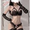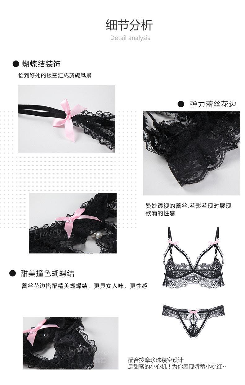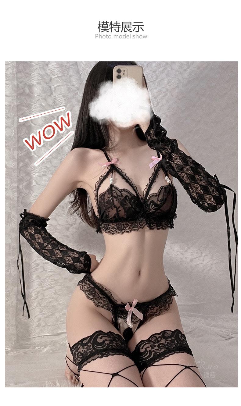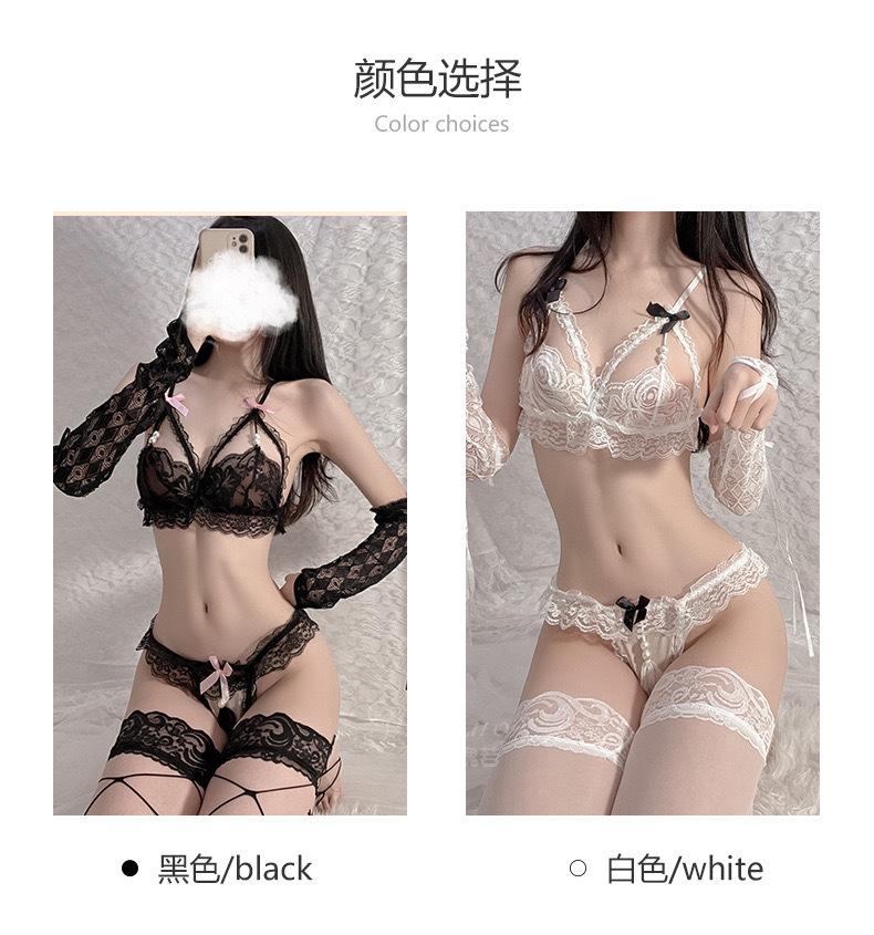 Lencería Sexy Tejida Dorada, Tentación Sexy, Conjunto de Encaje de Tres Puntos Dulce Transparente de Sujetador y Panties