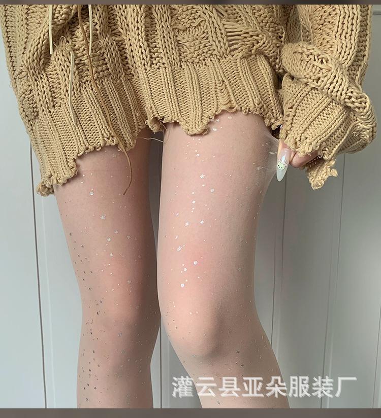 Medias de lentejuelas sexys calcetines color piel pura delgados brillantes flash diamante hermana real delgadas pantimedias para mujeres 3427