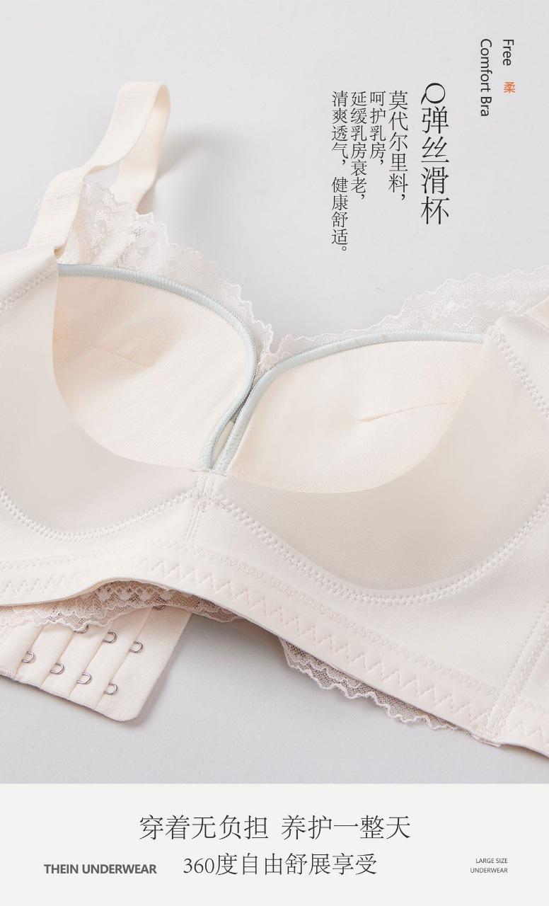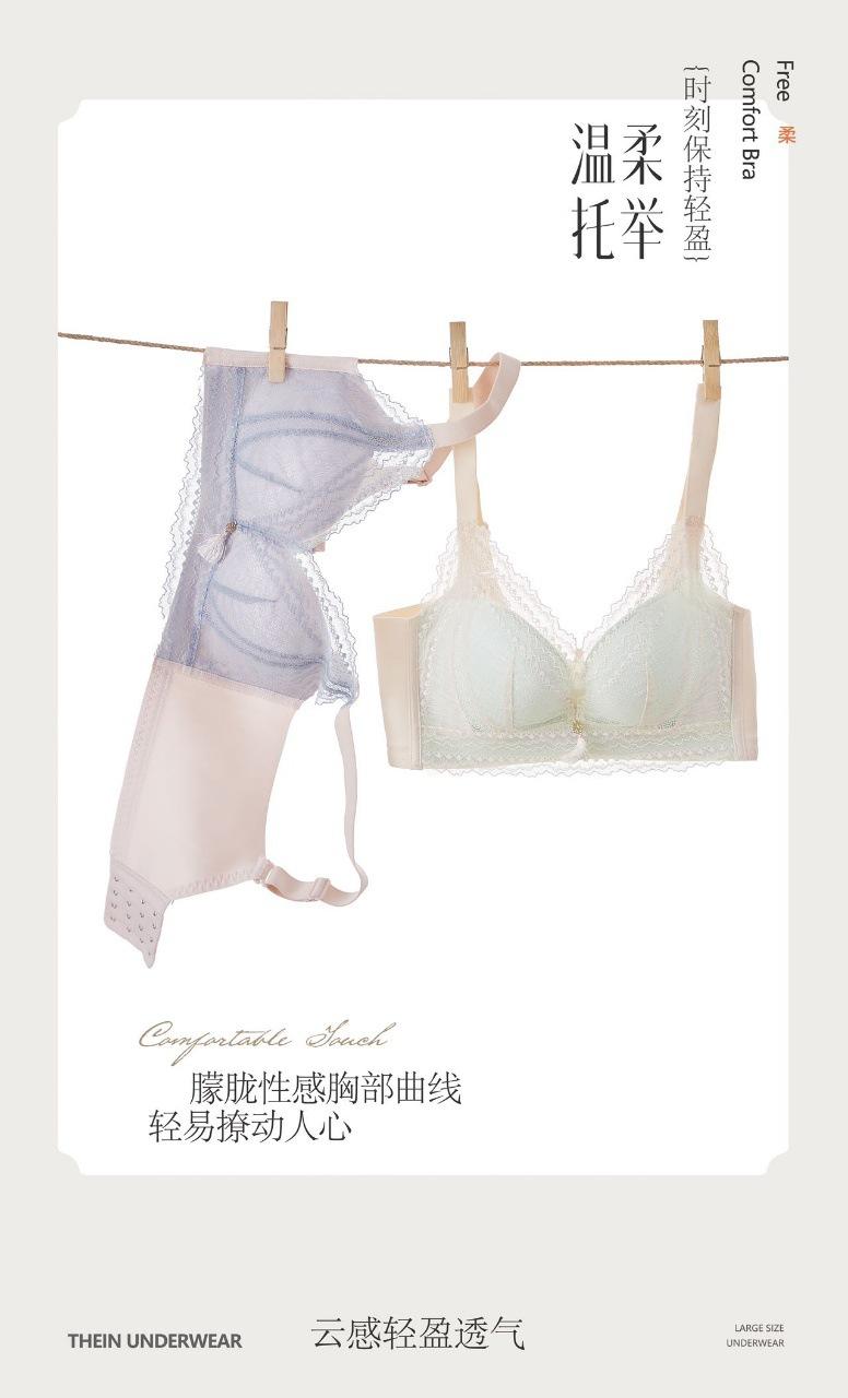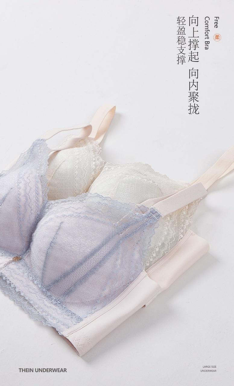 Deseo Puro Ropa Interior de Encaje para Mujer Pecho Pequeño Push-up Show Anticaída Transpirable Tipo Ajustable Sin Aro de Acero Sujetador para Mediana Edad Nuevo