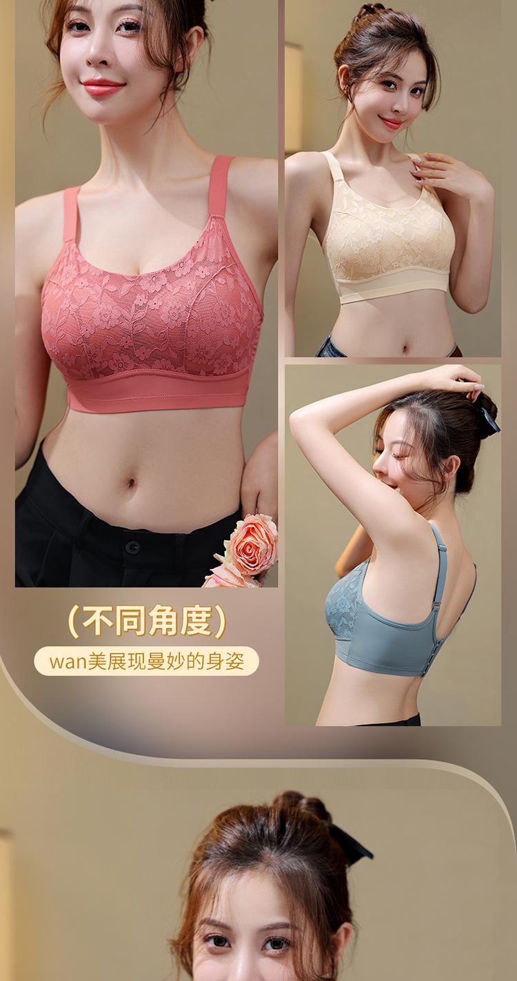 Sujetador de una pieza sin tirantes con encaje y cierre de pecho grande para mujer, ropa interior de verano, fina, push-up, con espalda descubierta y escote pequeño