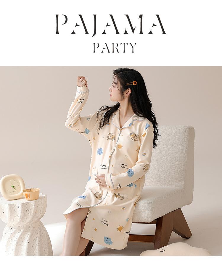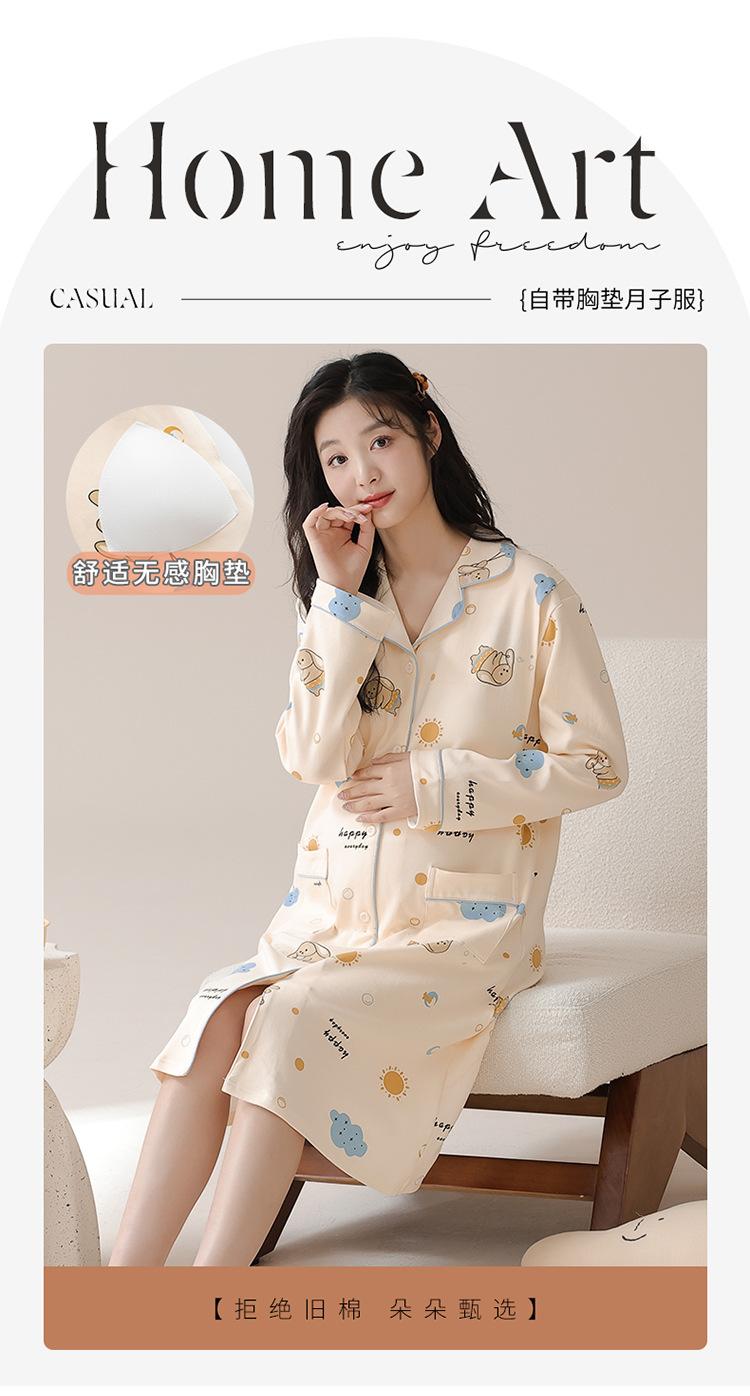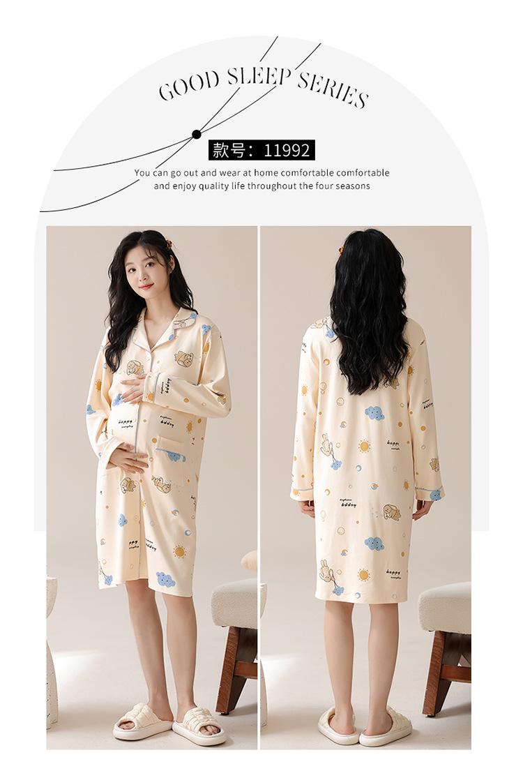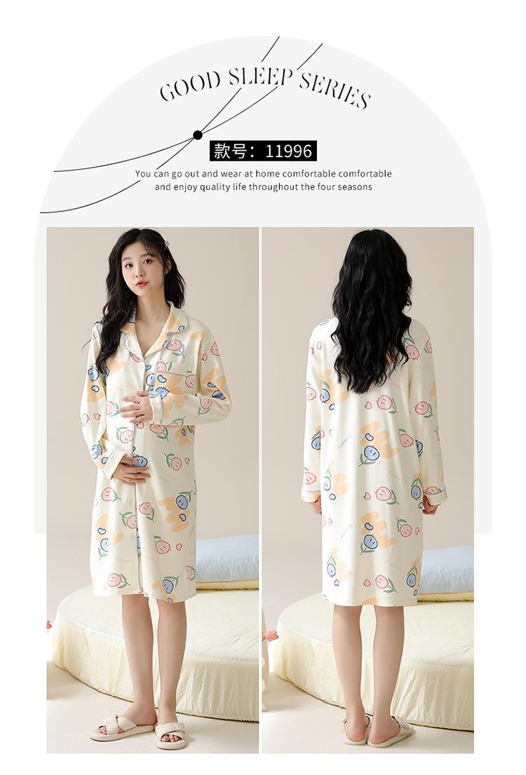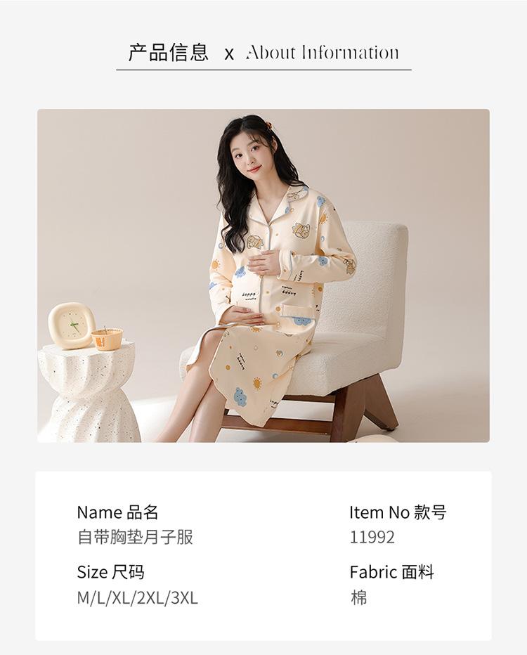 Algodón Imitación Cinturón Almohadilla para el Pecho Camisón para Mujeres Embarazadas Pijama de Lactancia Manga Larga Primavera y Otoño Lactancia Postparto Ropa Mensual de Espera para el Parto en Sala de Partos