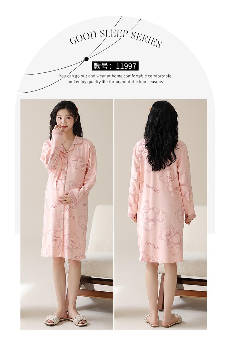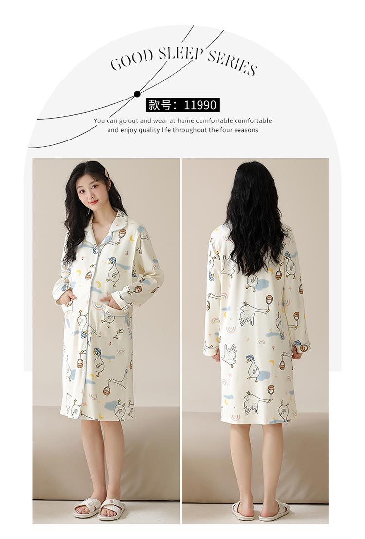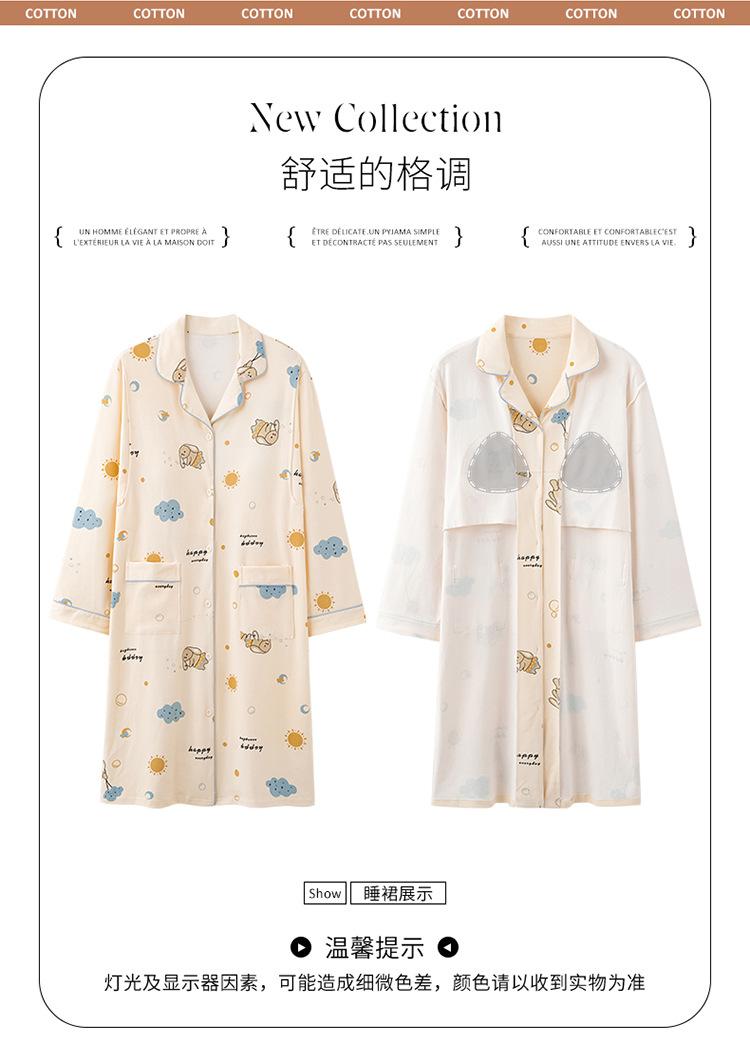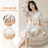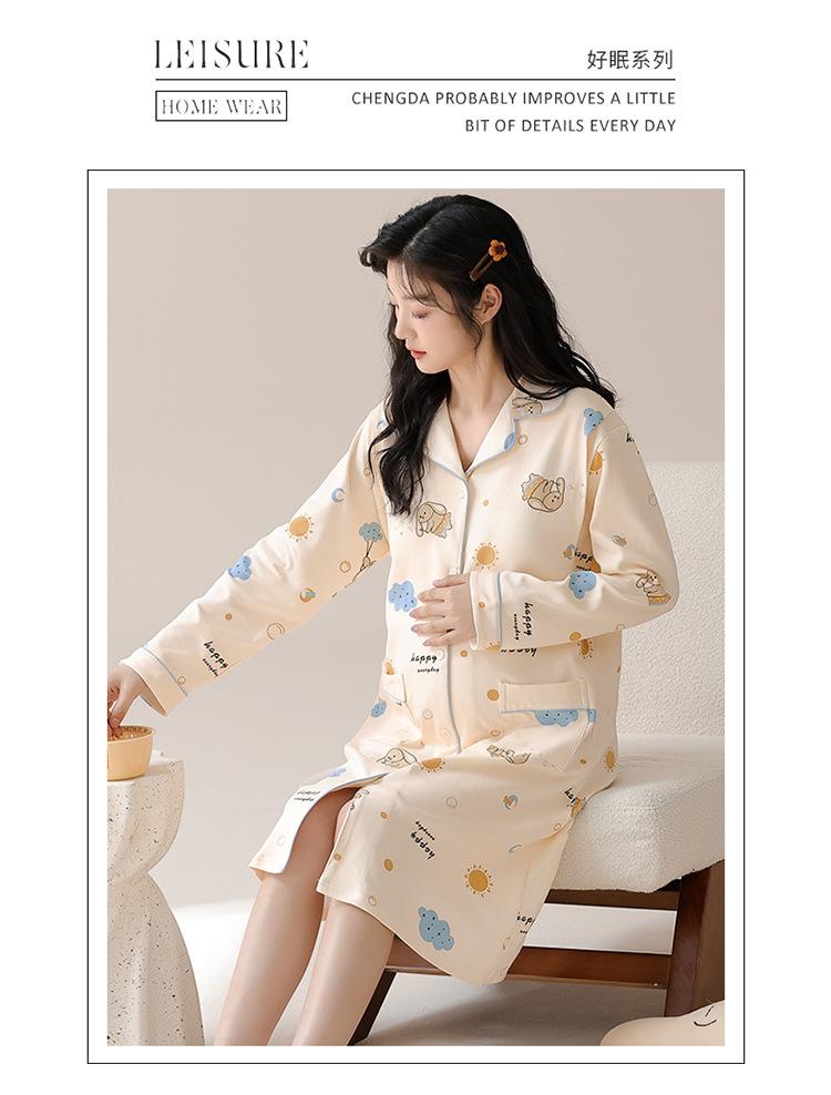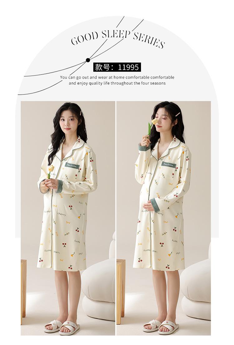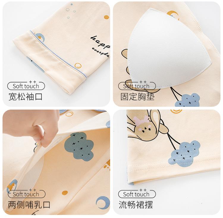 Algodón Imitación Cinturón Almohadilla para el Pecho Camisón para Mujeres Embarazadas Pijama de Lactancia Manga Larga Primavera y Otoño Lactancia Postparto Ropa Mensual de Espera para el Parto en Sala de Partos