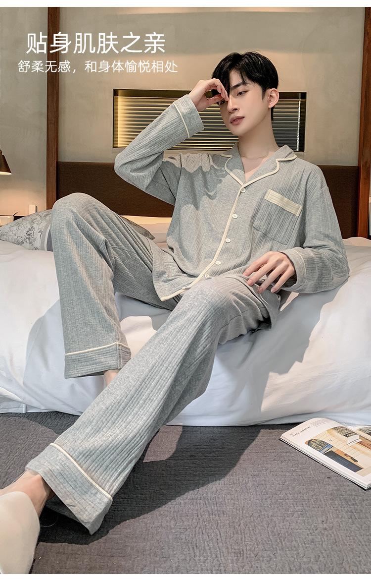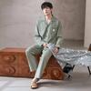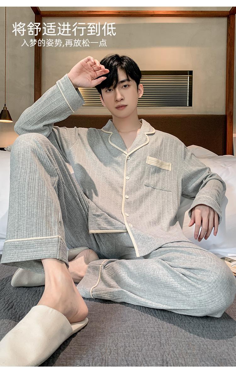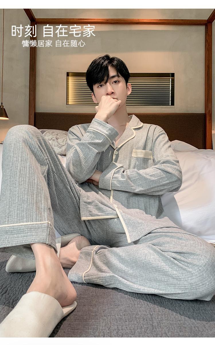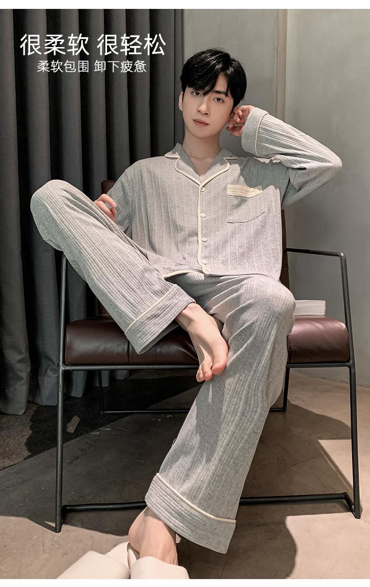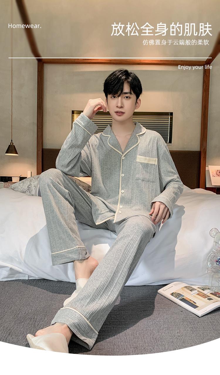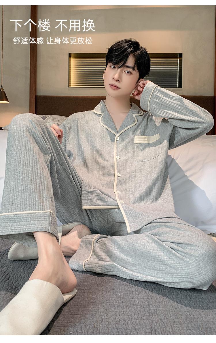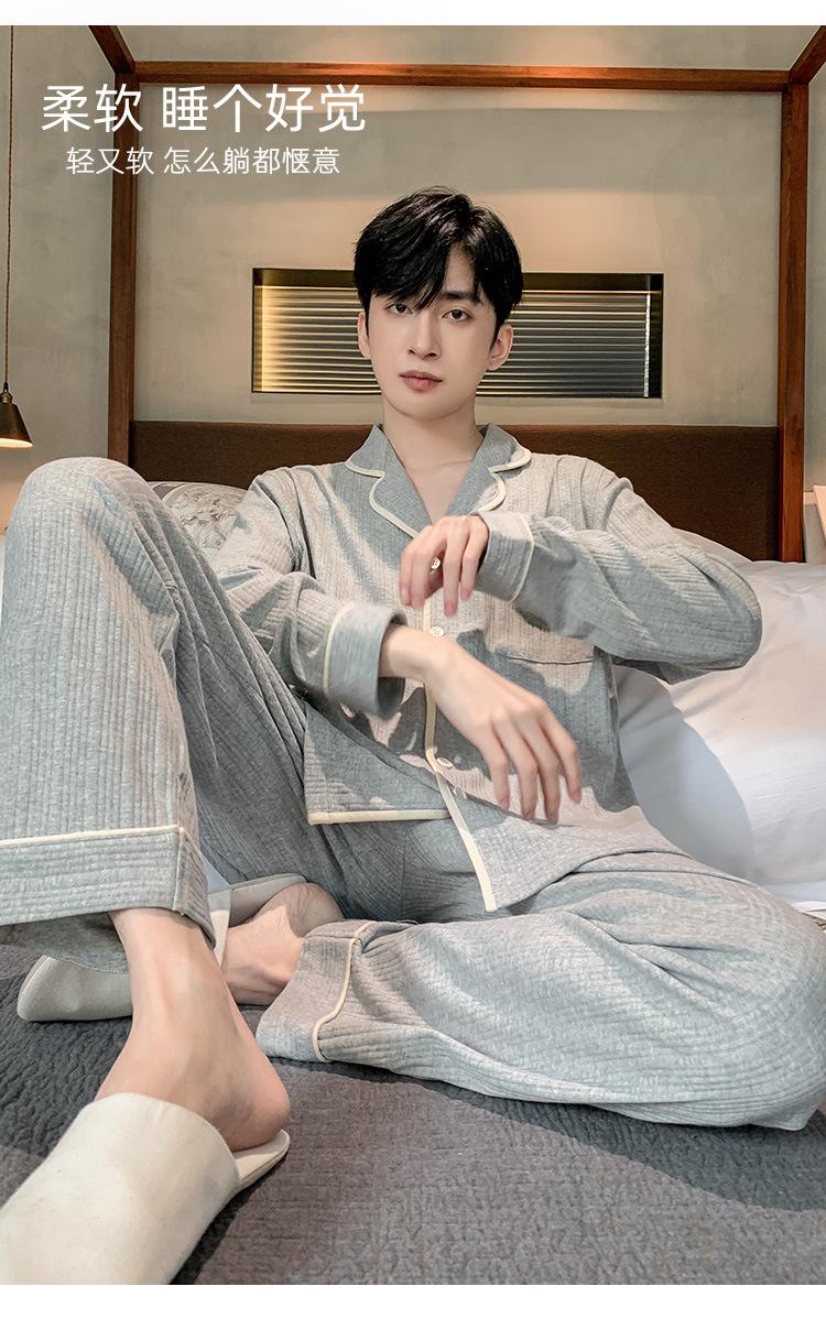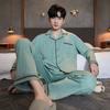 Pijamas de algodón puro de alta calidad para hombre, pantalones de manga larga de primavera y otoño, ropa de abrigo sencilla e informal, ropa holgada de talla grande para el hogar.