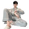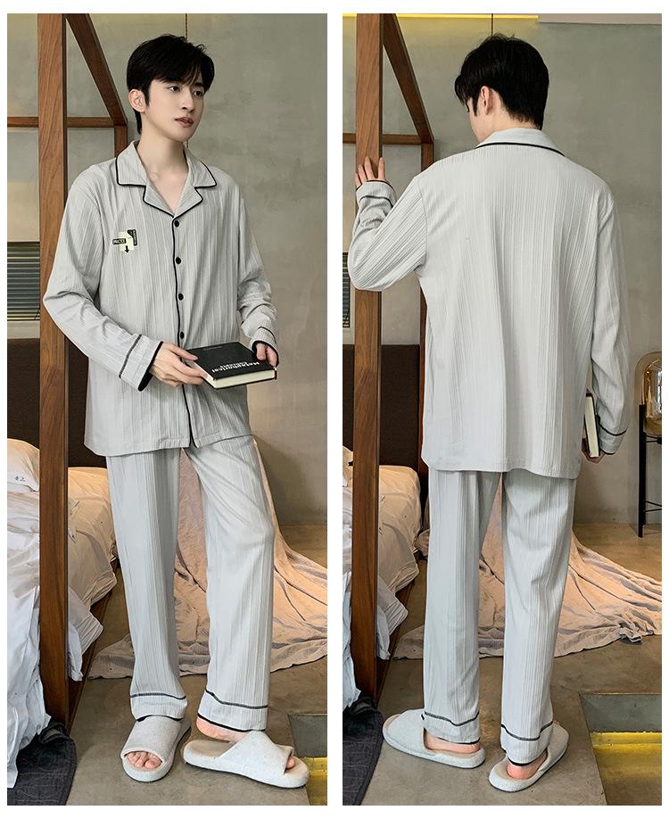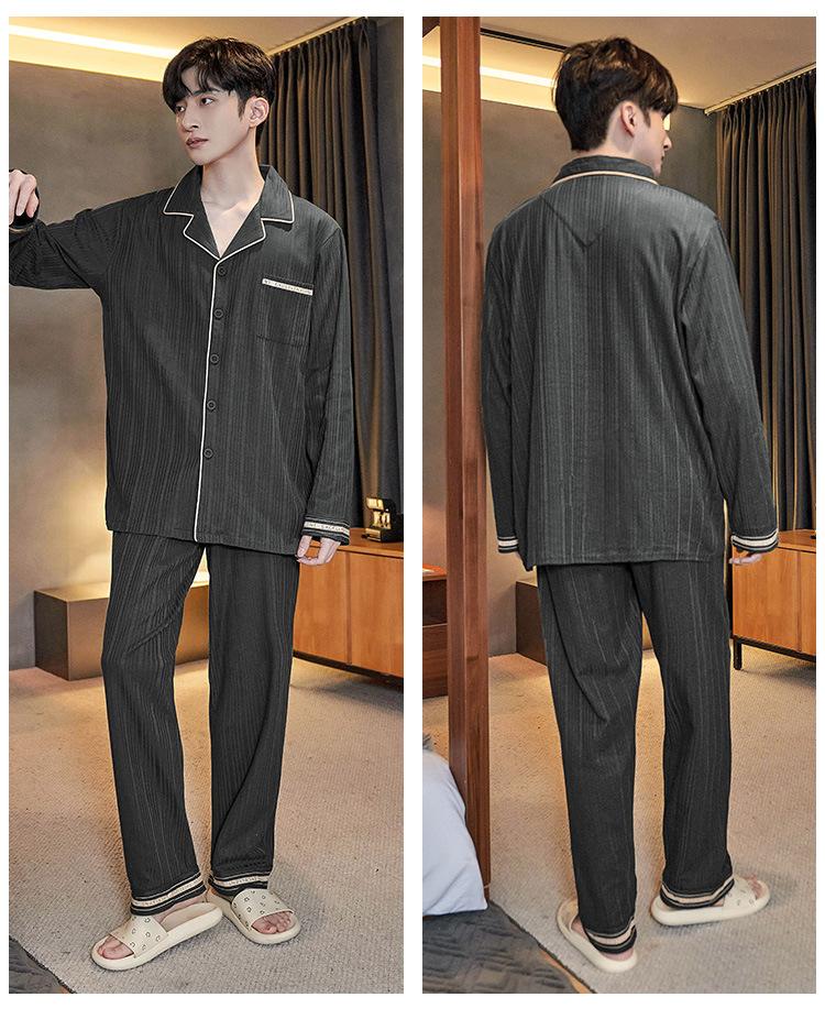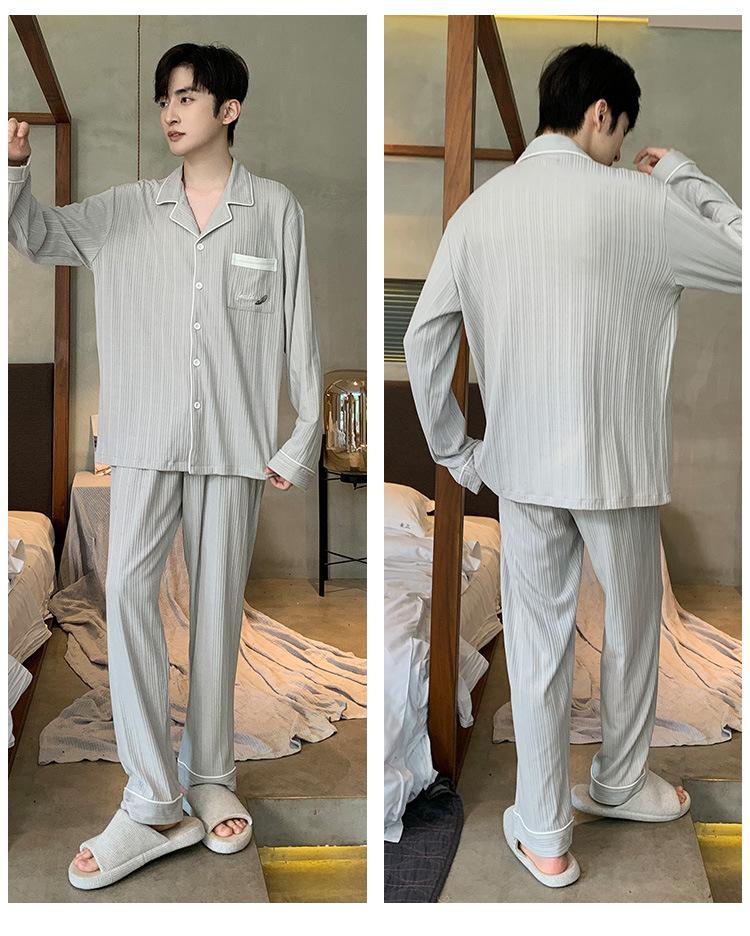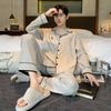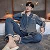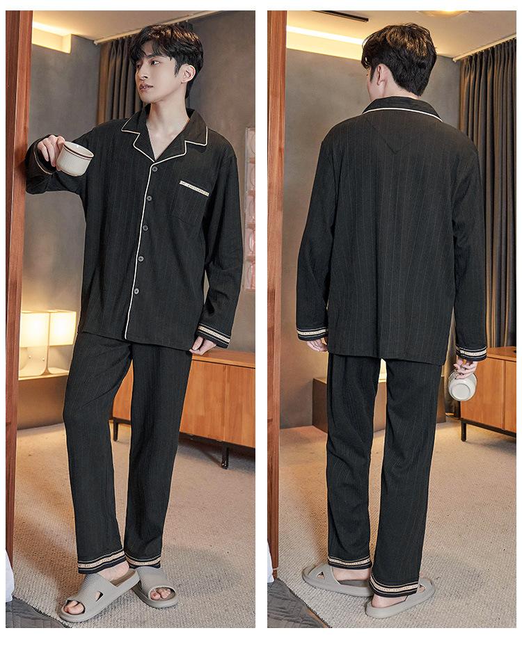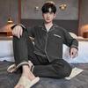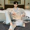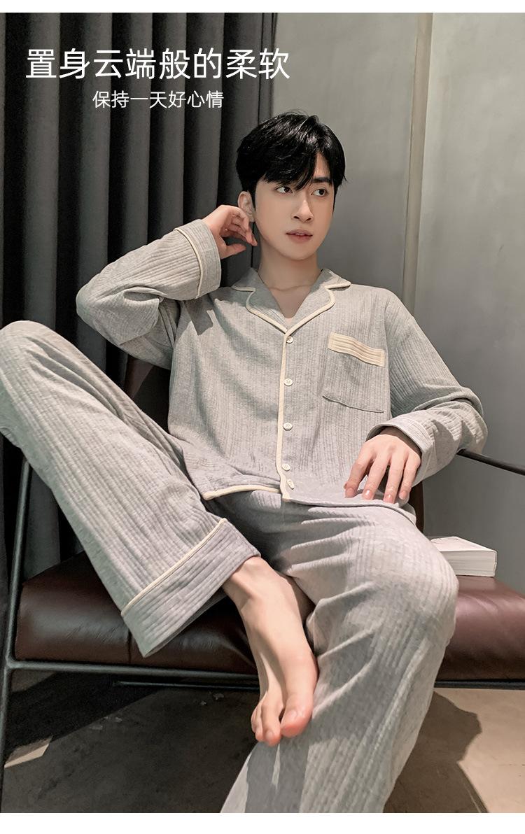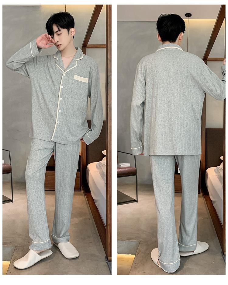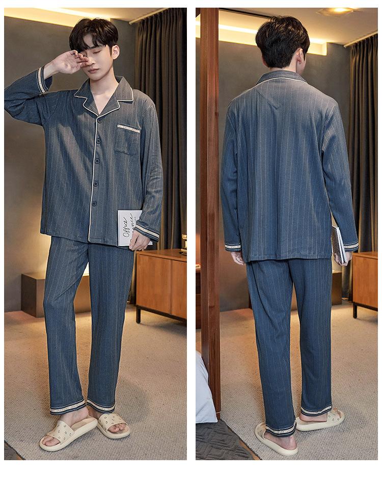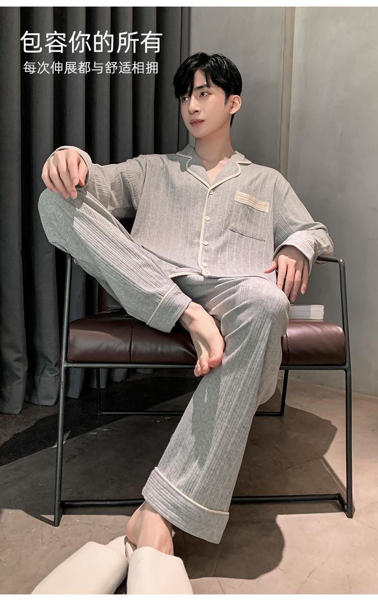 Pijamas de algodón puro de alta calidad para hombre, pantalones de manga larga de primavera y otoño, ropa de abrigo sencilla e informal, ropa holgada de talla grande para el hogar.