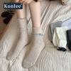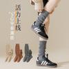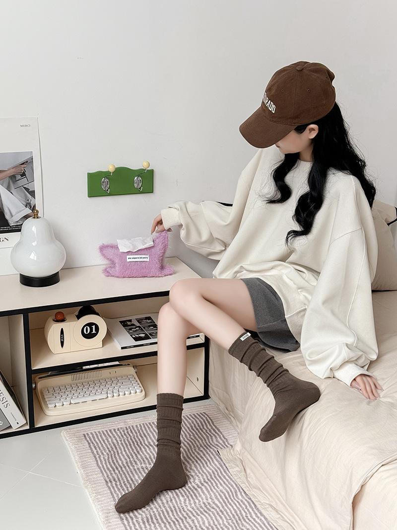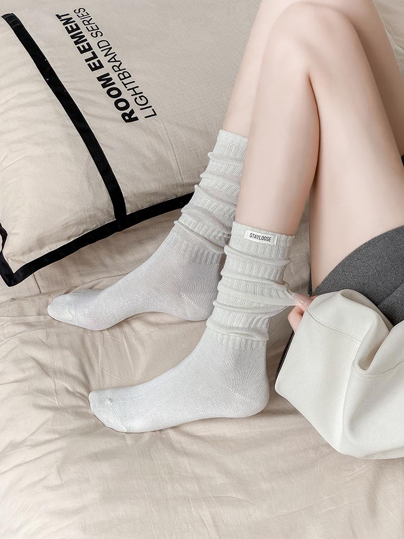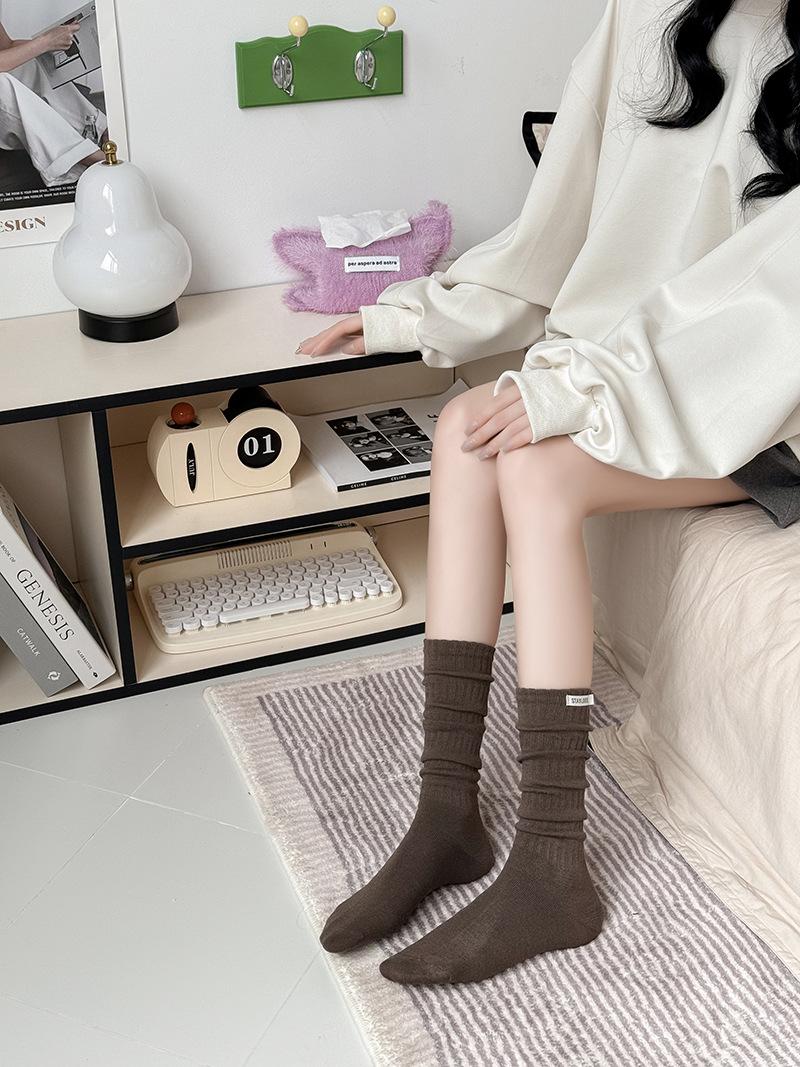 Calcetines Apilados para Mujer Otoño e Invierno Etiqueta de Tela Vintage Media Caña Ins Tendencia Estilo Japonés Look Delgado Zapatos Largos con Zapatos Burkham