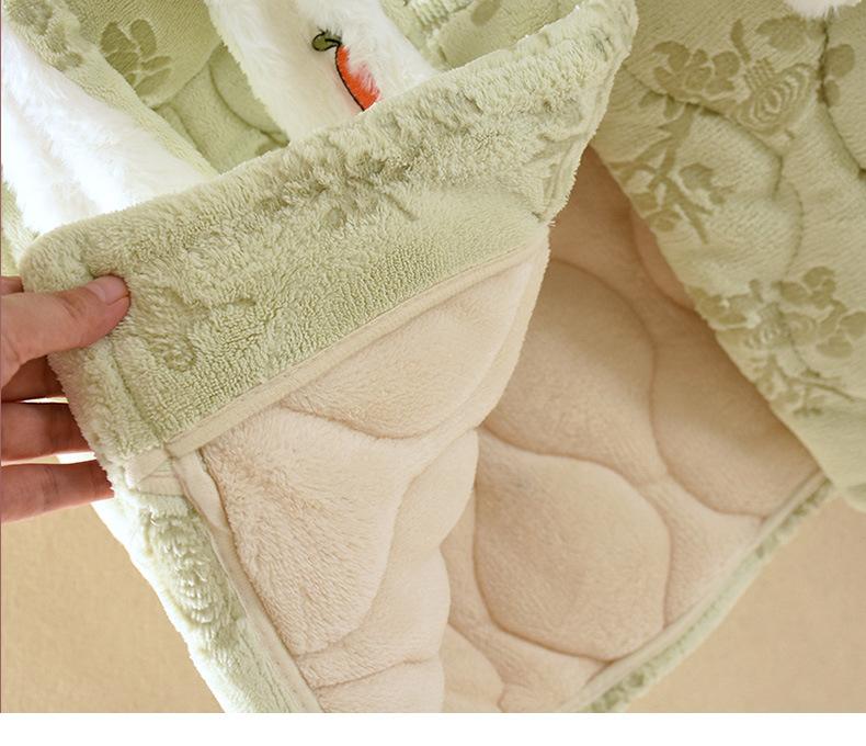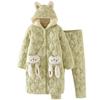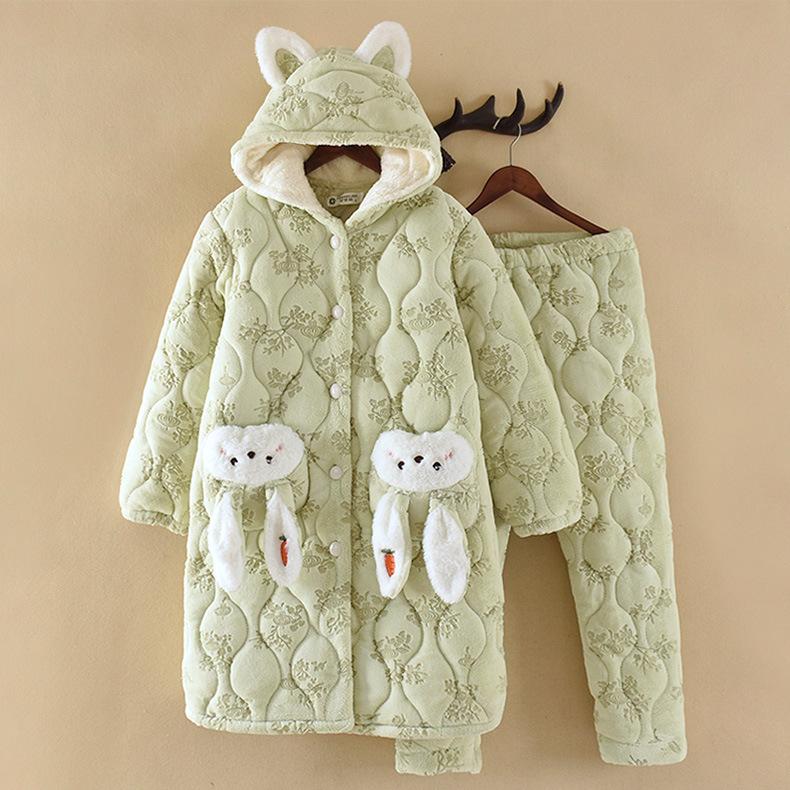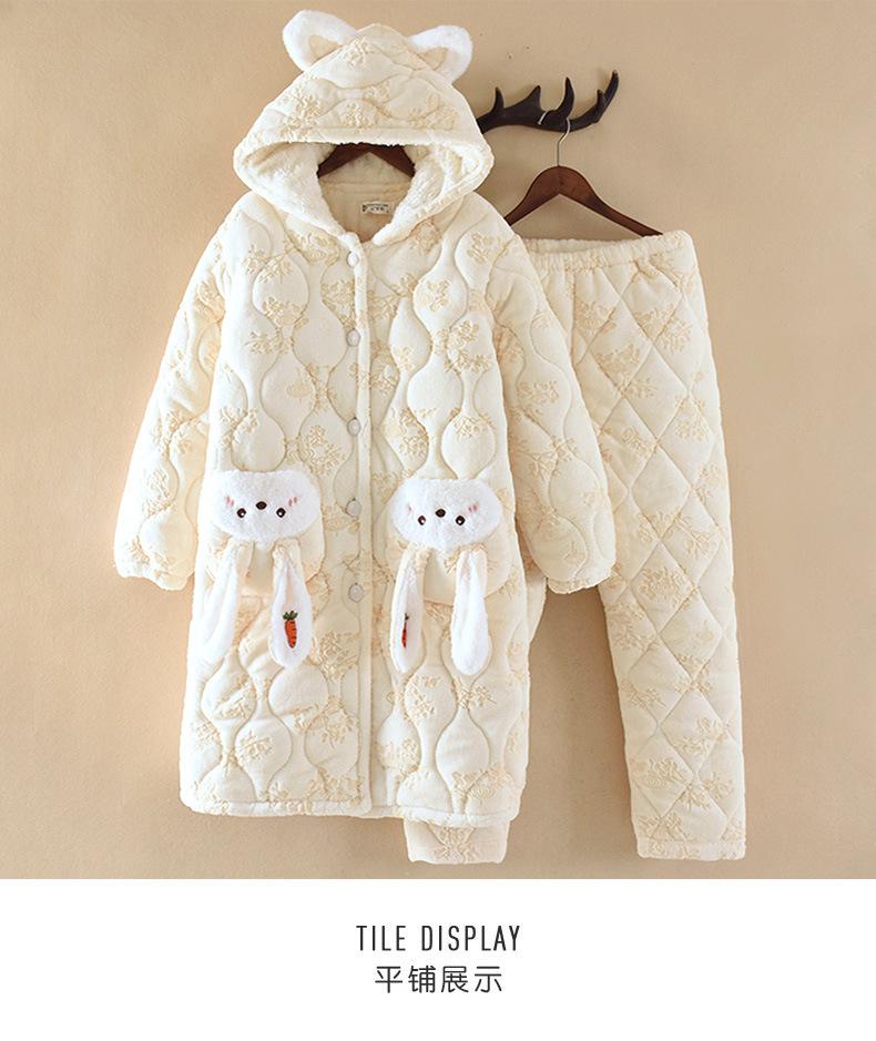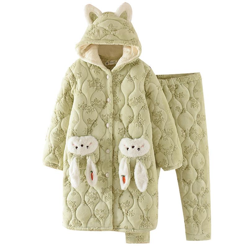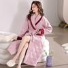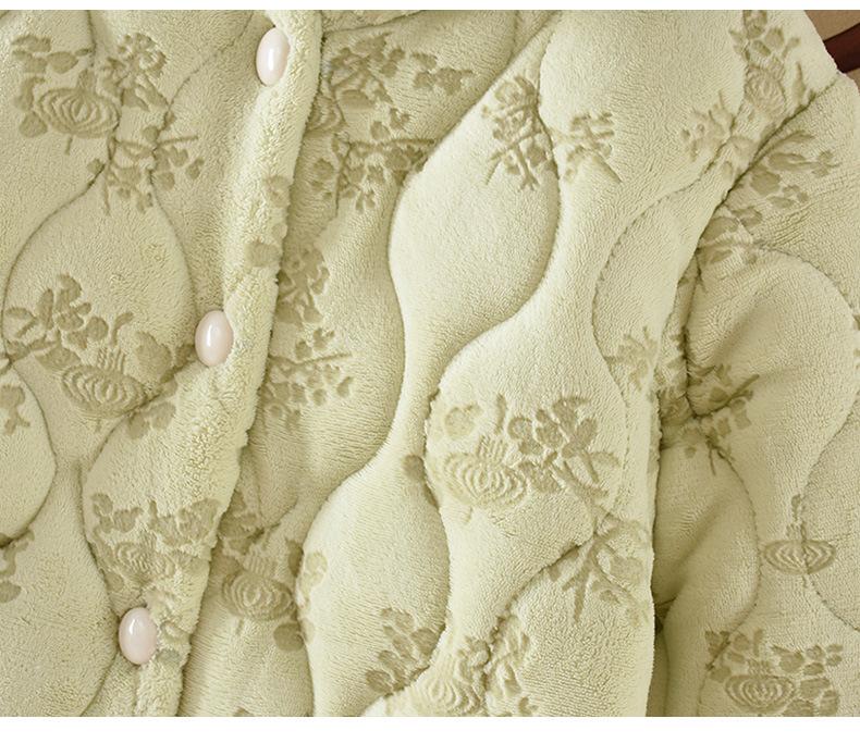 Pijama para Mujer Invierno Tres Capas Forro Polar Coral Acolchado Algodón Calentito Grueso Media Longitud Camisón Ropa para Casa Bata
