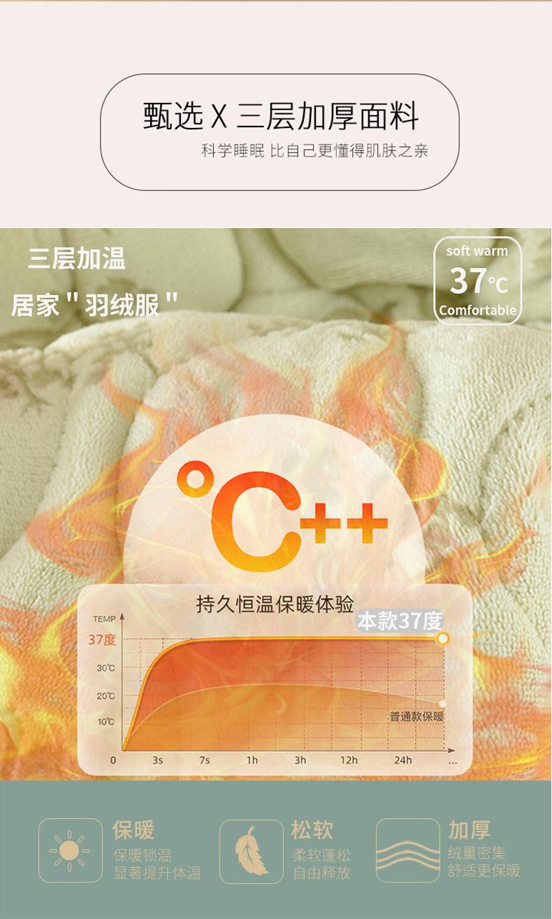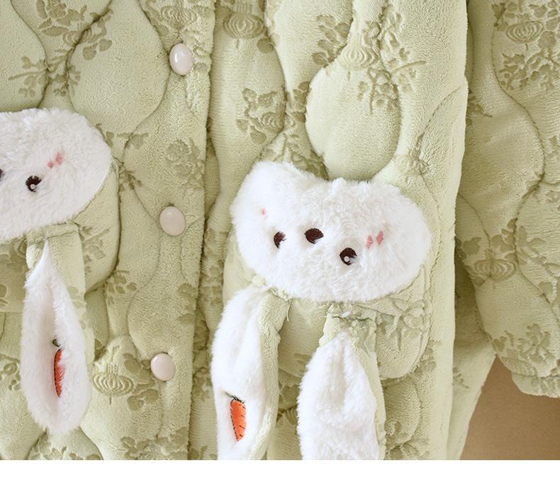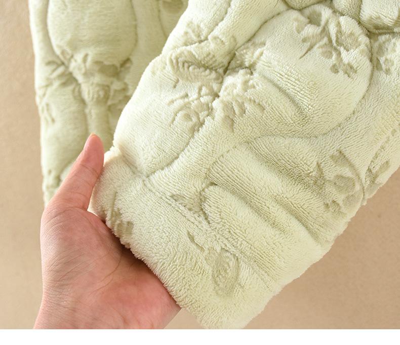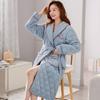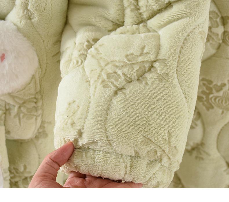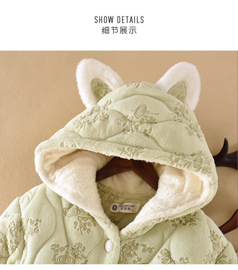 Pijama para Mujer Invierno Tres Capas Forro Polar Coral Acolchado Algodón Calentito Grueso Media Longitud Camisón Ropa para Casa Bata
