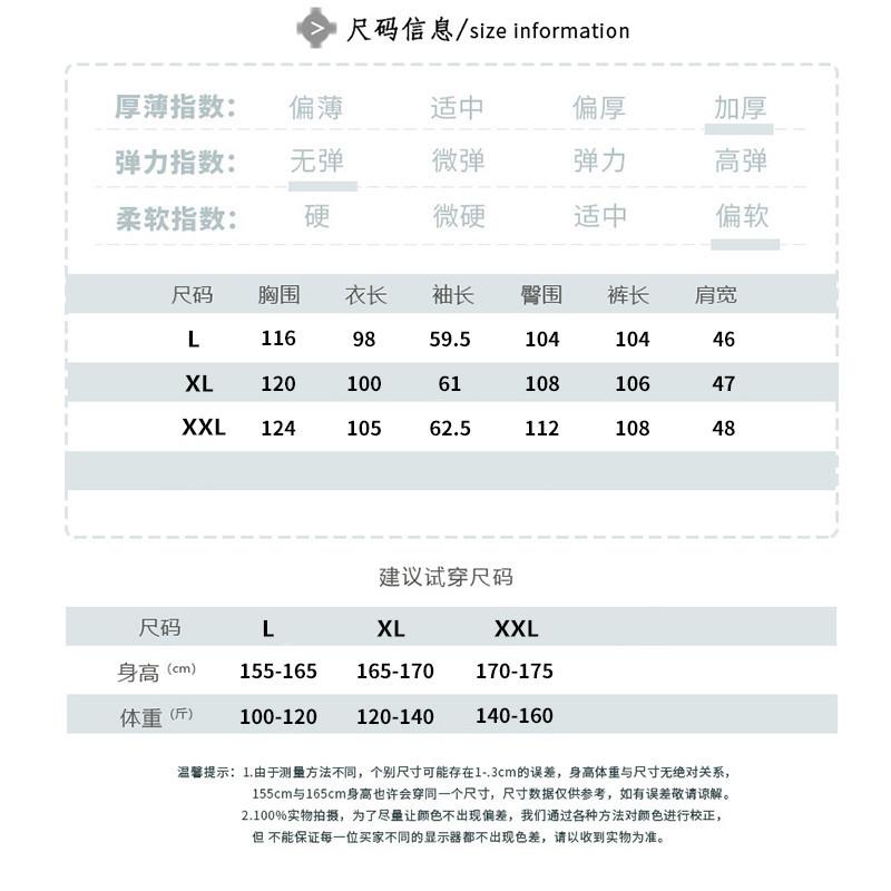 L height 155-165 weight 50-60kg, Xl height 165-170 weight 60-70kg, Xxl height 170-175 weight 70-80kg