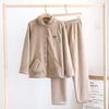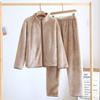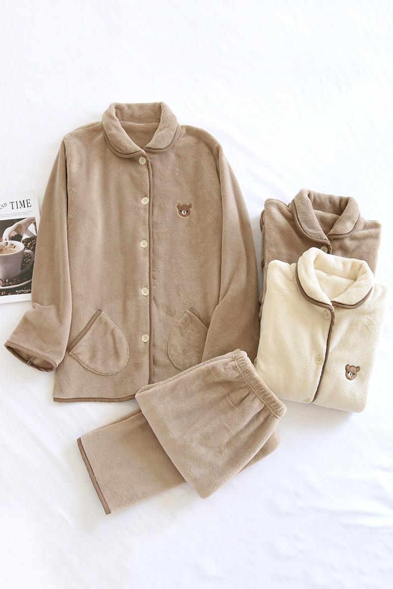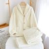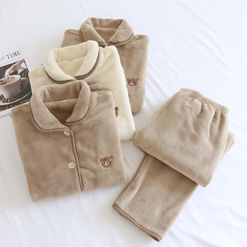 Pijamas de Vellón Coral para Mujer y Hombre, Conjunto para Pareja de Otoño e Invierno, Ropa de Descanso Casual Gruesa y Cálida de Estilo Japonés