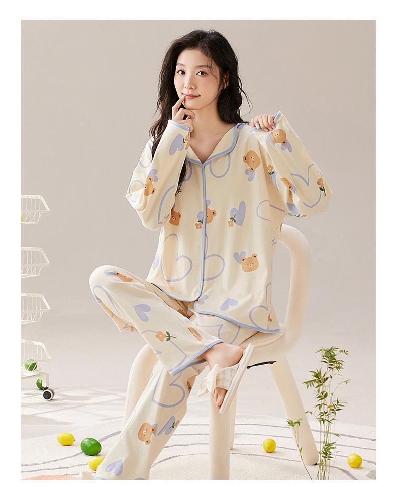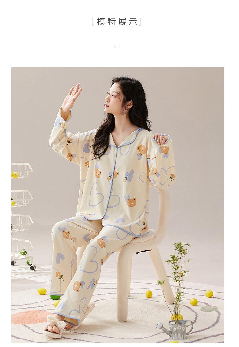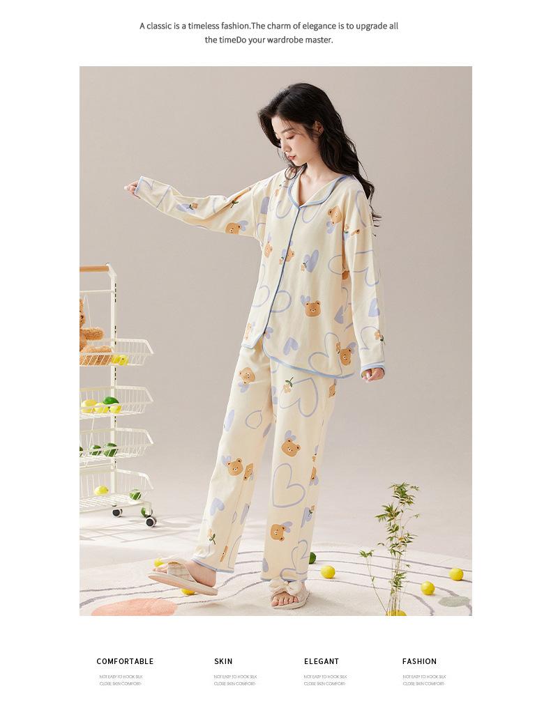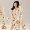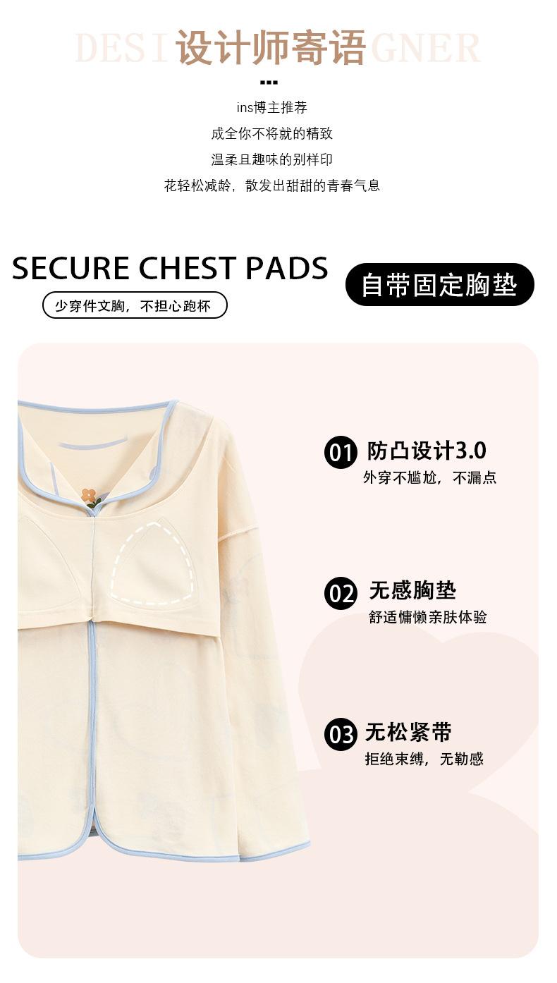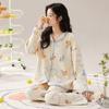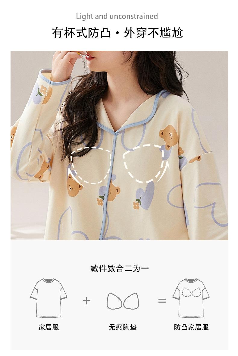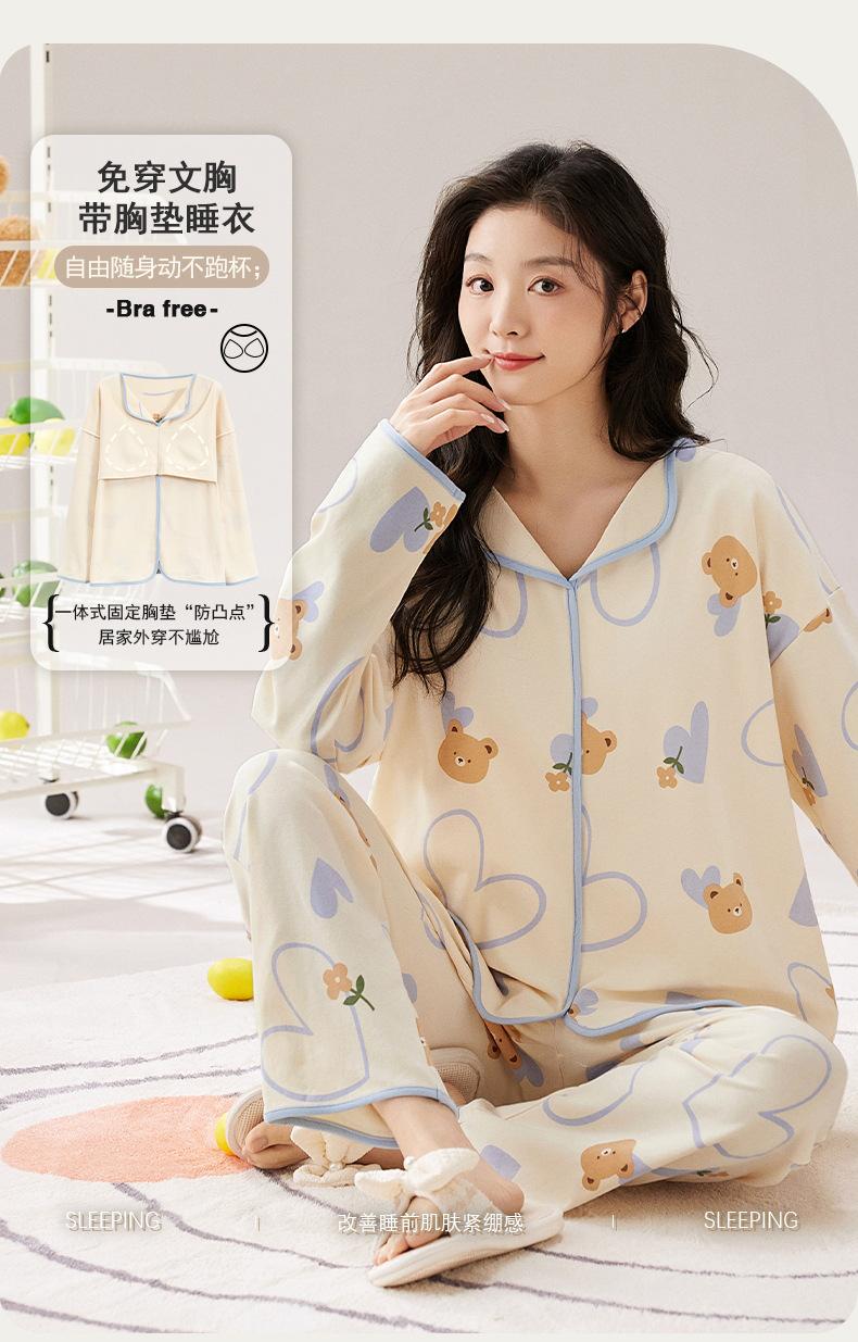 Pijamas de mujer de primavera y otoño 6535, ropa informal de manga larga para el hogar, traje juvenil de otoño, cárdigan con tirantes finos y almohadilla para el pecho.