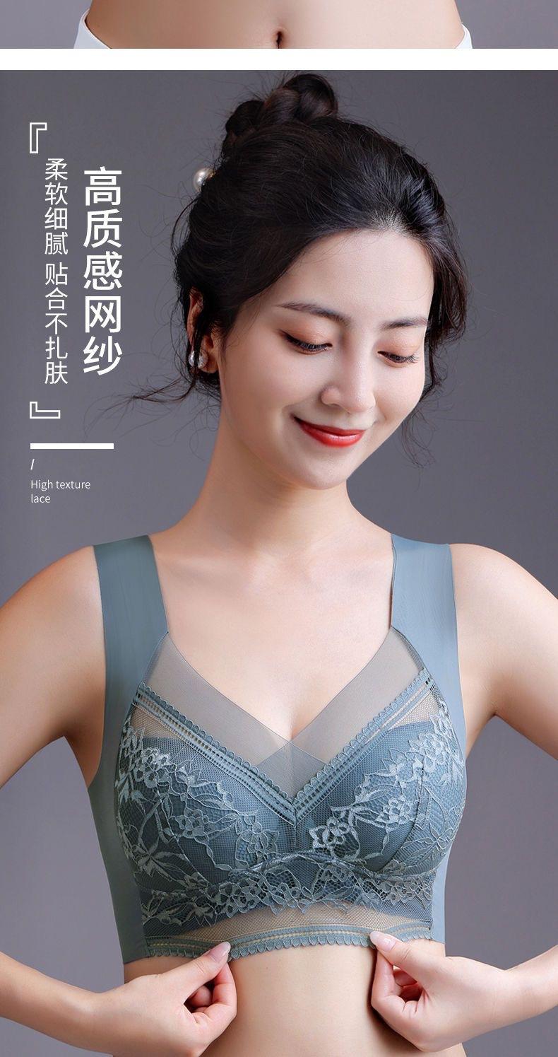 Encaje Sin Costuras Pecho Grande Mostrando Pequeño Sujetador Push-up Soporte Superior para Mujer Anticaída Hermosa Espalda Ropa Interior Transpirable