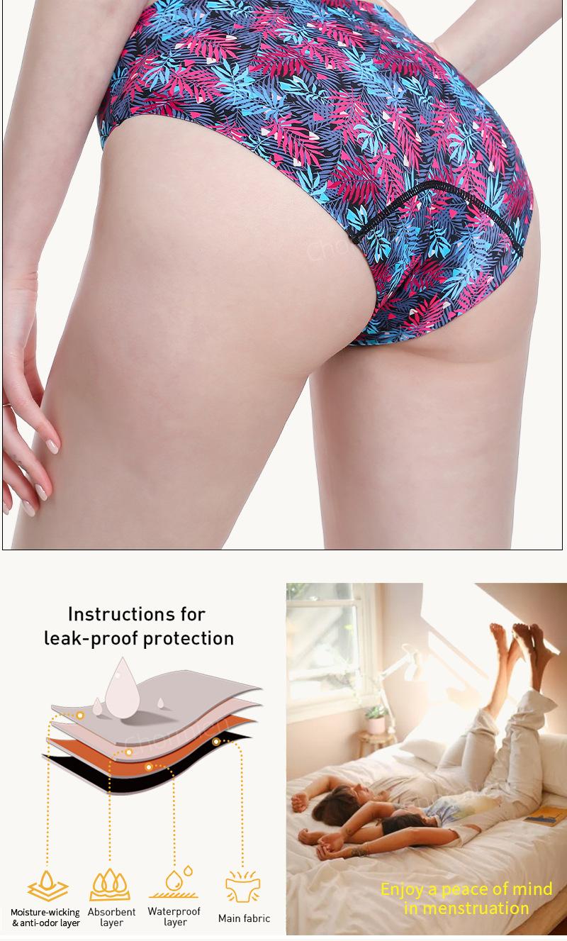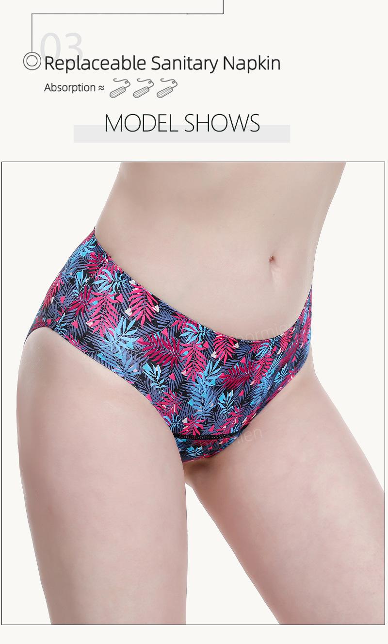 Traje de Baño Tipo Bóxer sin Costuras Transfronterizo Ropa Interior Fisiológica para Mujer Toalla Sanitaria Impresa de Cuatro Capas a Prueba de Fugas Menstrual Menstrual Pantalones Fisiológicos para Mujer
