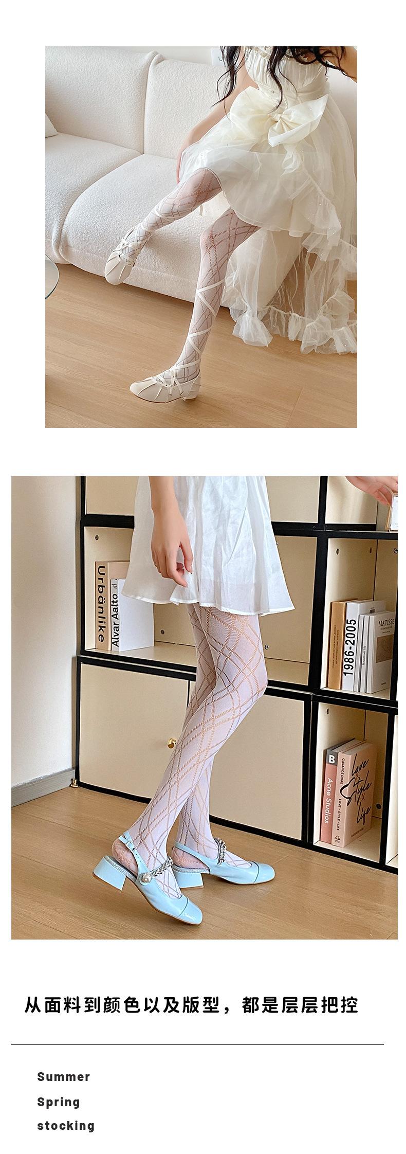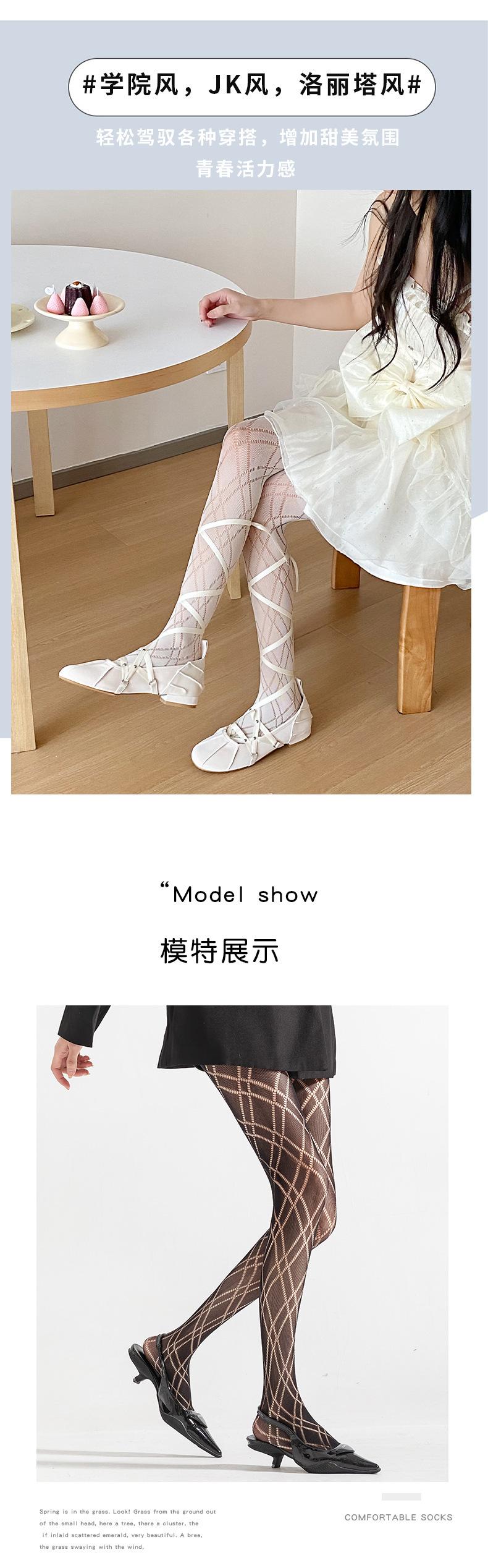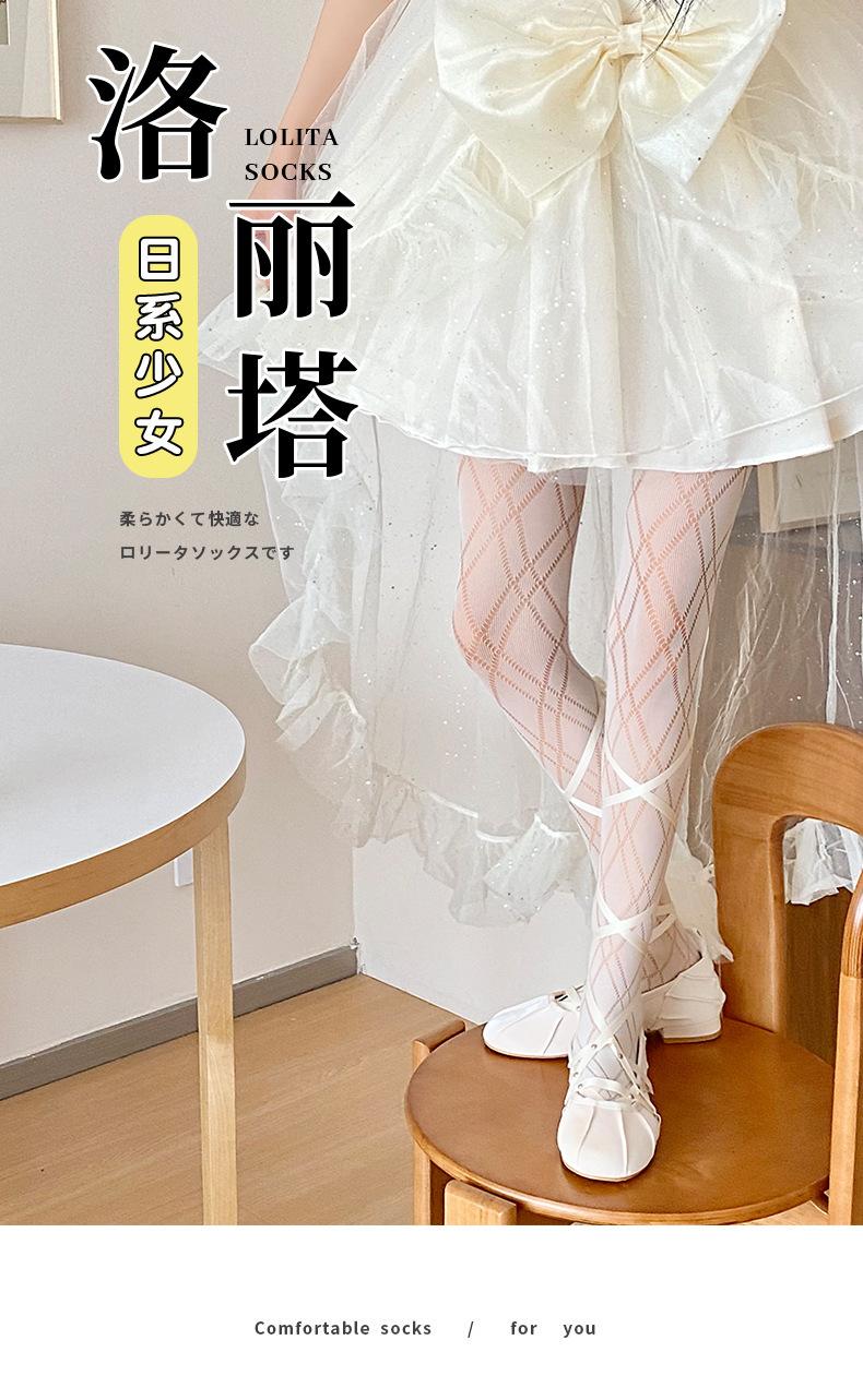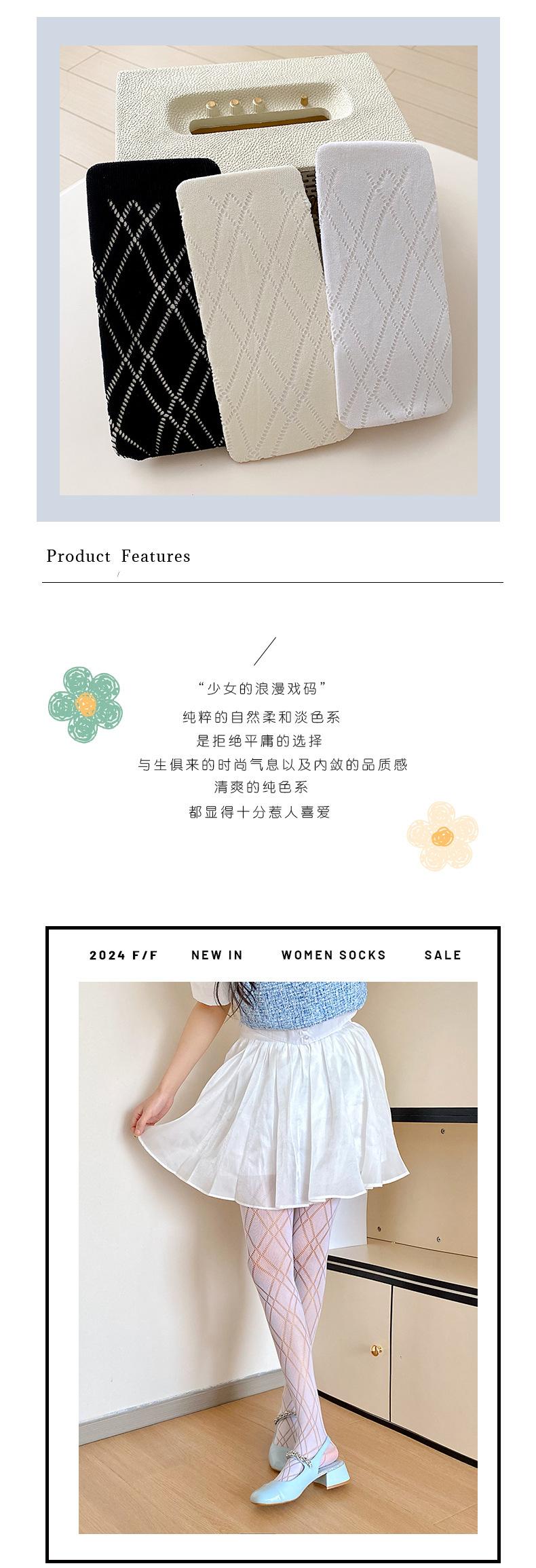 Medias de rejilla blancas con forma de diamante, pantimedias finas de seda negra para mujer, pantimedias Lolita de viento puro, hermosas medias de rejilla para la parte inferior de las piernas