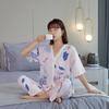 Pijamas de seda de algodón para mujer, primavera y otoño, pantalones de manga corta, traje de verano, finos, Internet, populares, talla grande, alta gama, ropa para el hogar, venta al por mayor