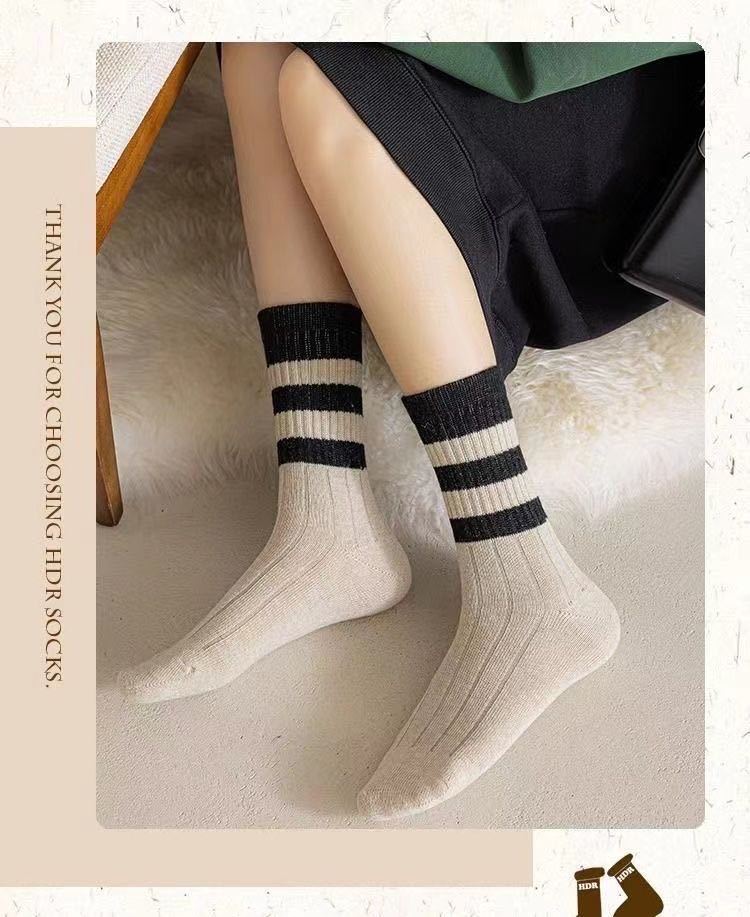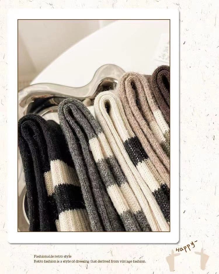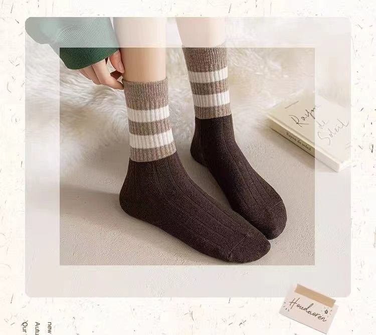 Calcetines de mujer Otoño e Invierno Medias de longitud media Medias apiladas Primavera y otoño Rayas marrones Internet Celebrado Medias sin hueso