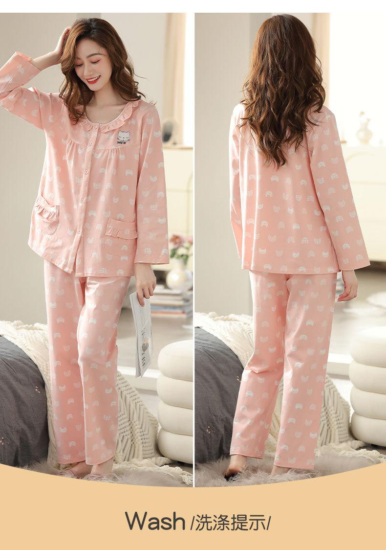 Pijamas de algodón para mujer, cárdigan holgado de manga larga, ropa de casa sencilla de talla grande, traje informal, primavera y otoño