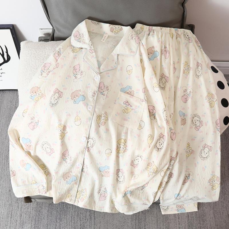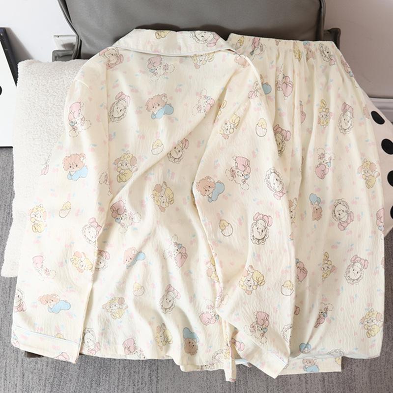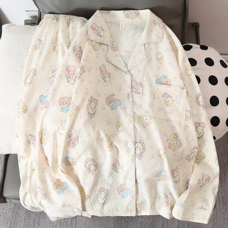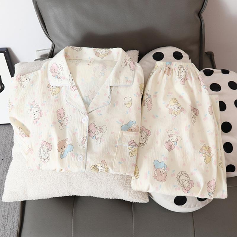 Pijama de algodón de manga larga con diseño de nube para niña, ropa de dormir bonita con dibujos animados, para el hogar, 2024