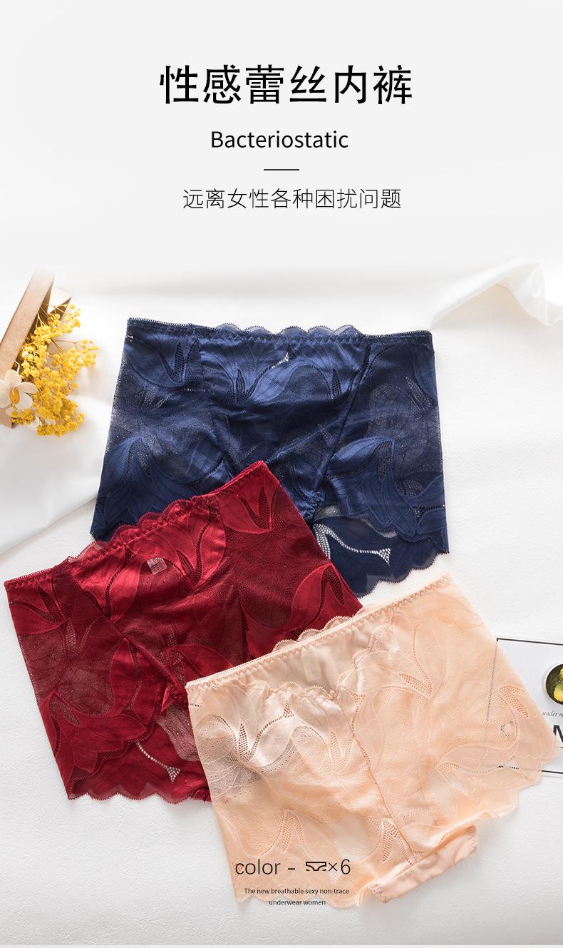 Nuevas Braguitas Sexy de Encaje de Cintura Alta para Mujer, Braguitas Huecas de Encaje, Transpirables, Braguitas de Algodón Puro sin Marcas