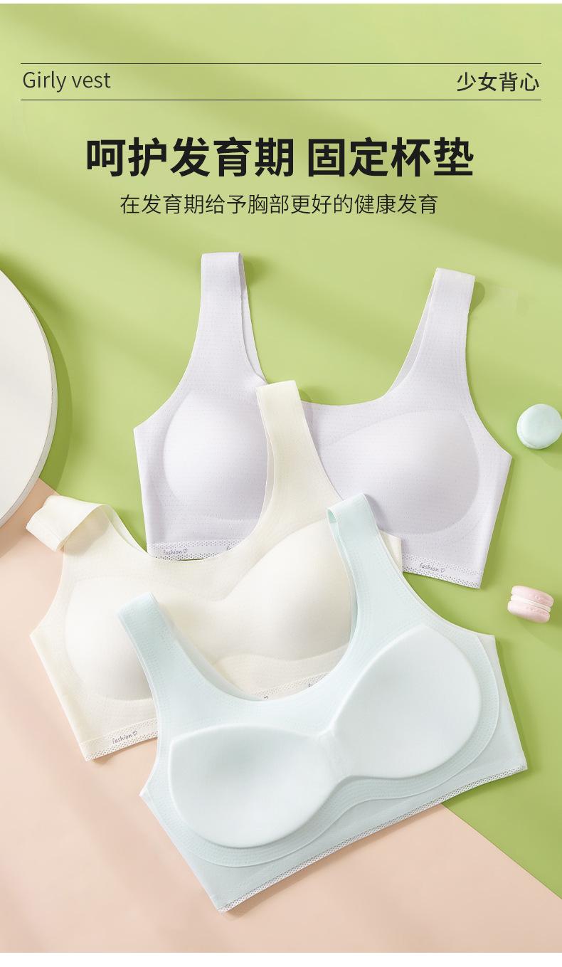 Ropa interior de desarrollo para niñas, estudiantes de secundaria, de 8 a 18 años, sin costuras, con espalda descubierta, transpirable, cómoda y con copa fija.