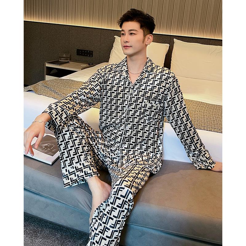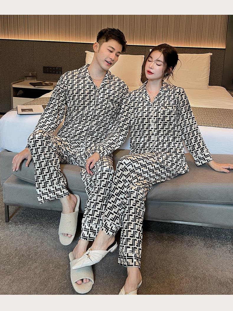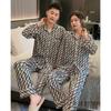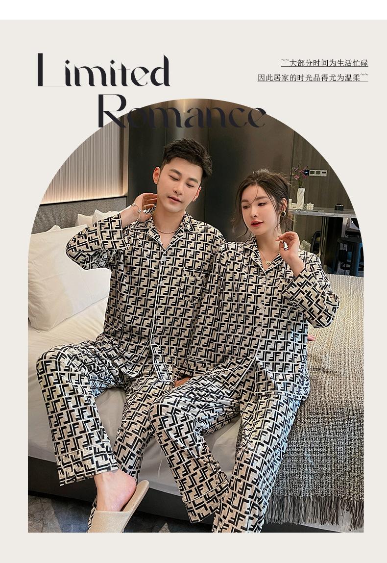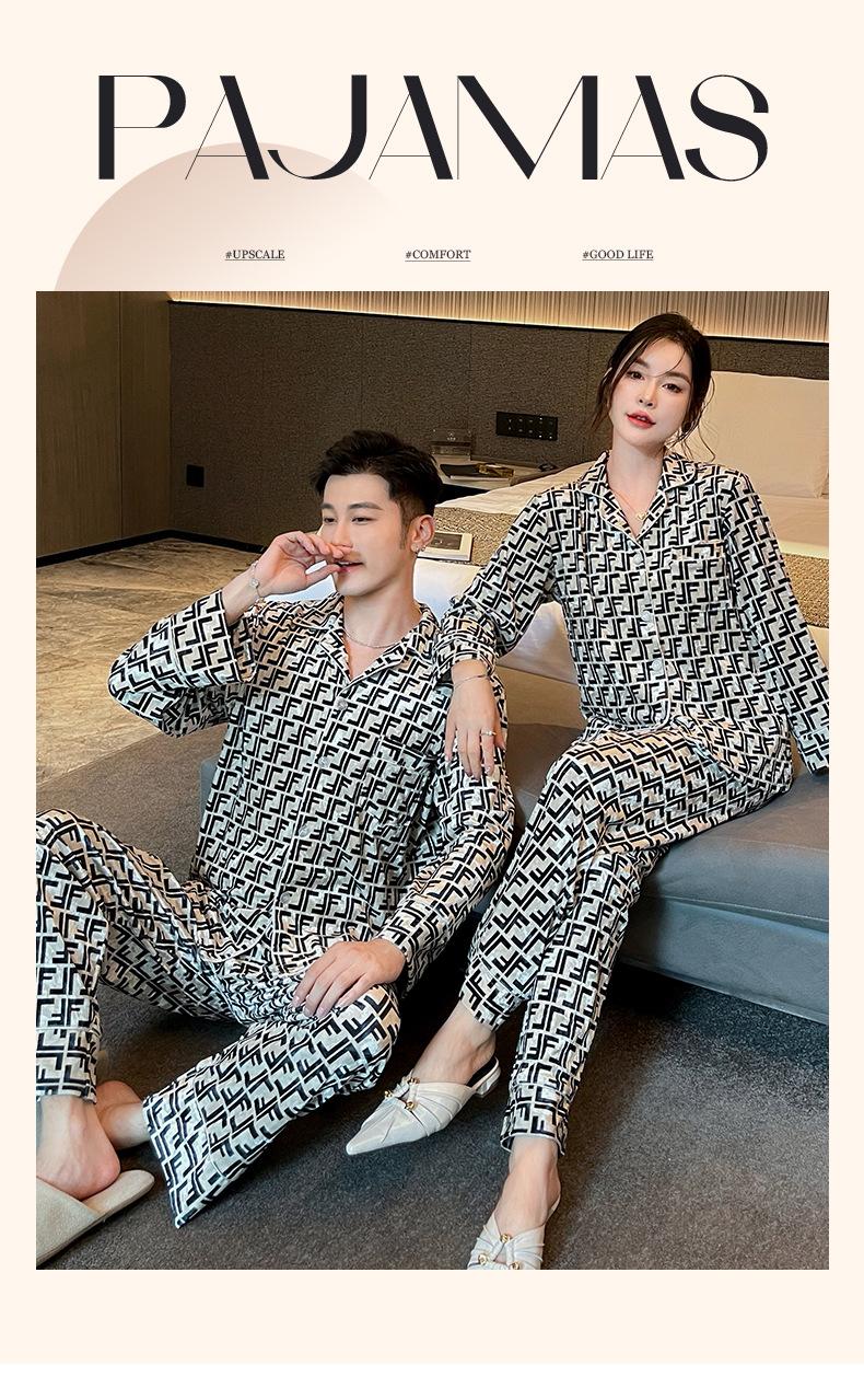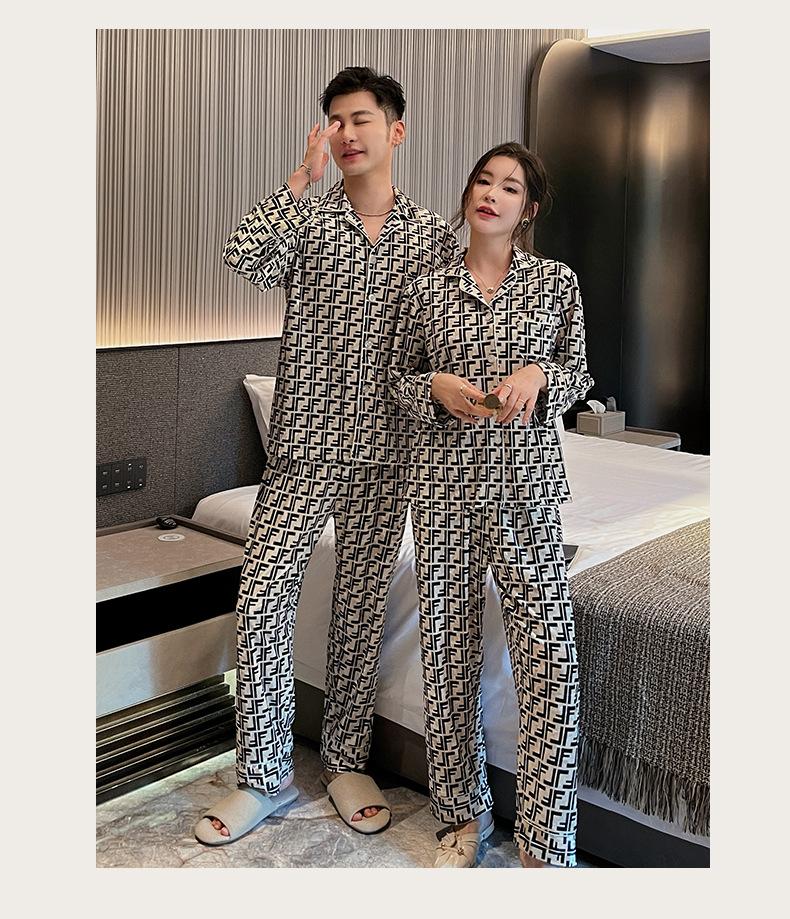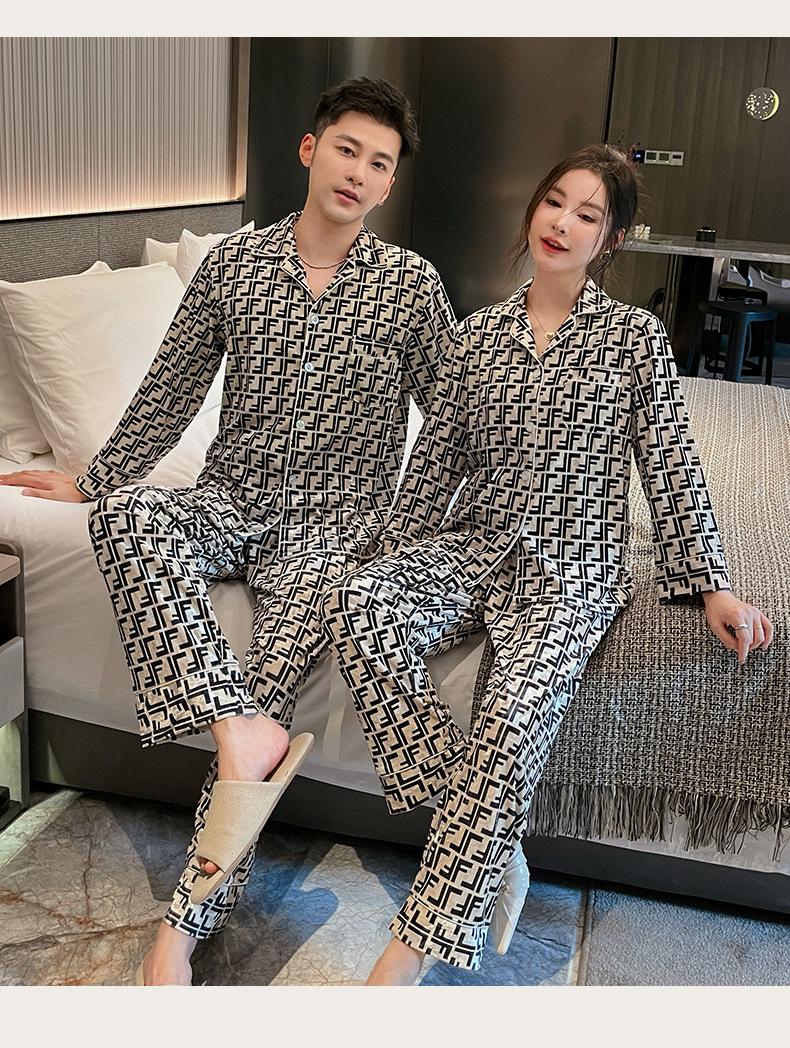 Pijamas de pareja de terciopelo dorado de lujo con estampado de letras de moda para otoño e invierno, ropa cómoda y cálida de manga larga para el hogar