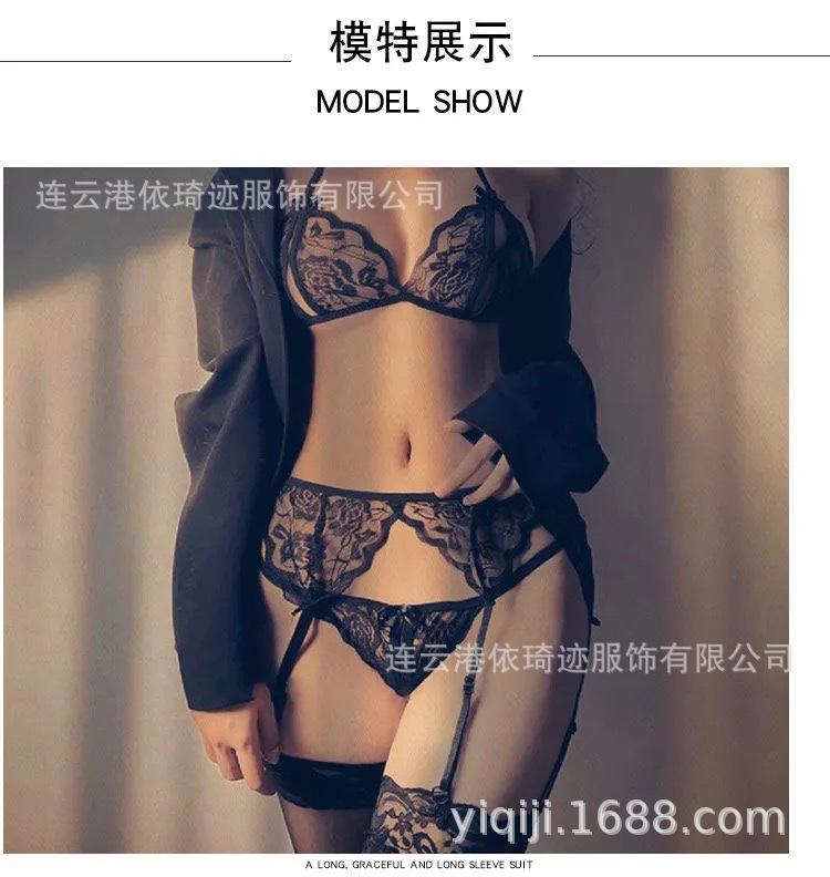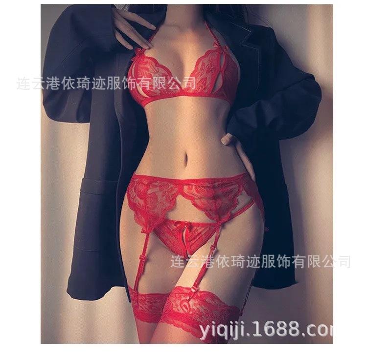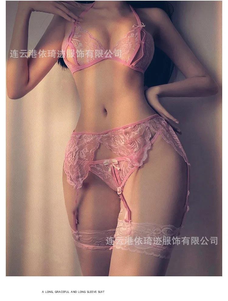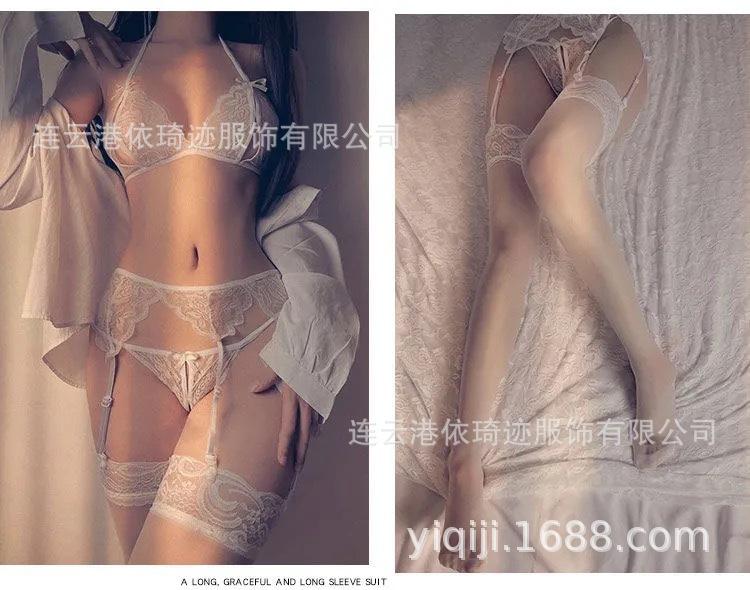 Pijama sexy de encaje, lencería erótica para adultos europea y americana, ropa transparente, uniforme sexy para damas de comercio exterior, tentación, entrega de una pieza