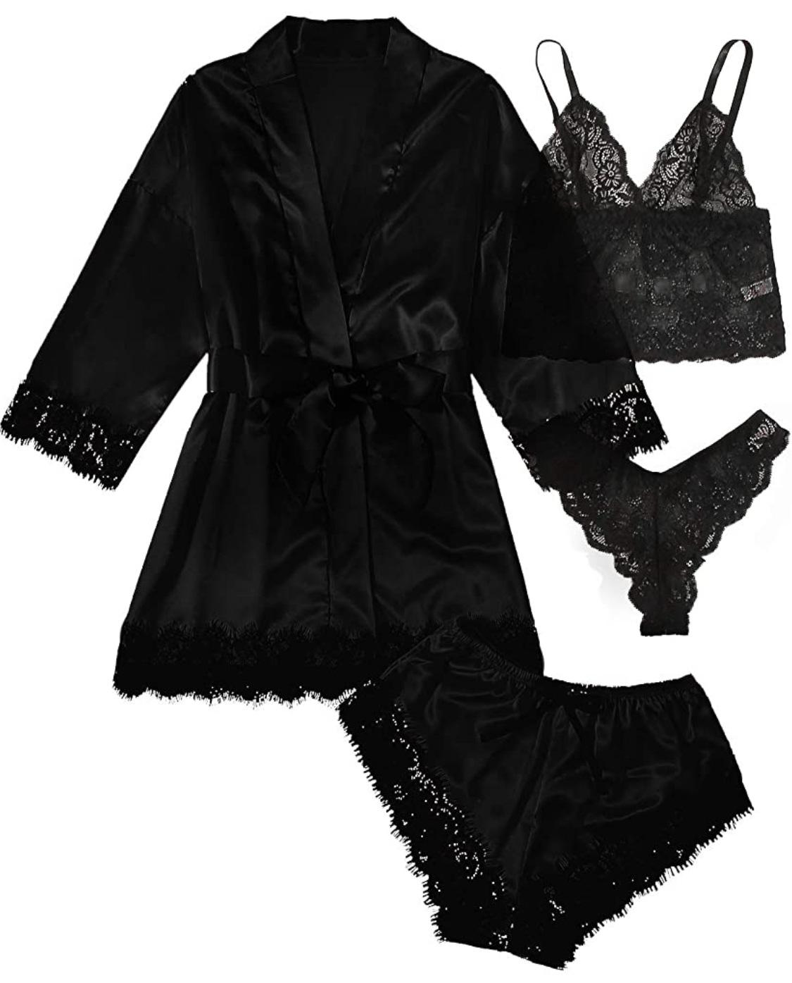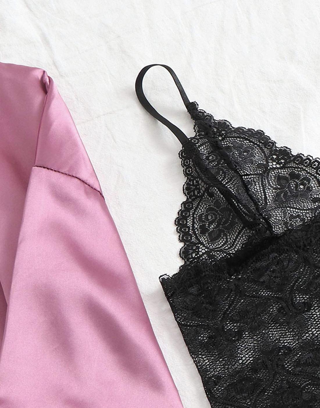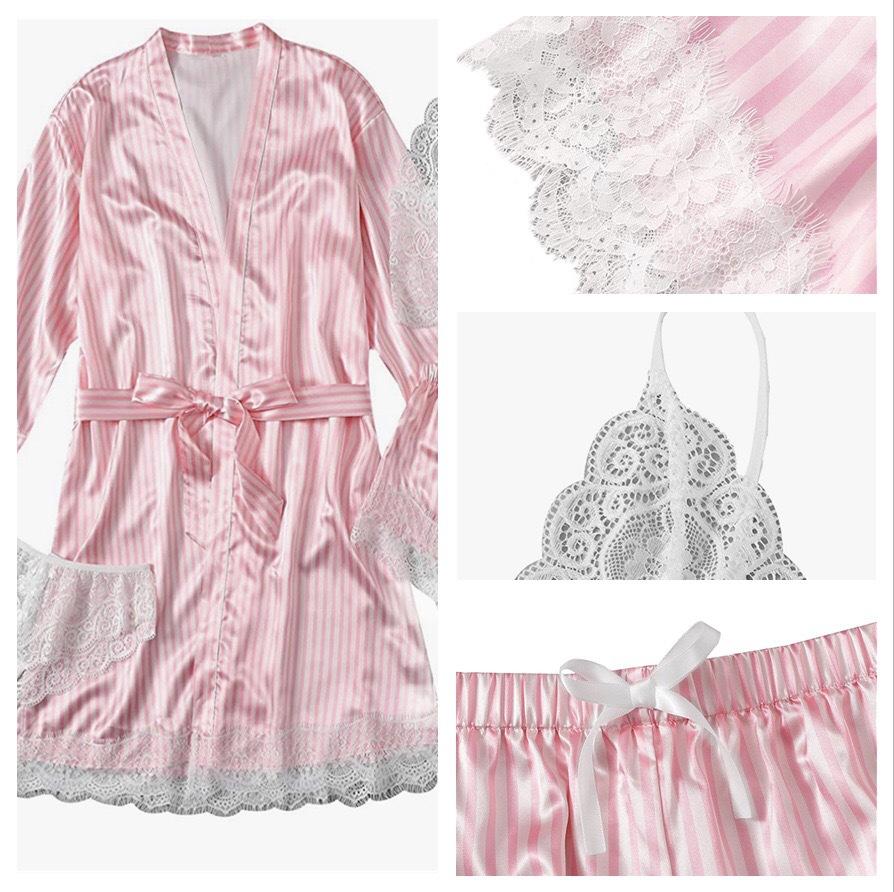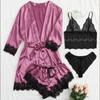Nuevo pijama de mujer europeo y americano de 4 piezas con encaje de satén y tirantes, traje de verano para mujer con camisón, camisón al por mayor