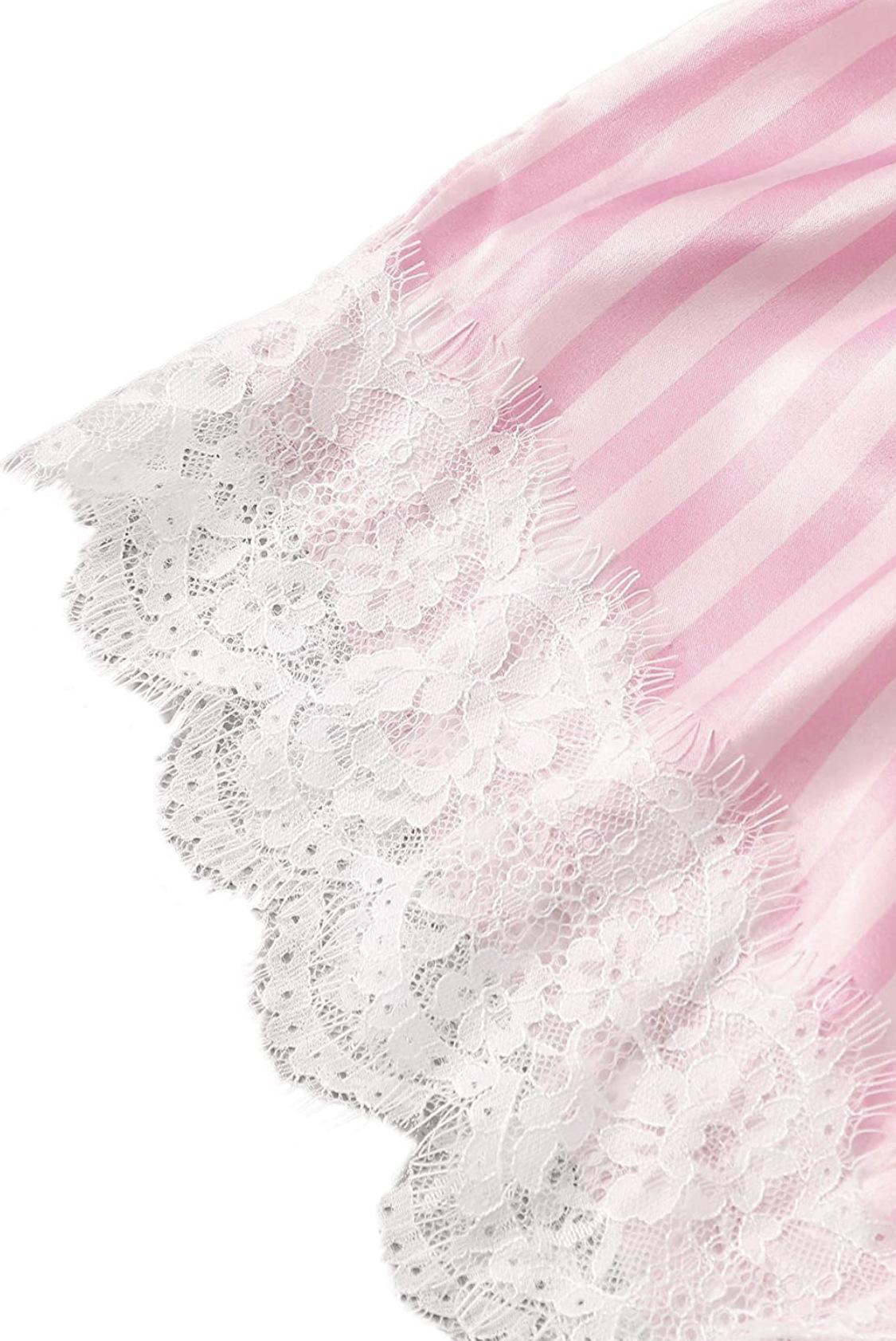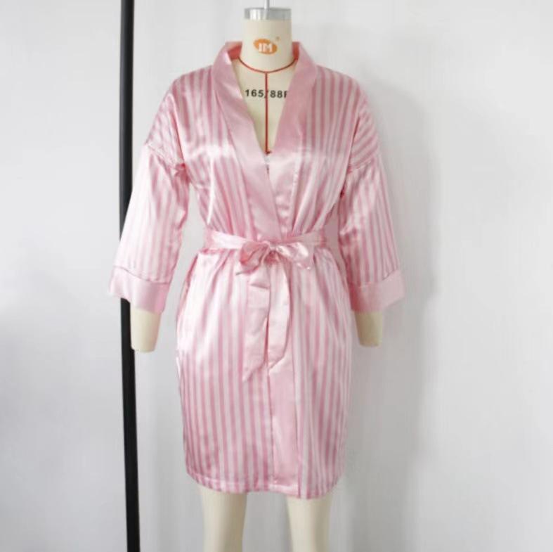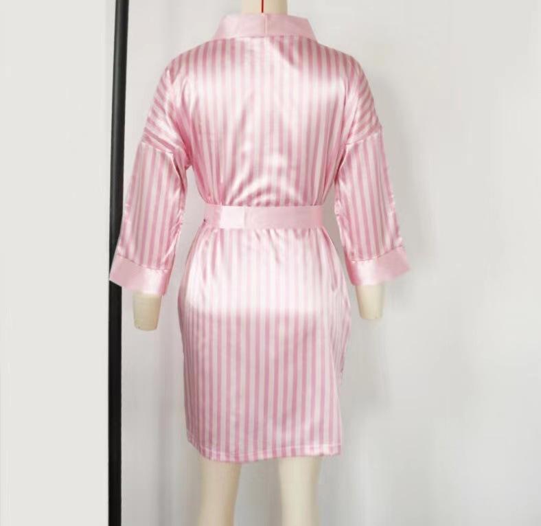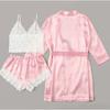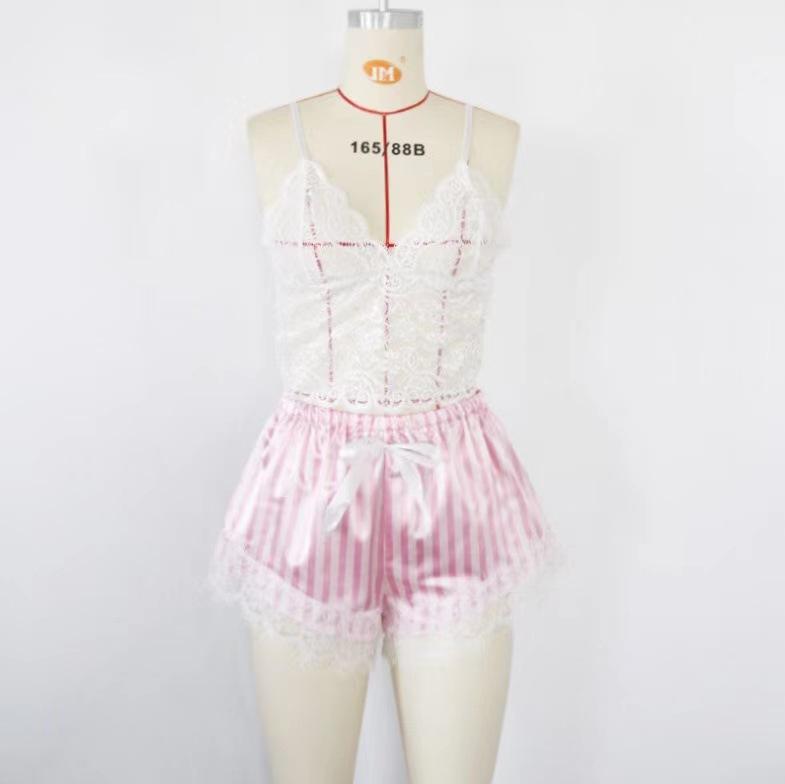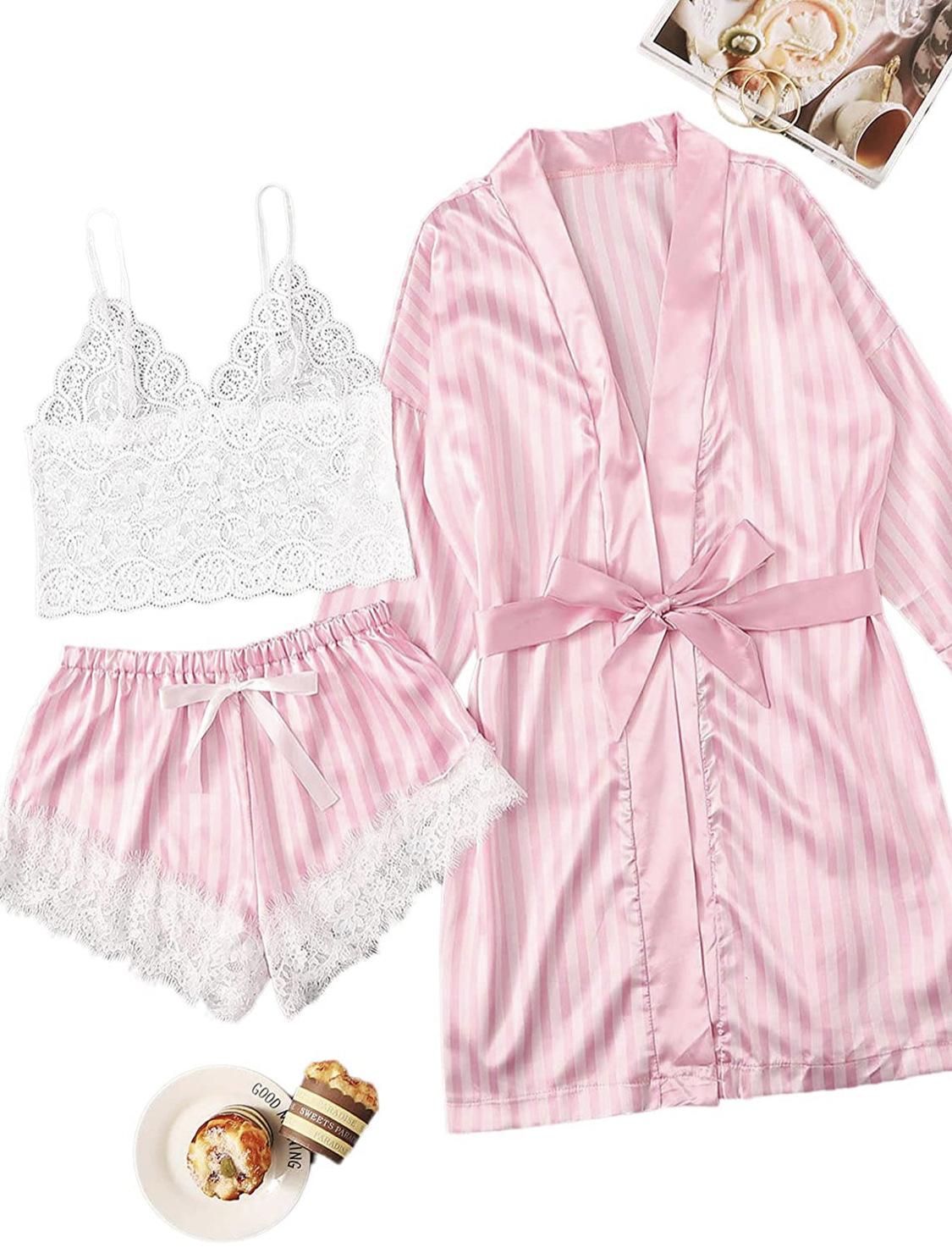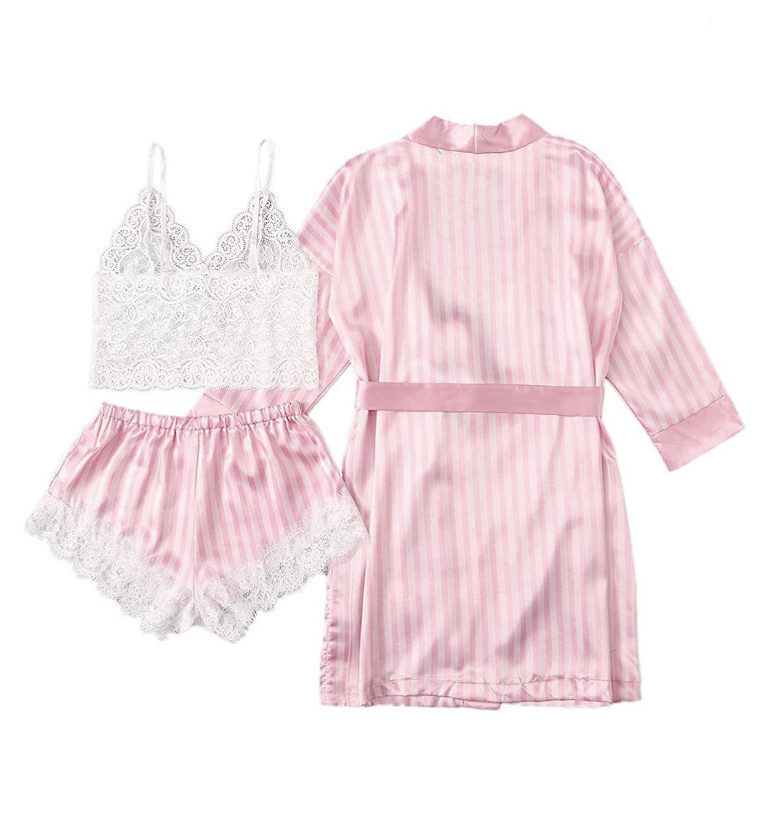 Pijama nuevo europeo y americano de 3 piezas, pijama sexy con tirantes a rayas rosas, traje de verano para mujer con conjunto de camisón, venta al por mayor