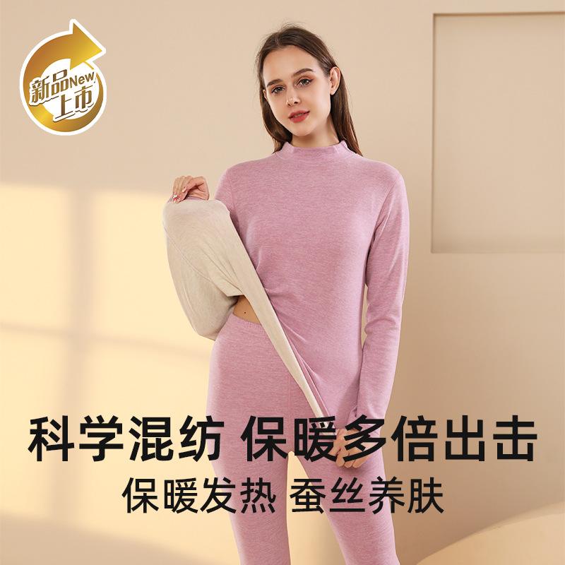 Ropa Interior Térmica de Lana Seda para Mujer con Calentamiento Cepillado Ropa y Pantalones de Otoño Set para Hombre Capa Base Polar Espesado Otoño e Invierno